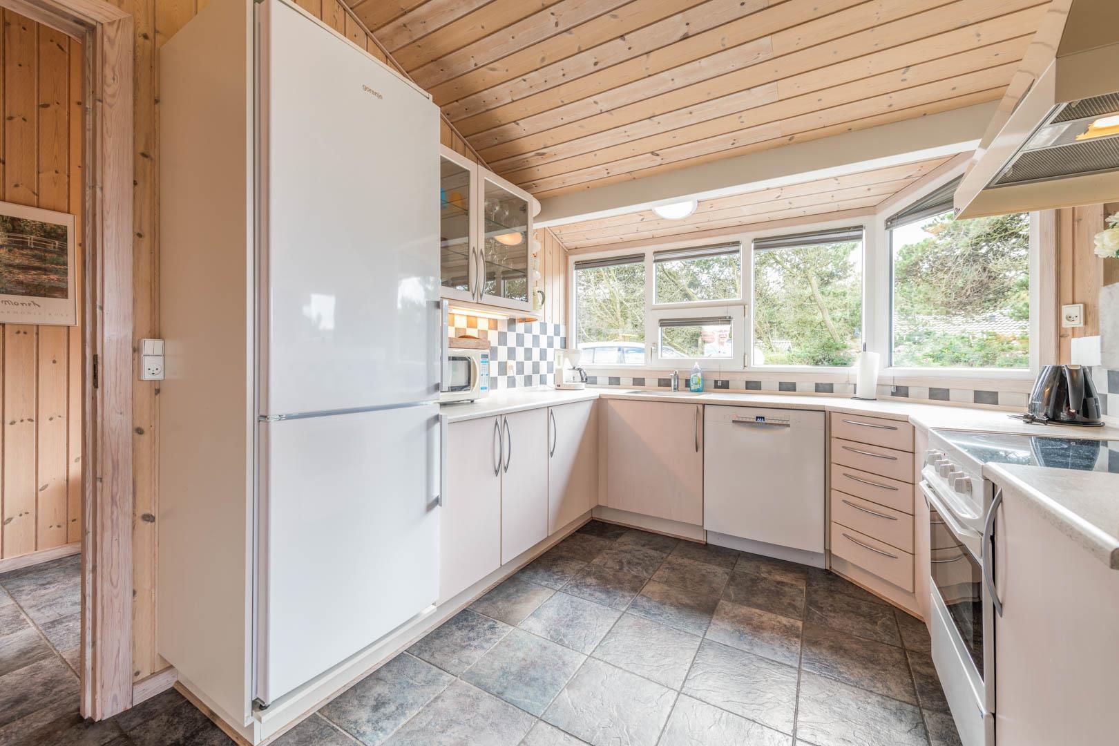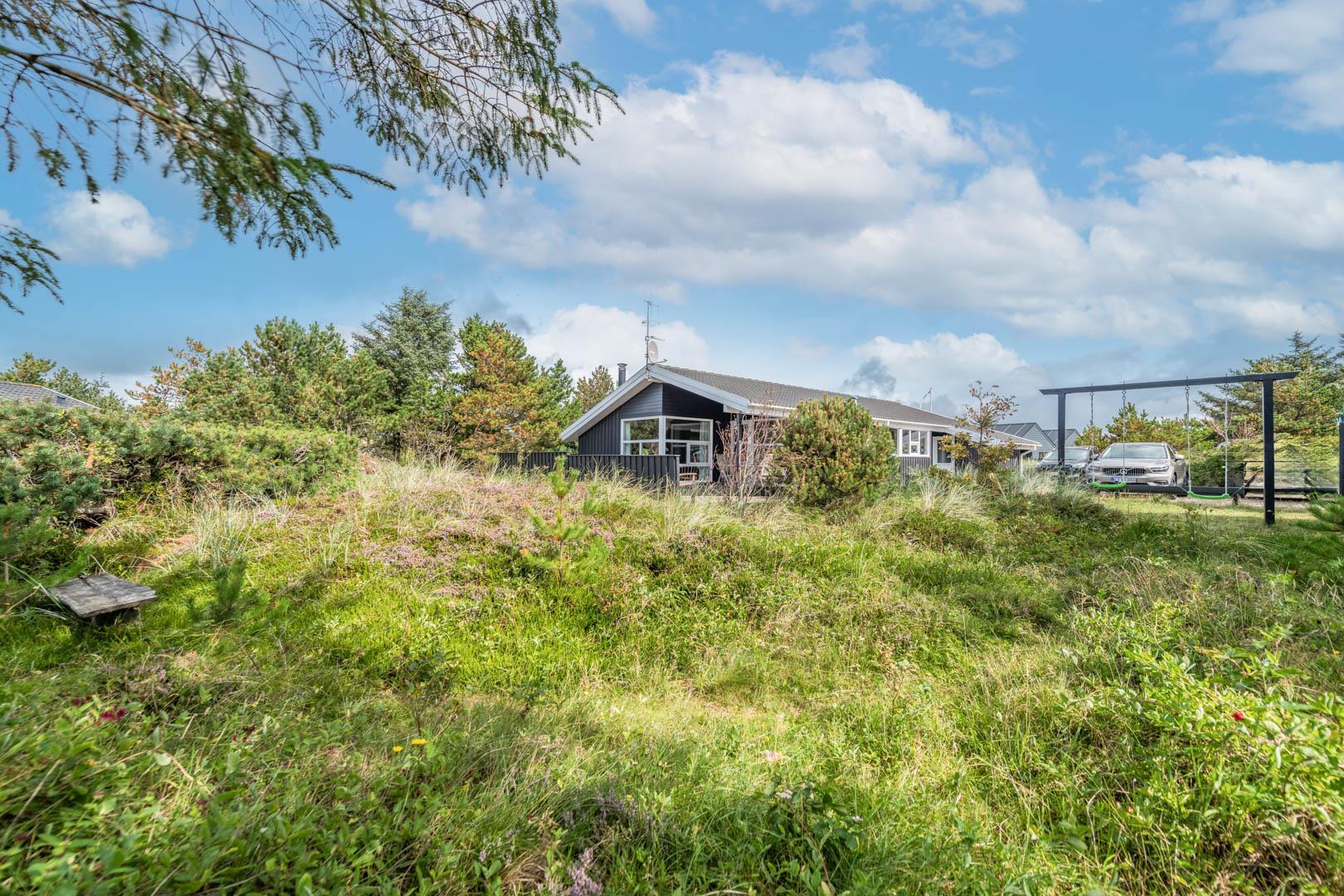 Dieses prächtige Sommerhaus liegt auf einem schönen, hügeligen Naturgrundstück unweit der Stadt und der Nordsee. Das Haus verfügt über eine große, teilweise überdachte Terrasse, sowie eine kleinere Terrasse auf der Rückseite des Hauses. Schönes Badezimmer mit Dusche, Fußbodenheizung, 2-Pers. Whirlpool und Zugang zur Sauna. Gäste-WC, ebenfalls mit Fußbodenheizung. Gut ausgestattete Küche mit Mikrowelle und Geschirrspüler. Das abgesenkte Wohnzimmer ist schön eingerichtet und verfügt über einen Holzofen. Auch eine energiesparende Wärmepumpe wurde installiert. Das Haus ist mit 3 guten Schlafzimmern ausgestattet, 2 mit Doppelbett und 1 mit 2 Einzelbetten. Kinderbett, Hochstuhl, Sandkasten und Schaukel für die Kinder sind vorhanden. Ein sehr gepflegtes Ferienhaus in einer wunderschönen Gegend bei Henne Strand.