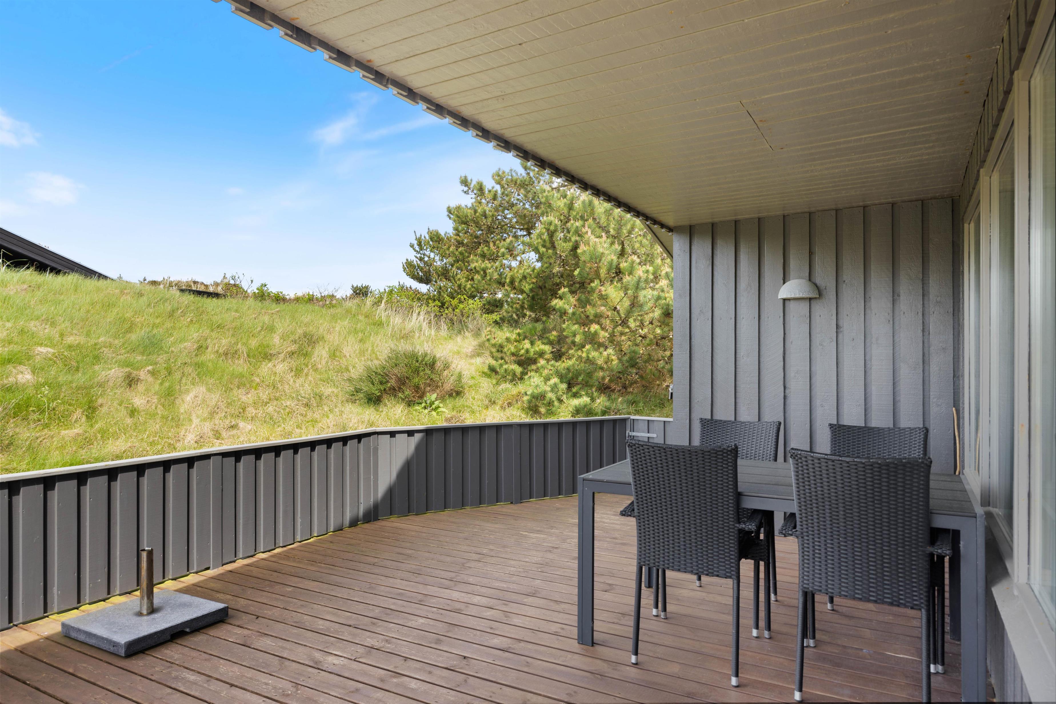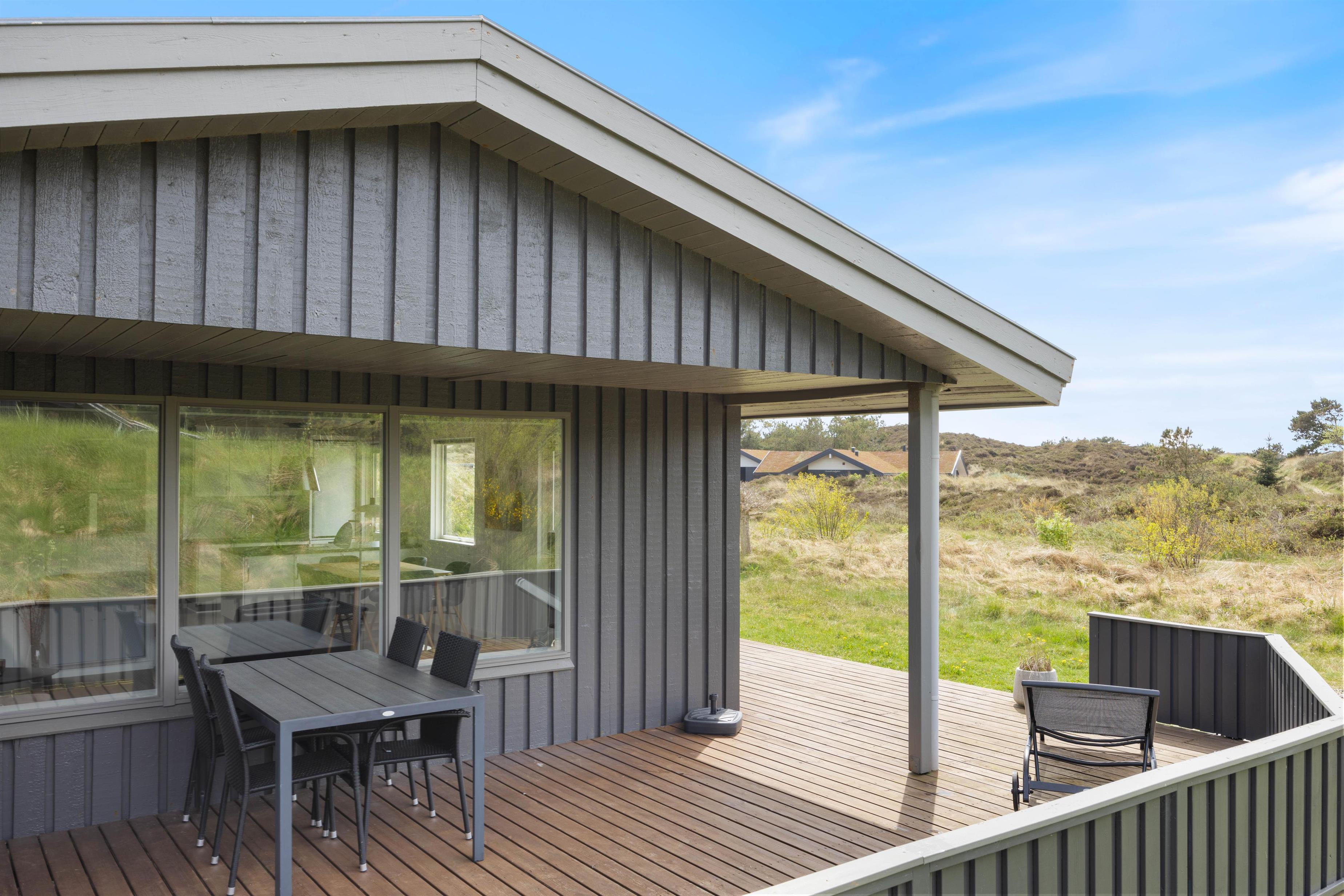 Would you like to enjoy your morning coffee while listening to the roaring waves of the North Sea? A large wooden terrace extends from east to west along one side of the holiday home, allowing you to relax in comfortable loungers in the sun throughout the day.