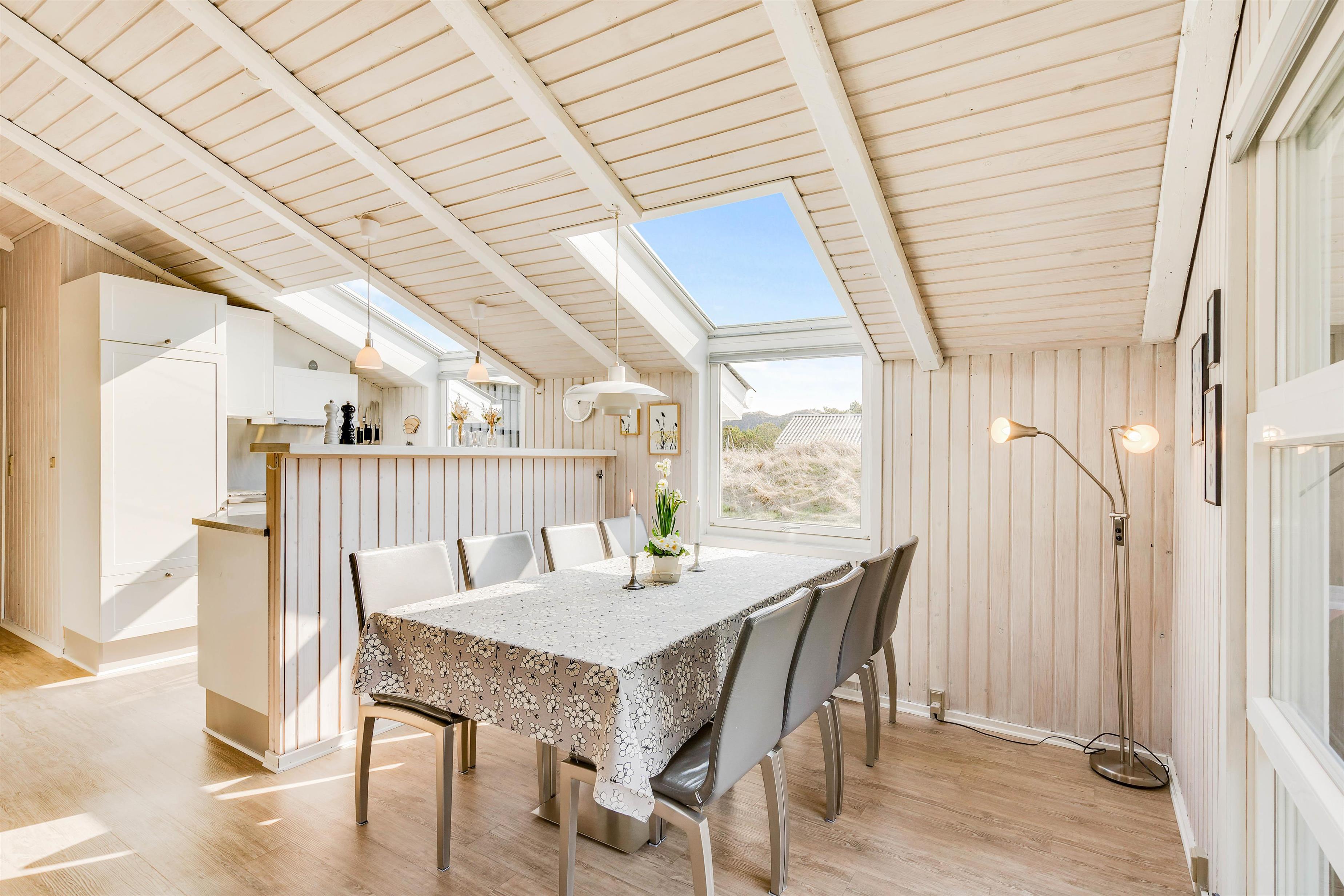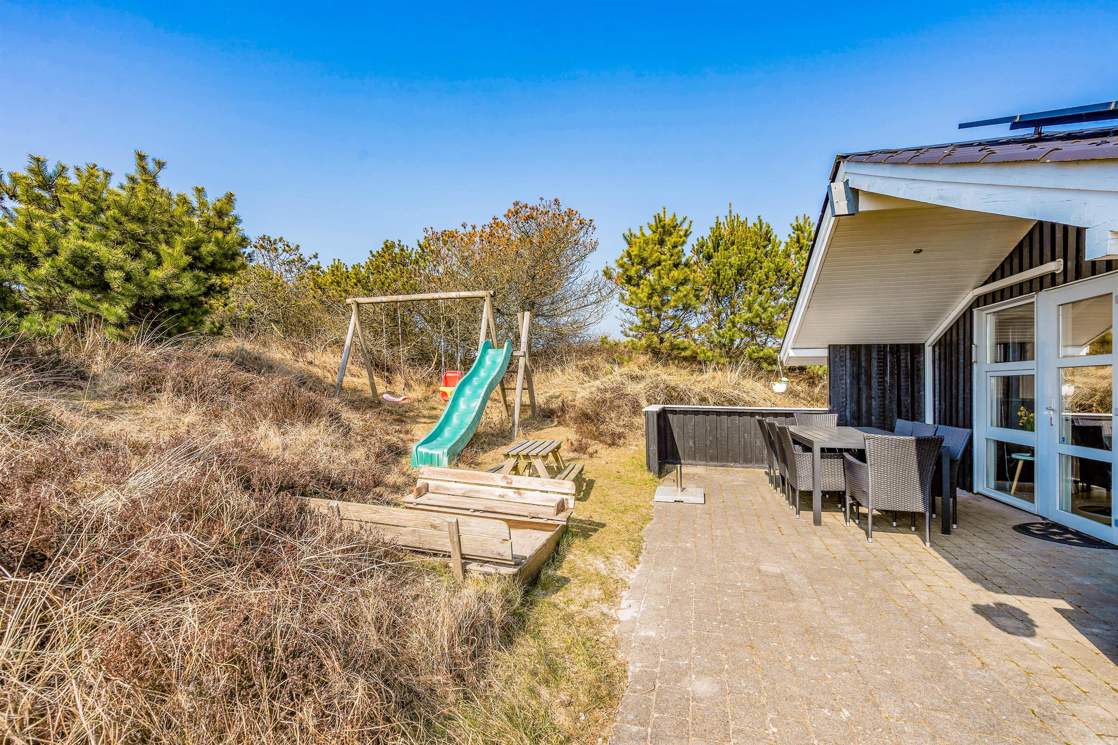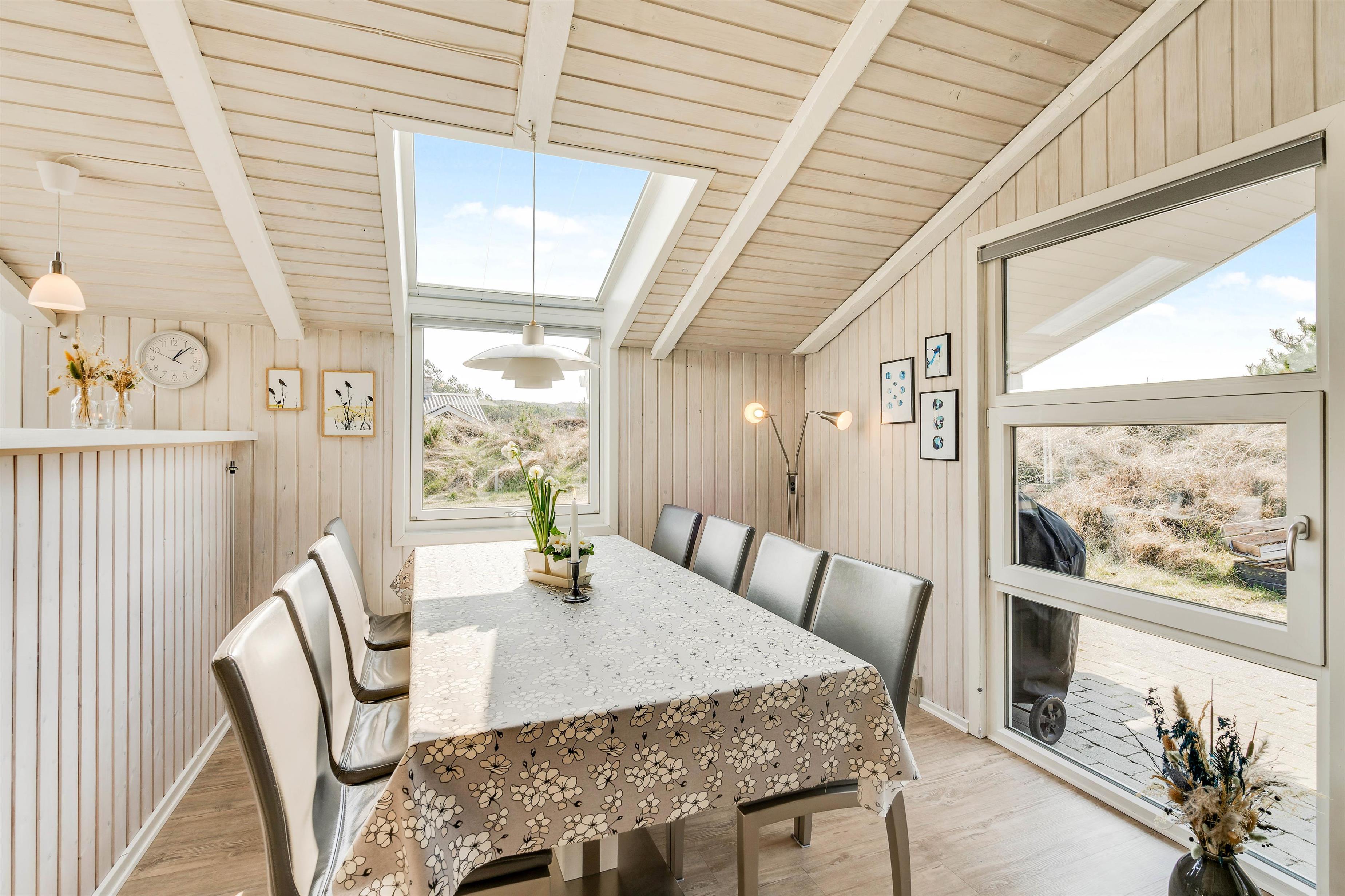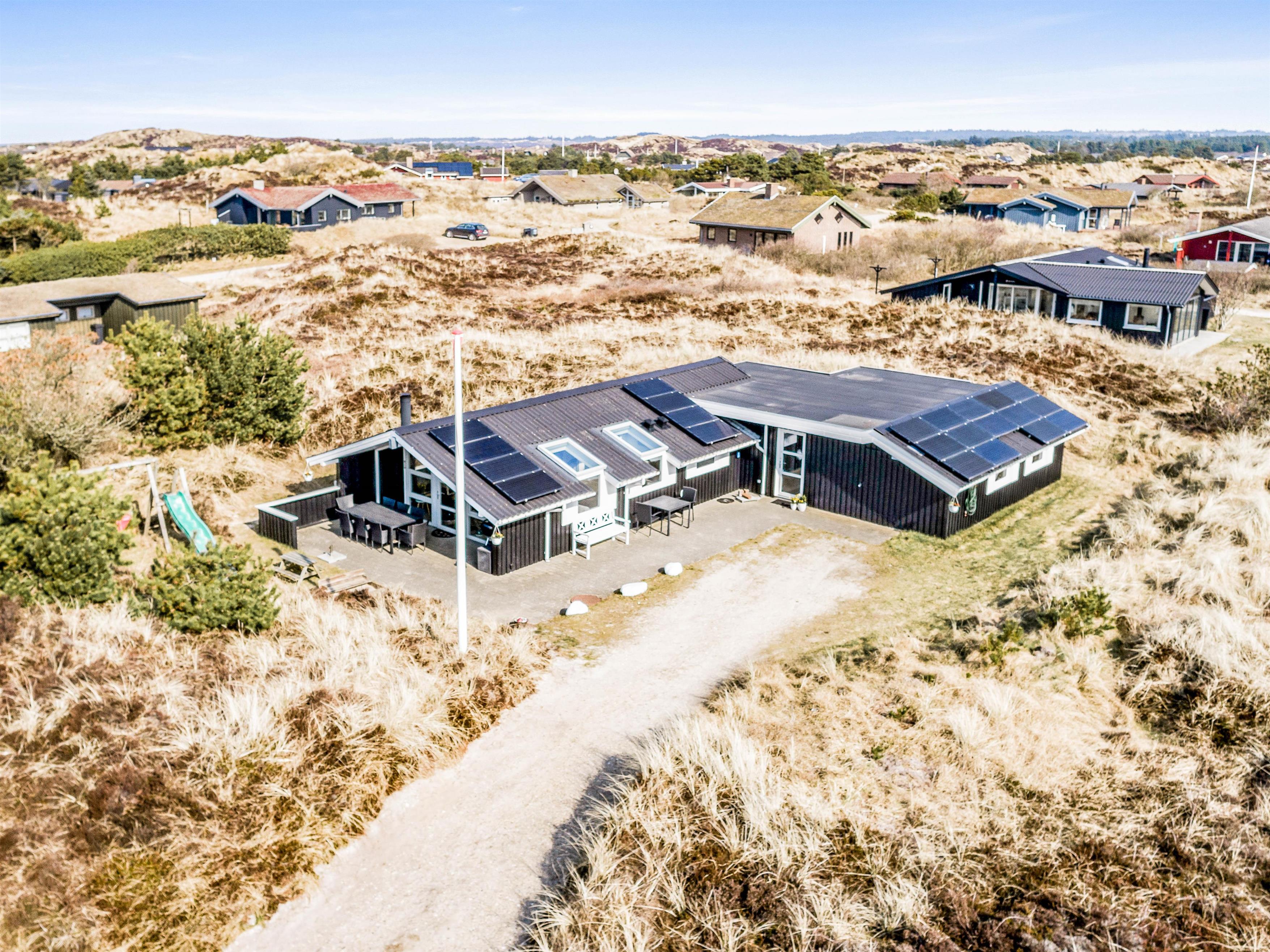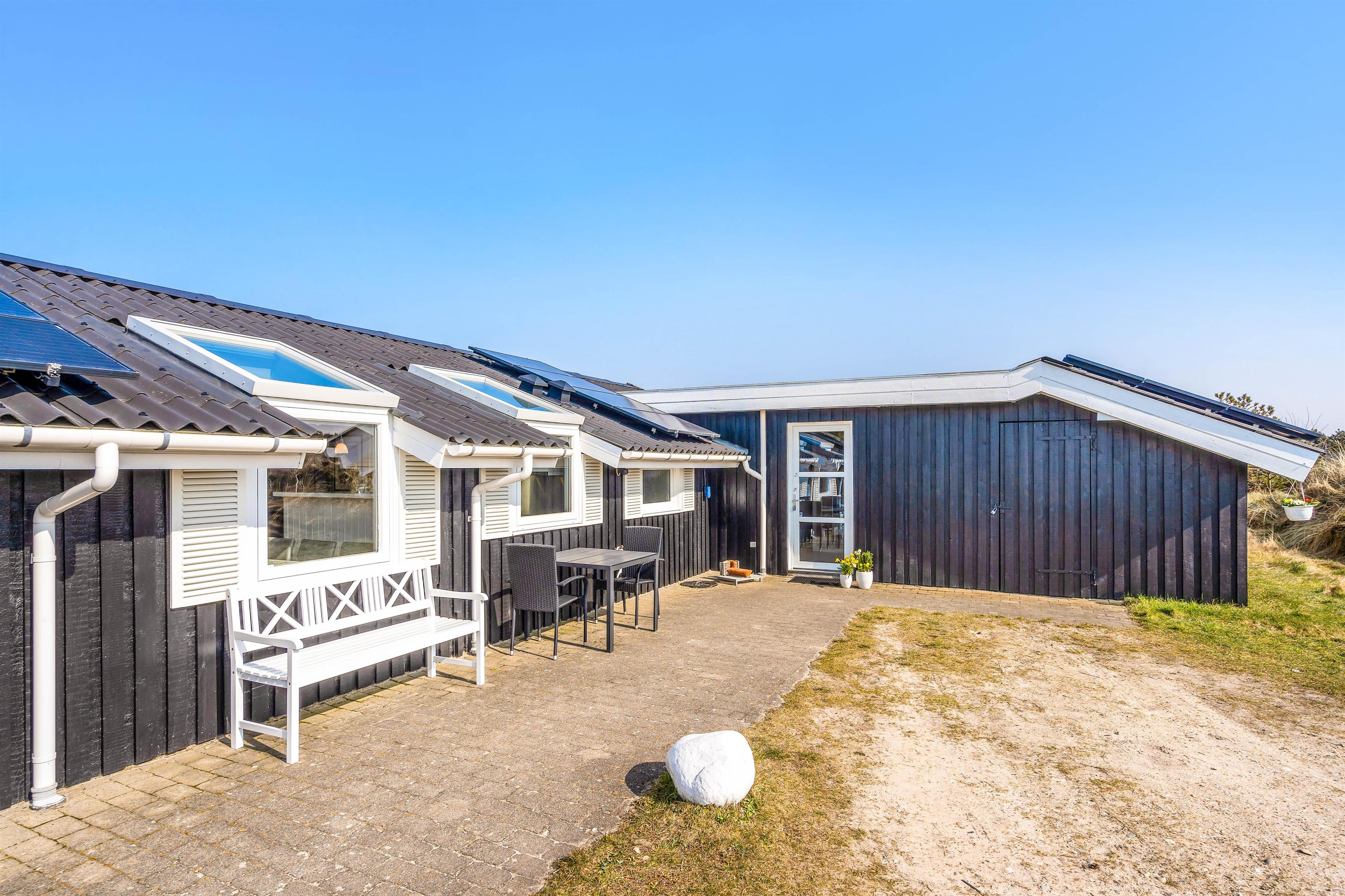 Situated at the end of a quiet cul-de-sac at Gejlbjergvej 68 in Henne Strand, this beautiful and well-maintained holiday home accommodates up to 8 people. Equipped with 2 bathrooms, sauna and whirlpool, this summer house is perfect for a holiday with friends. Just 800 metres away, you'll find impressive dunes and the wide sandy beach of Henne - welcome to the Danish West Coast!