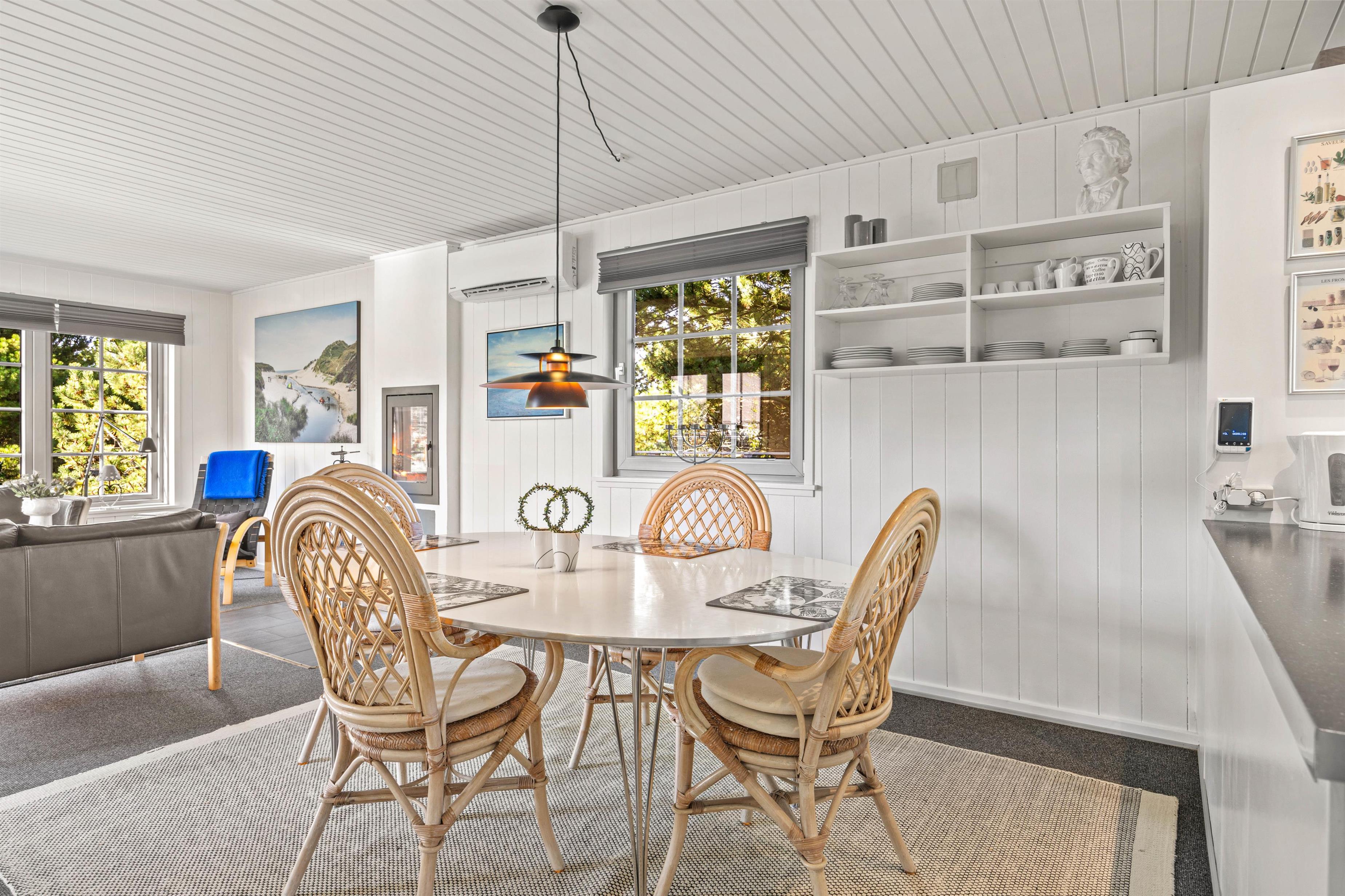 This idyllic thatched holiday home is situated at Ranunkelvej 7 in Henne Strand, surrounded by dunes. The charming exterior hints at how quickly everyday life will fade away once you settle into this beautiful house. Your holiday begins from the very first moment. The house is ideal for small families and equally perfect for couples.