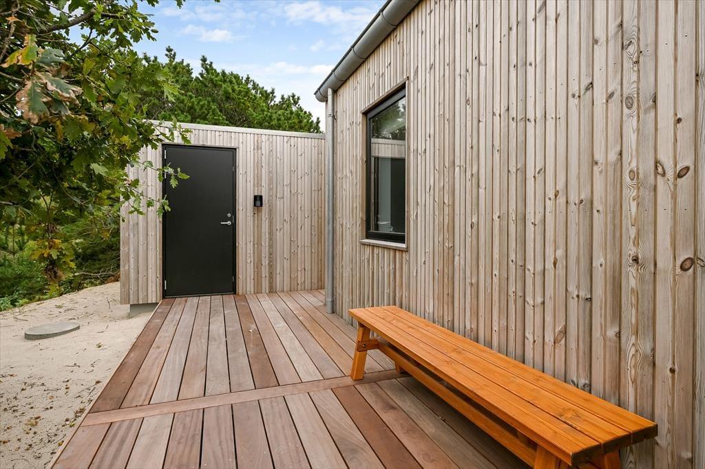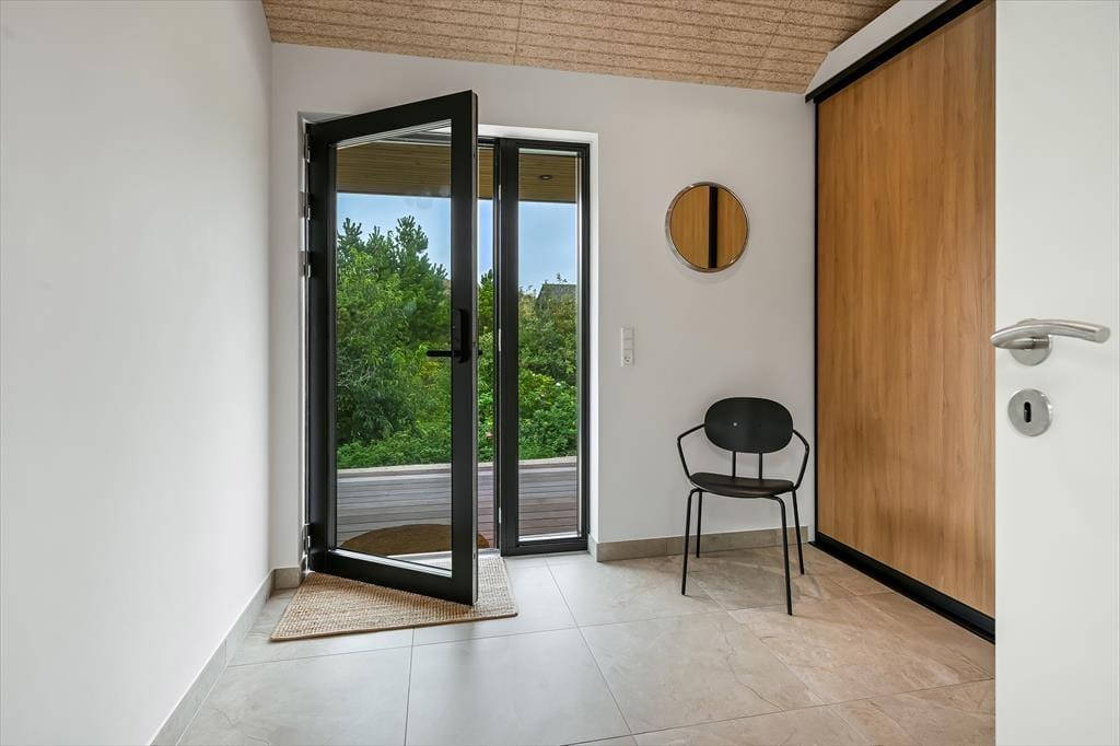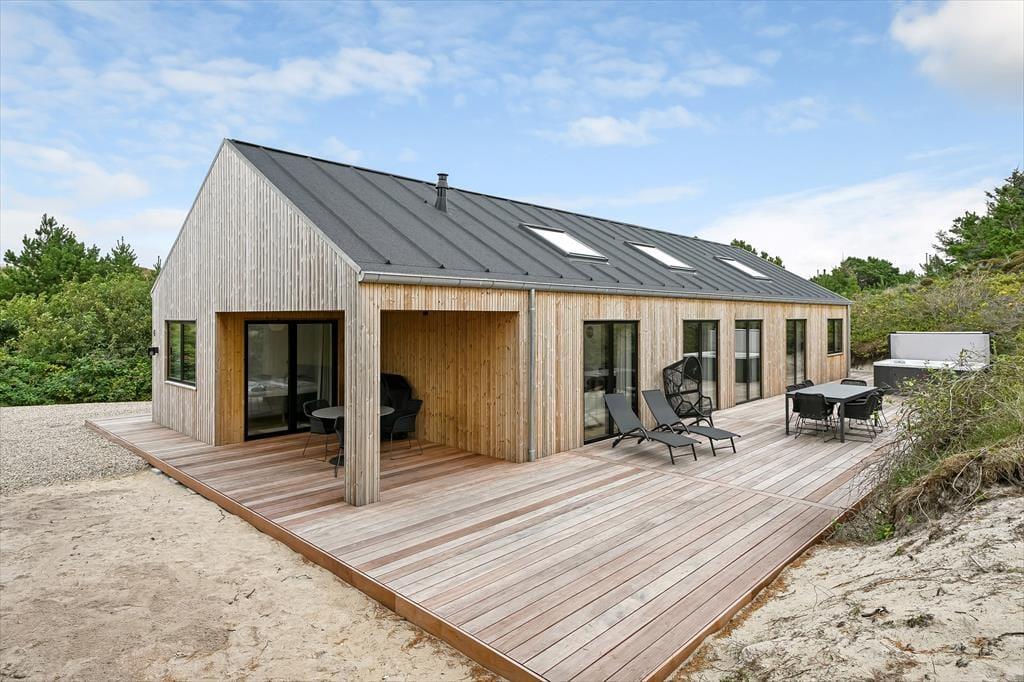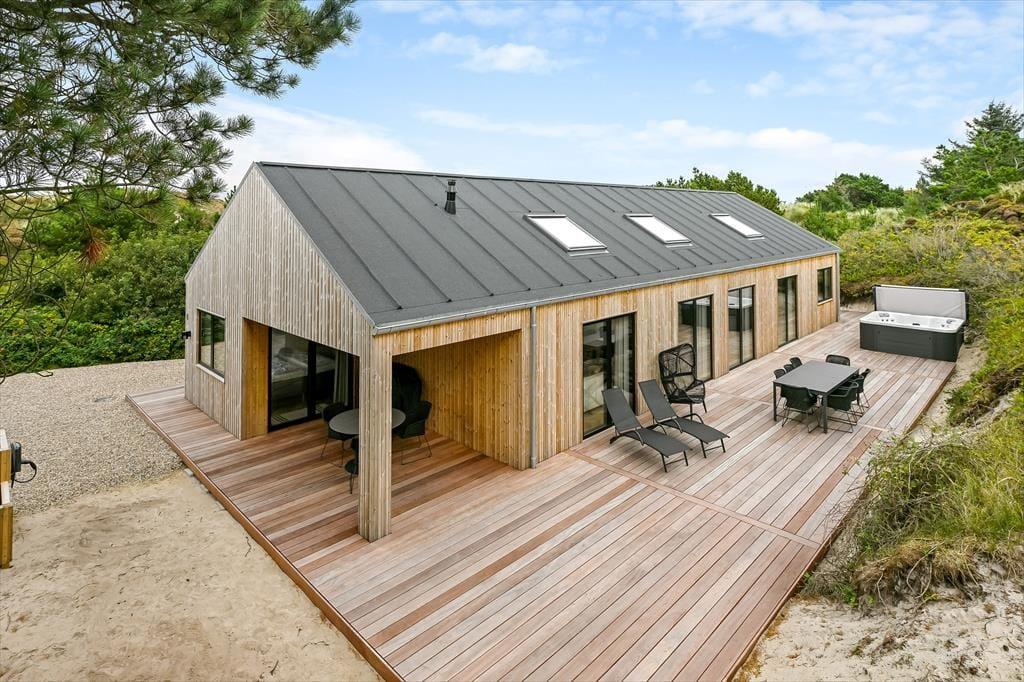 Das Ferienhaus liegt in einer kleinen Mulde, umgeben von Dünen, sodass du Sonne und frische Meeresluft windgeschützt genießen kannst. Auf der Terrasse findest du den Außenwhirlpool – ein ganz besonderer Ort, um abzuschalten, während die warmen Blubberblasen deinen Körper massieren. Vielleicht beginnst du den Tag hier mit einem stillen Moment oder beendest ihn mit einem Glas Wein, während die Abendsonne den Himmel färbt. Die Terrasse lädt zu langen Mahlzeiten unter freiem Himmel ein, und wenn die Sonne hoch am Himmel steht, kannst du dir einen Liegestuhl schnappen und einfach die Stille genießen – unterbrochen nur vom Vogelgesang und dem fernen Rauschen der Wellen. Die Lage vermittelt ein herrliches Gefühl von Privatsphäre, wo du wirklich ungestört entspannen kannst.