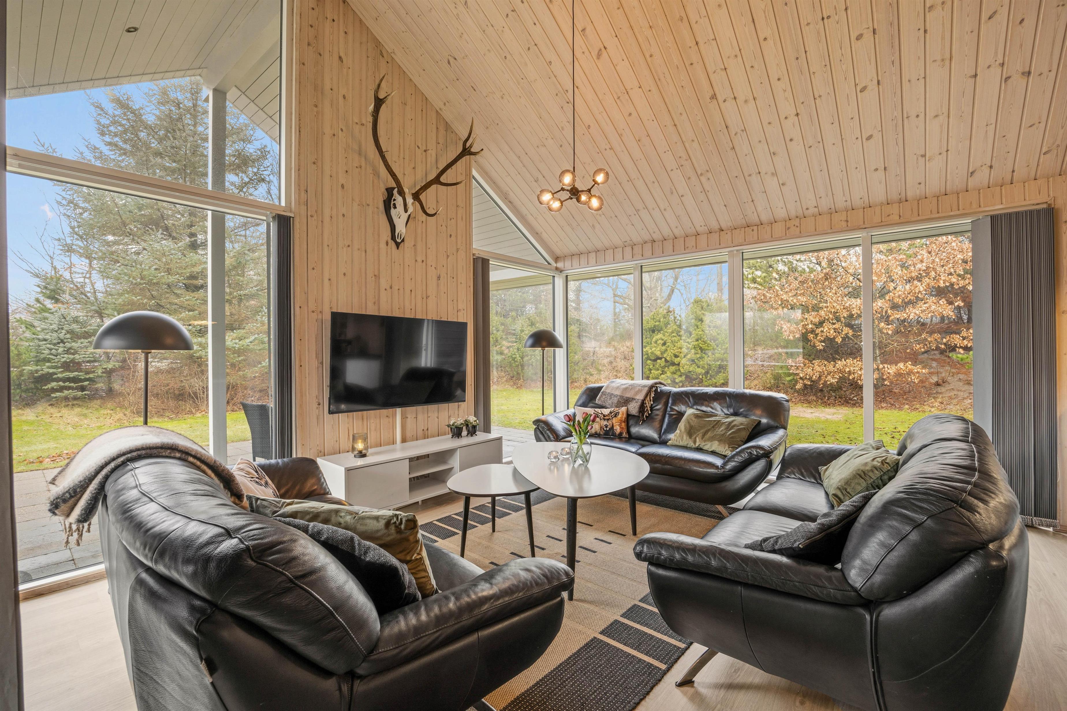 The house sits on a private natural plot in a spectacularly scenic setting. For younger children, there's a small playground with a slide. From the partially covered terrace, you can keep an eye on children playing while enjoying views of the surrounding nature. Many wonderful holiday moments await you here. The holiday home is just 1.9 miles (3 kilometres) from the vibrant holiday resort of Henne Strand, a true gem of the Danish West Coast.
