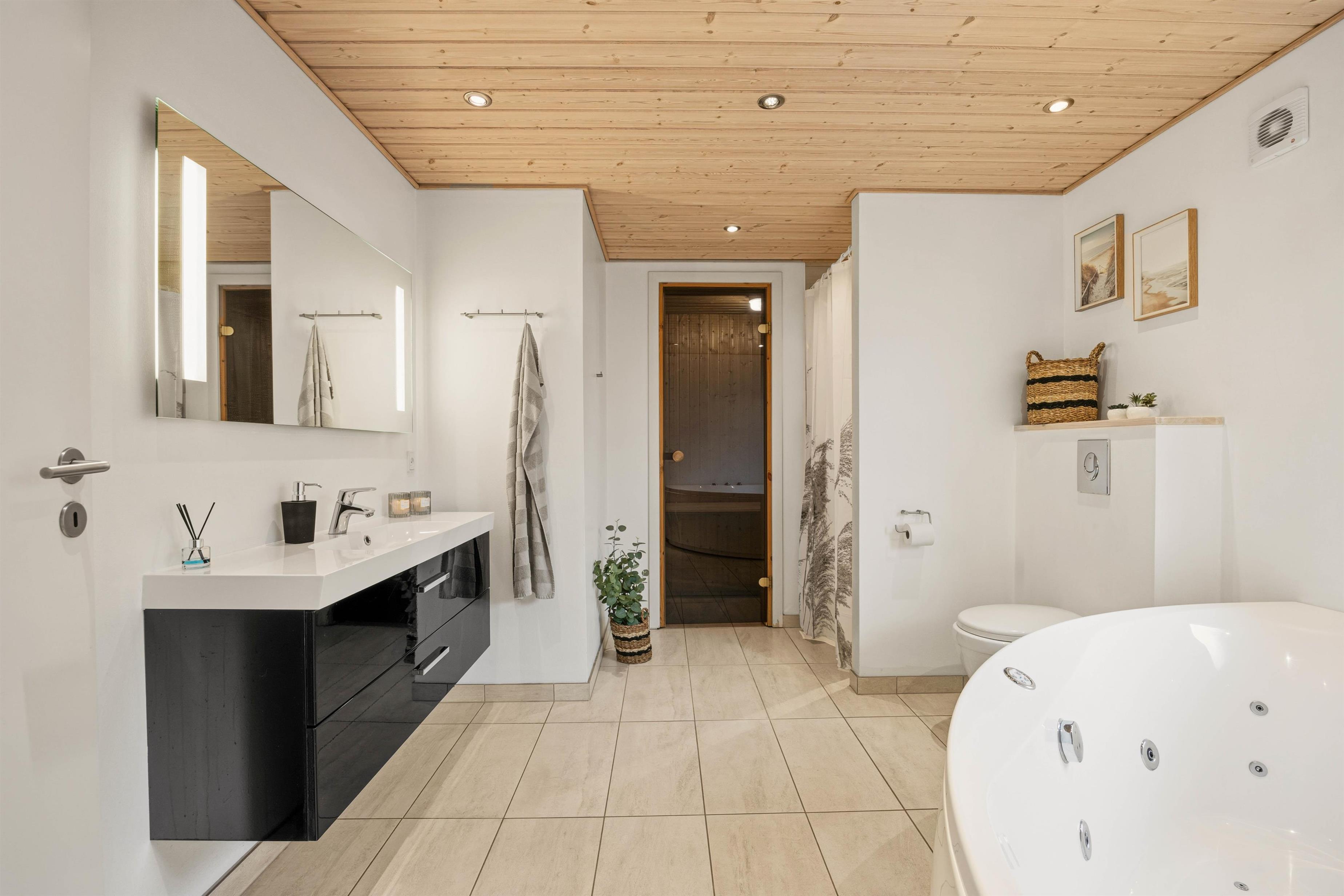 The house is simply and stylishly furnished, featuring four comfortable bedrooms, an open mezzanine with two sleeping spaces, and two bathrooms - one of which is equipped with a whirlpool and large sauna. The whirlpool and sauna are popular with guests of all ages throughout the year.