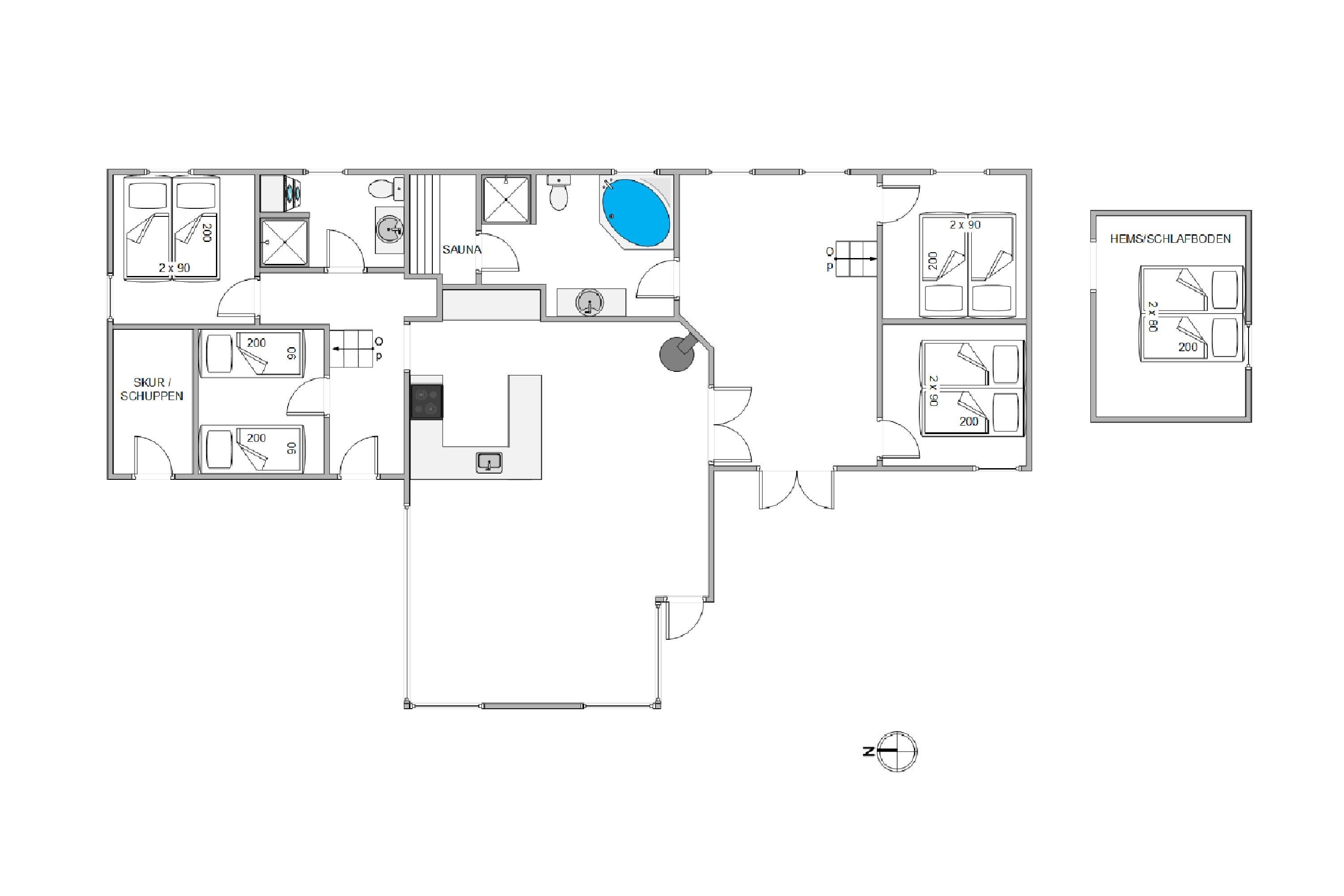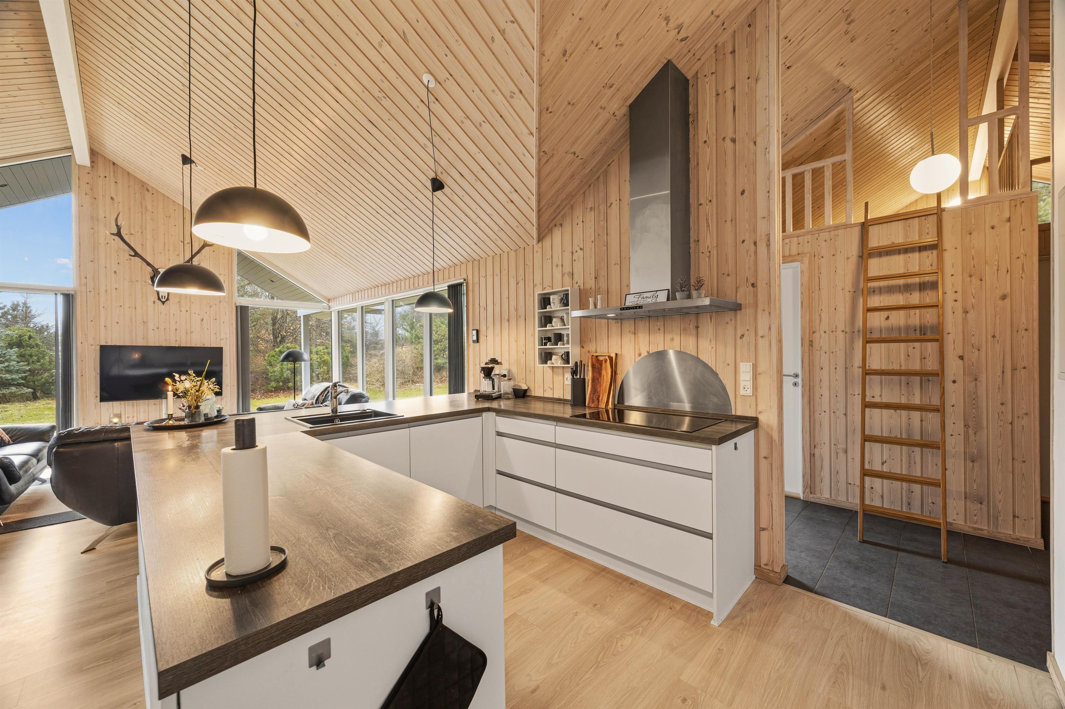 Built in 2014, this holiday home's layout is ideal for either two generations or multiple families wanting to holiday together. The large games room ensures your holiday will be even more enjoyable. The house is constructed with bright materials and furnished with high-quality furniture. The kitchen offers a wonderful view over the games room and living room, making it perfect for preparing holiday meals for the whole family.