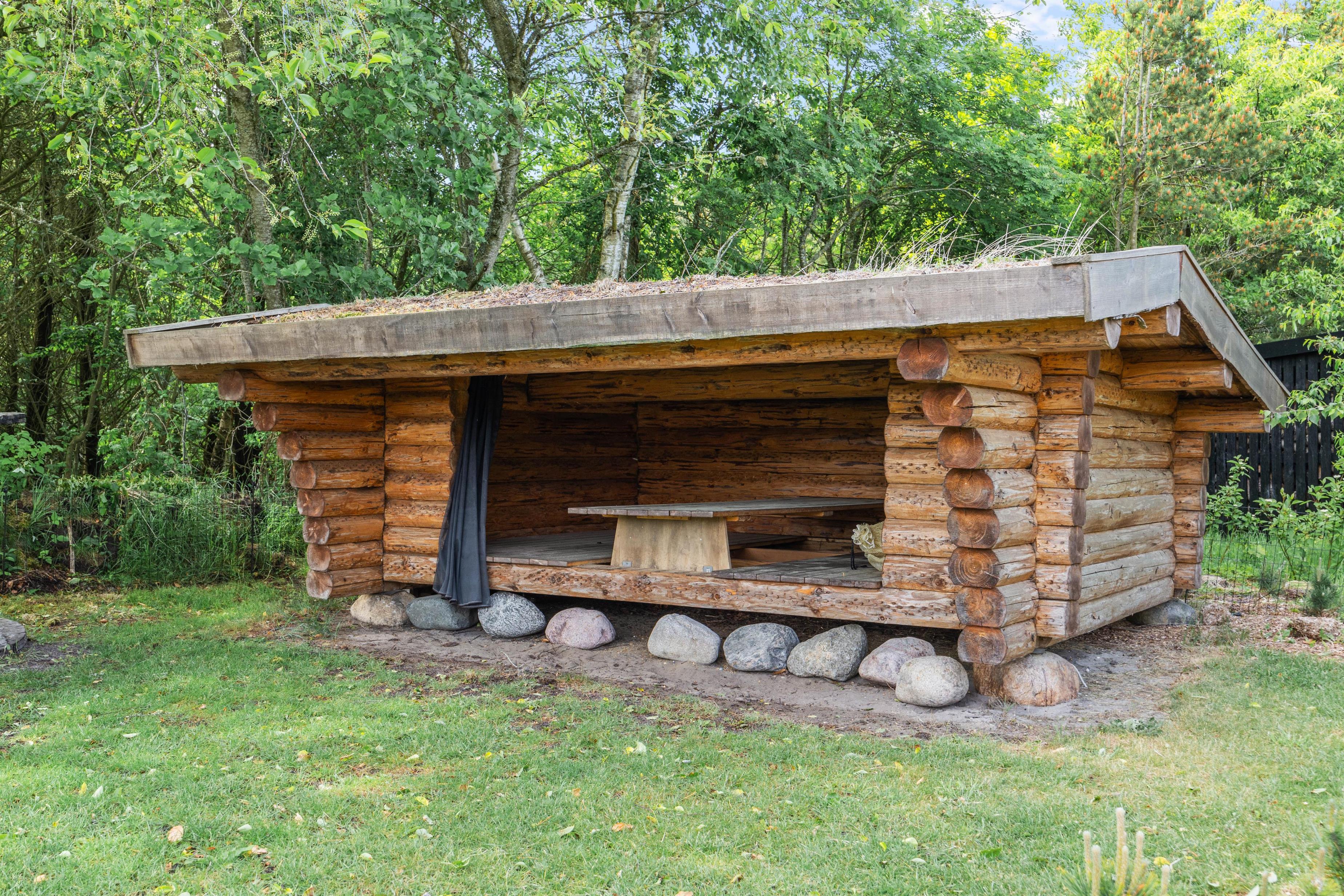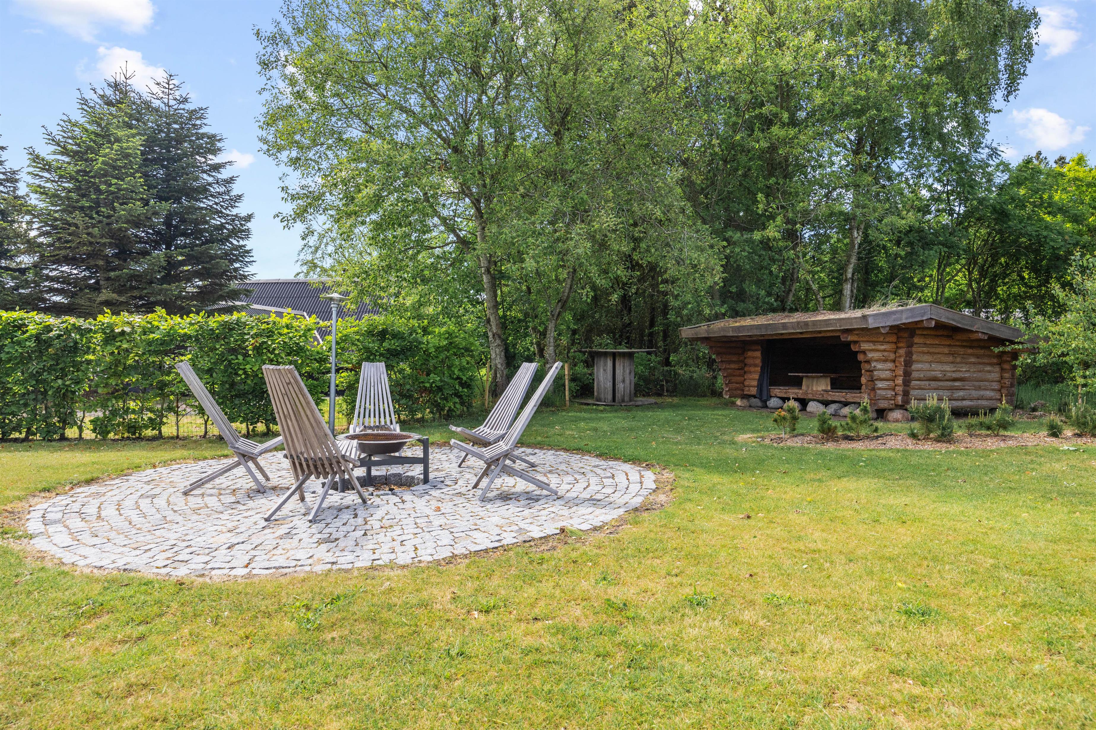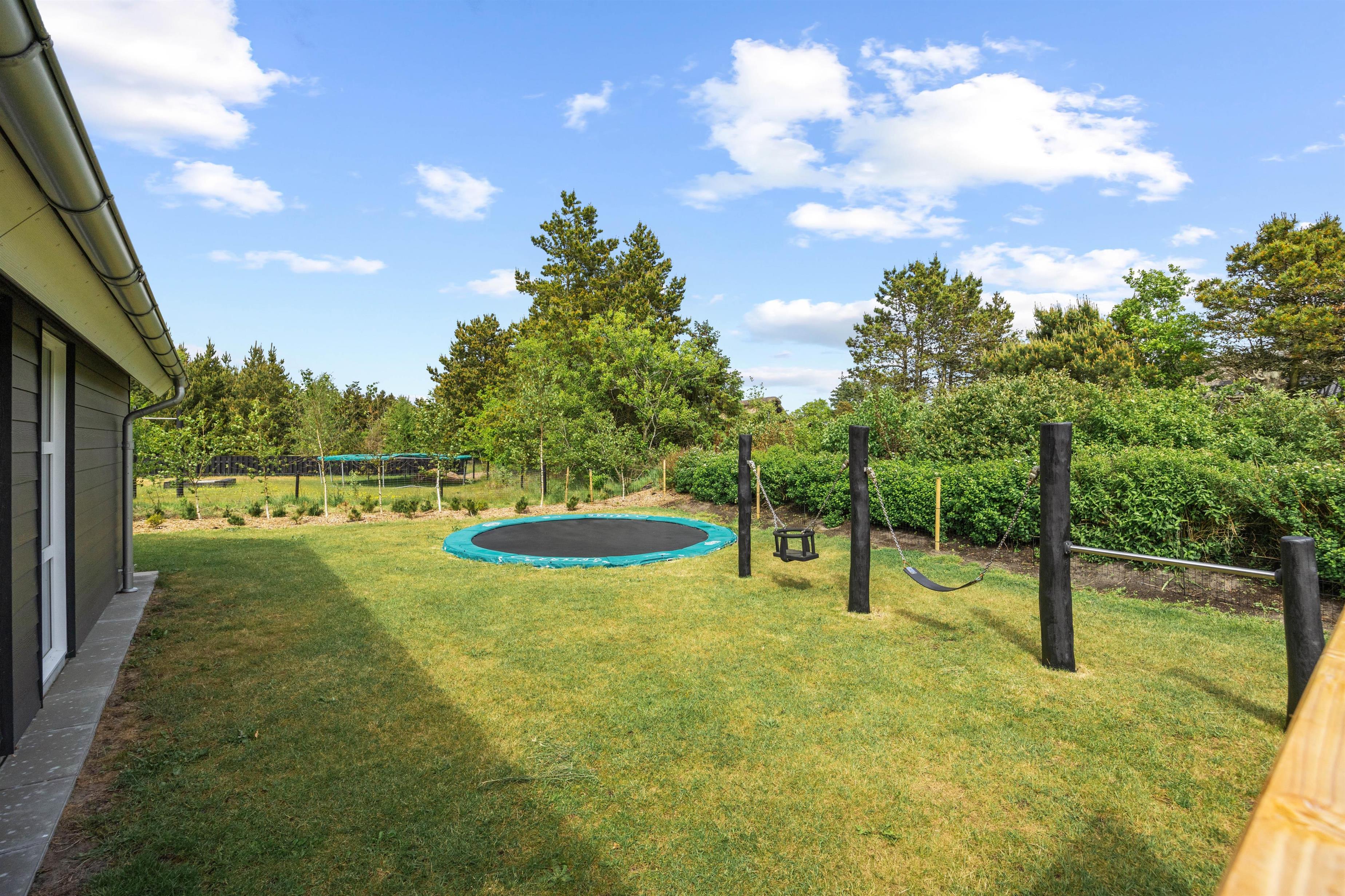 The terrace features garden furniture and sun loungers for comfortable sunbathing. If you need a break from the sun, there's a covered section of the terrace. In the evenings, prepare dinner on the gas barbecue while children enjoy the swing or have a final bounce on the trampoline. The large natural plot includes a lovely fire pit and a spacious shelter for outdoor sleeping.