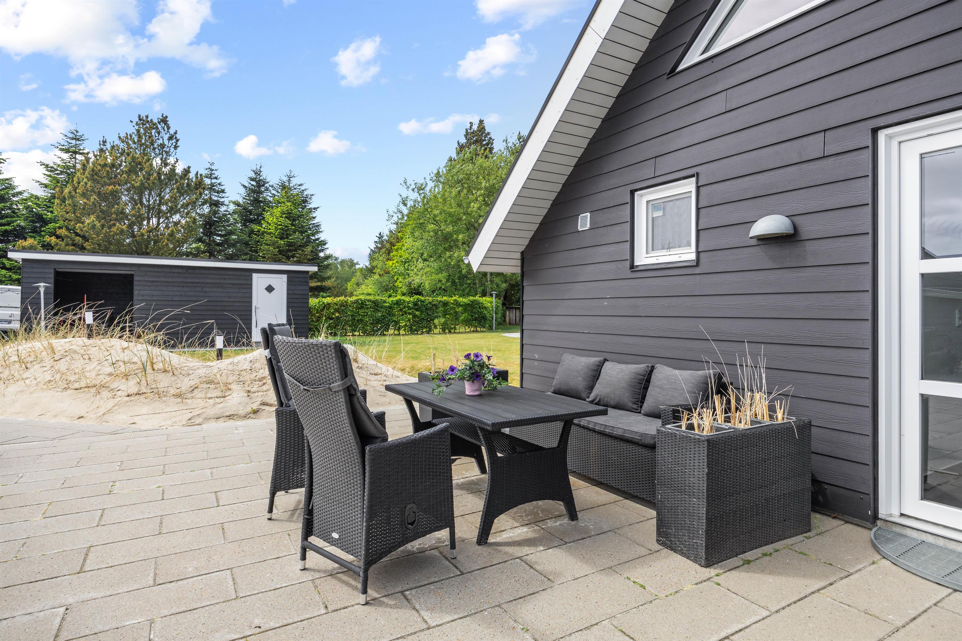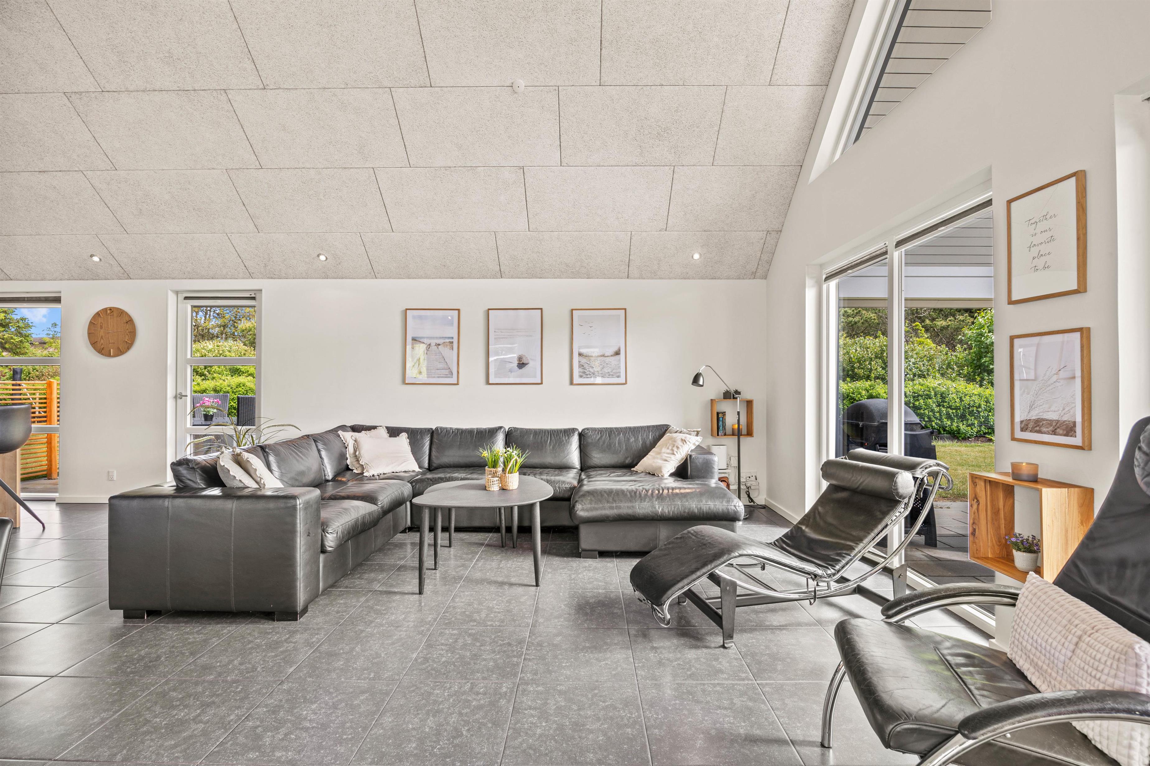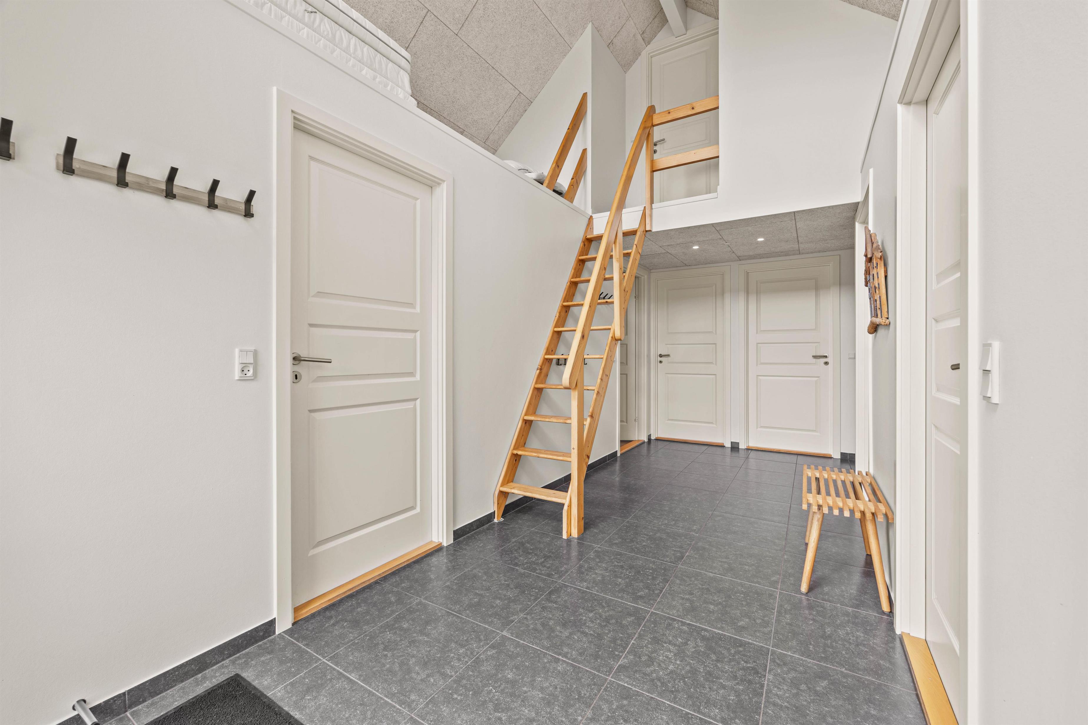 The holiday home features three large bedrooms where you can recharge and prepare for your next day in Henne. Two rooms have double beds, while the third offers twin beds. Additionally, there are four single beds in the loft area (with full standing height).