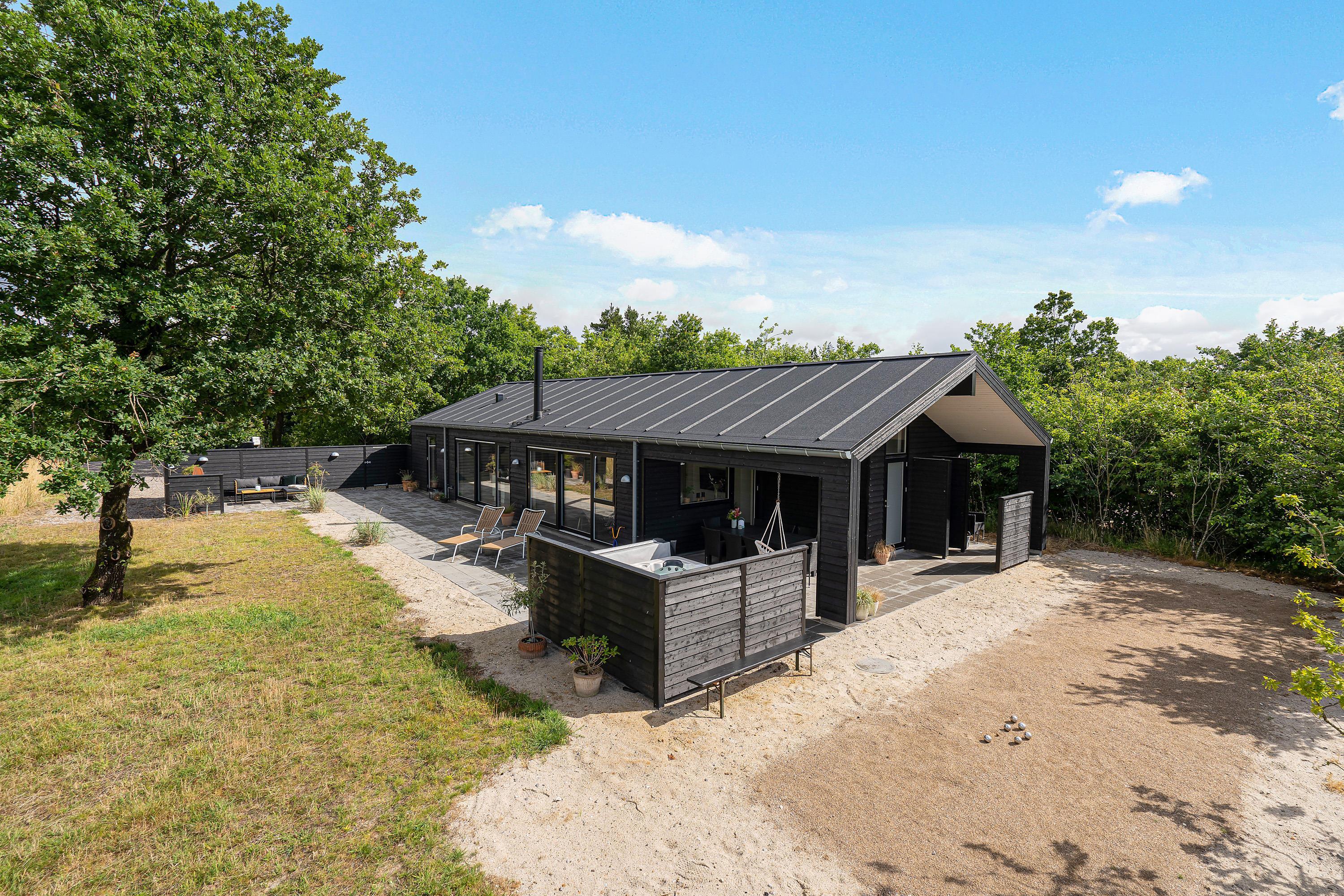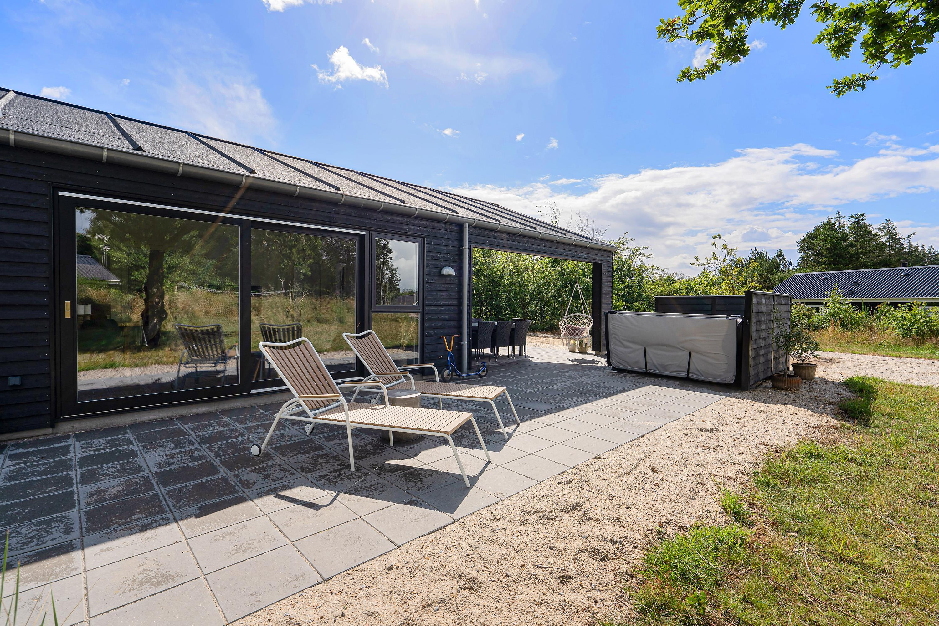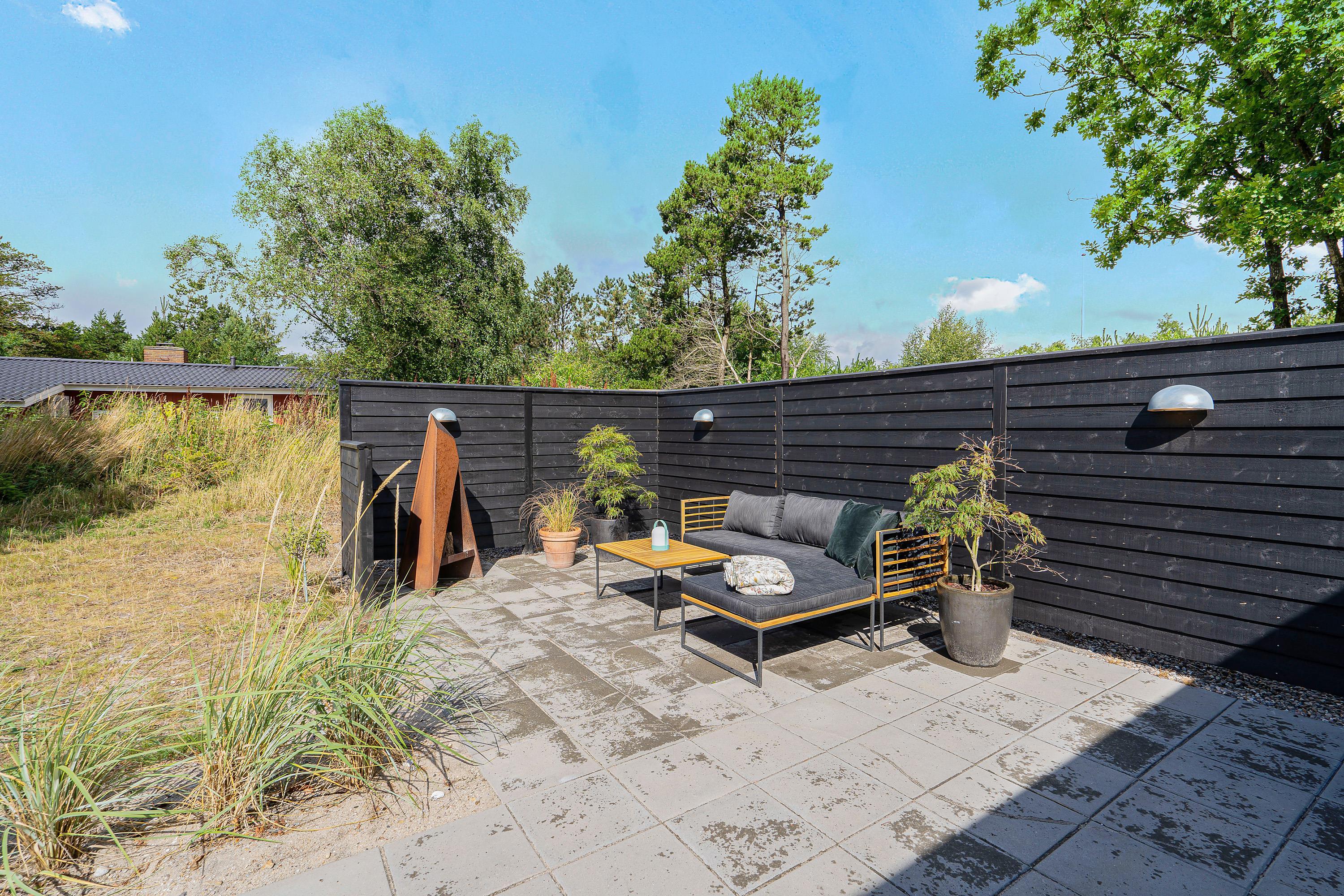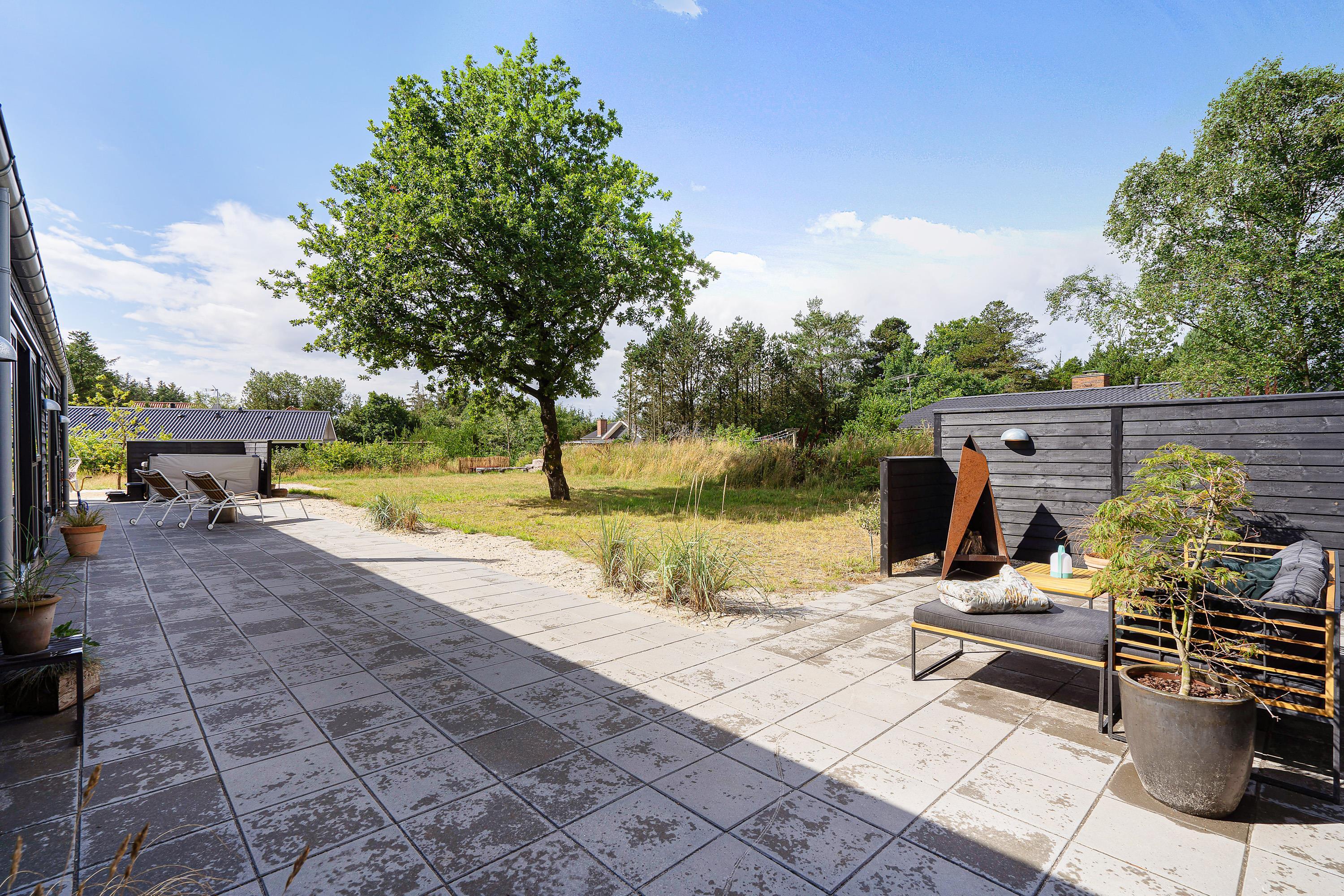 The holiday home is situated in a small holiday community in Henneby, just minutes from the vibrant resort of Henne Strand. Here you can enjoy peaceful, green surroundings while remaining close to miles of sandy beaches and extensive walking areas - the Lyngbo Heath and Blåbjerg Plantation.