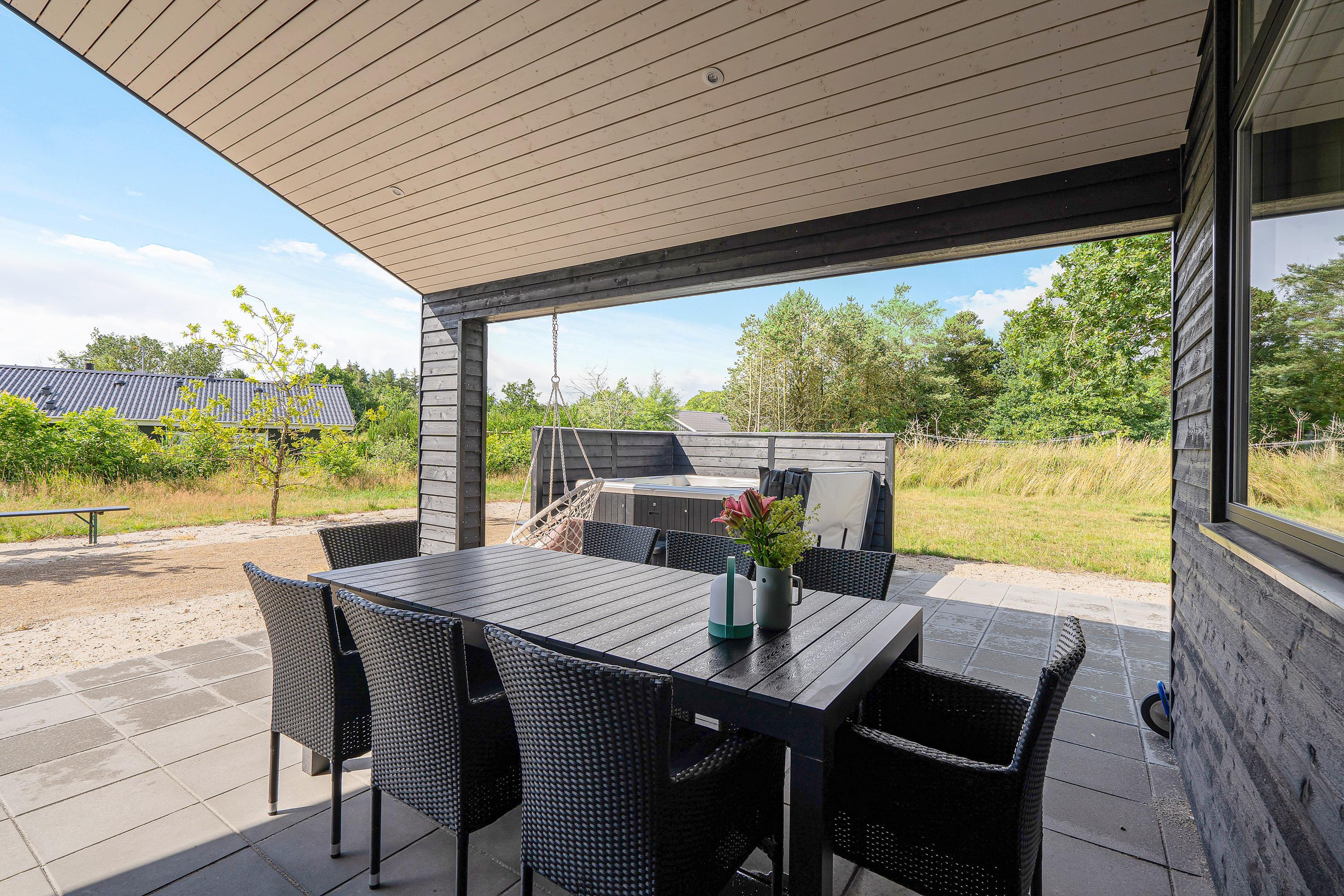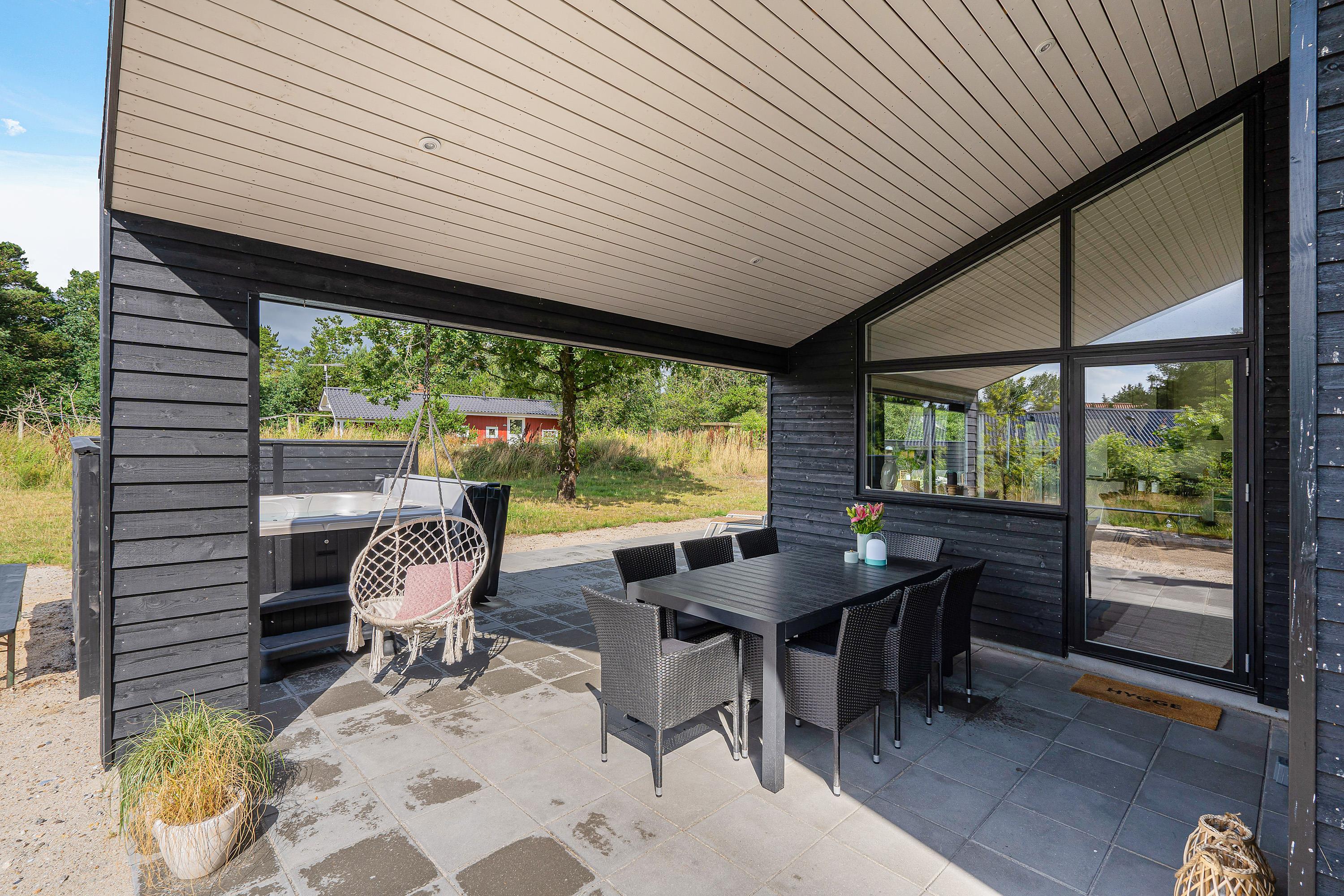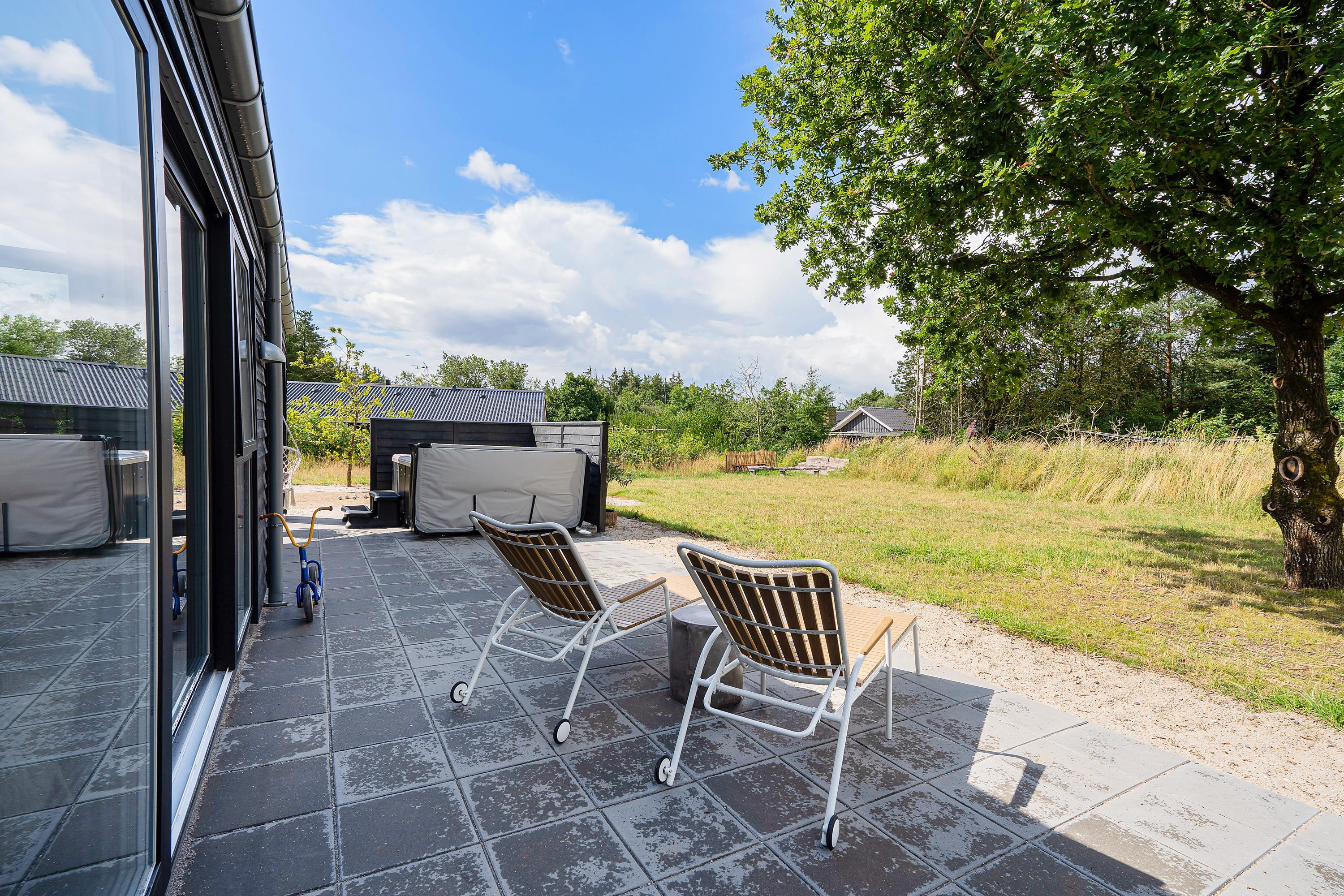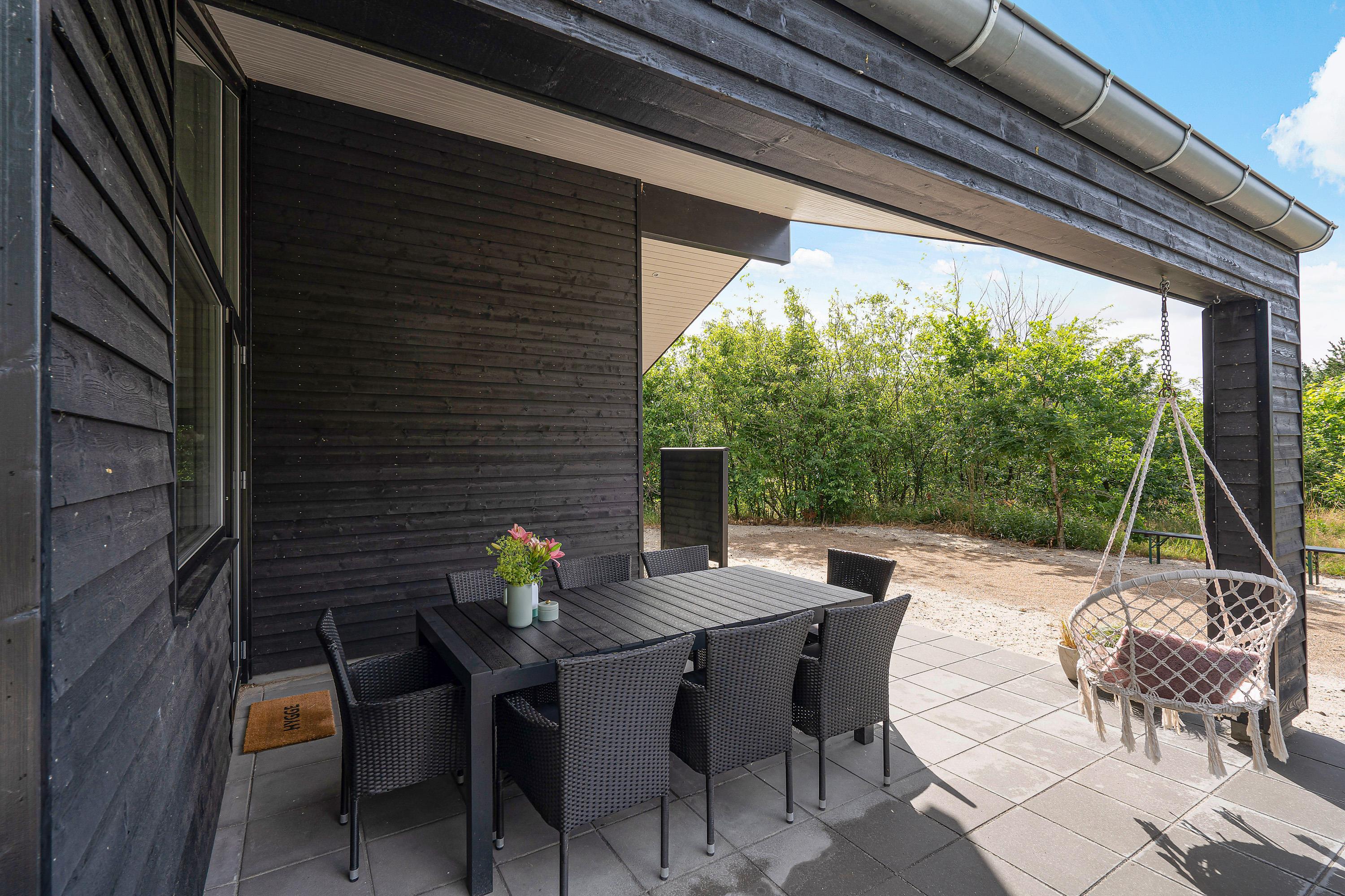 The holiday home is situated in a small holiday community in Henneby, just minutes from the vibrant resort of Henne Strand. Here you can enjoy peaceful, green surroundings while remaining close to miles of sandy beaches and extensive walking areas - the Lyngbo Heath and Blåbjerg Plantation.
