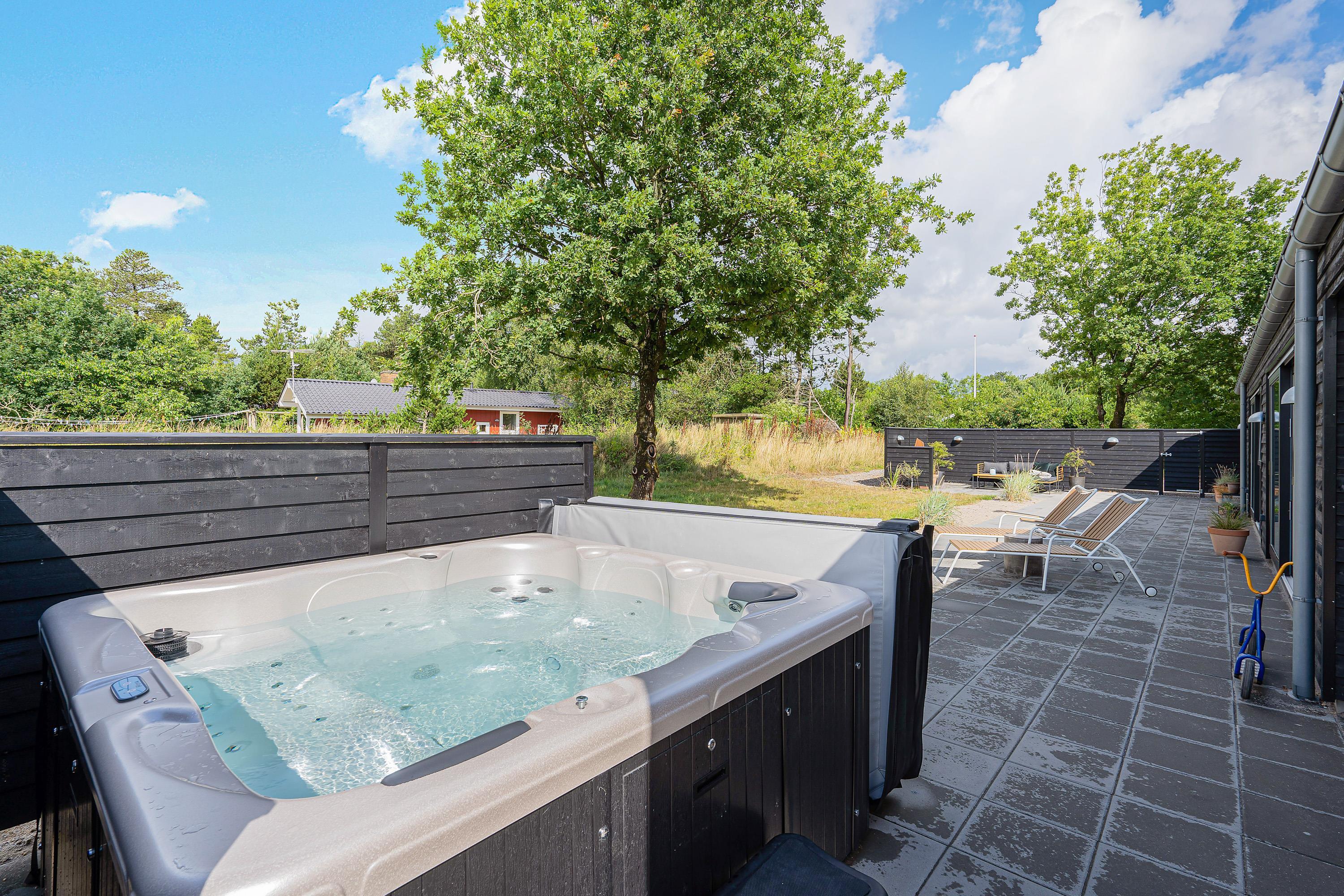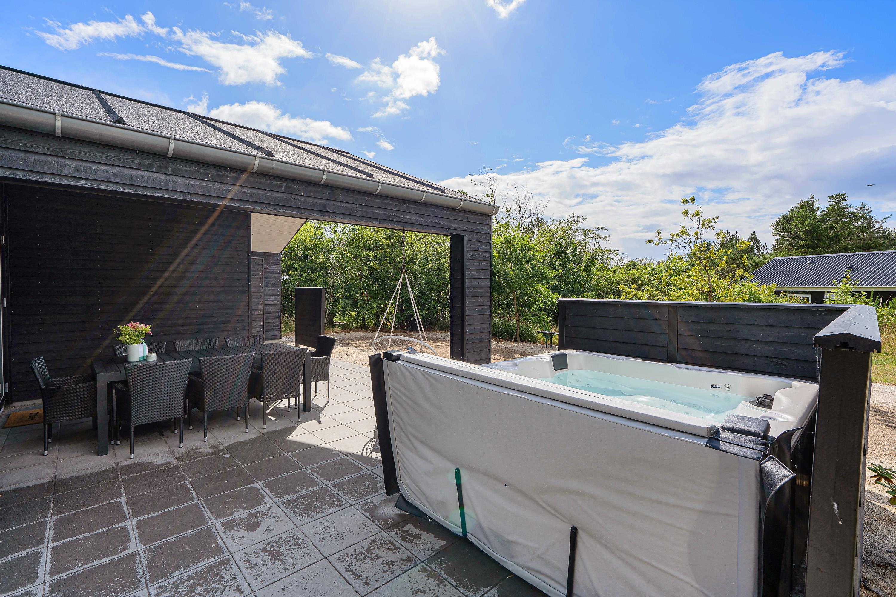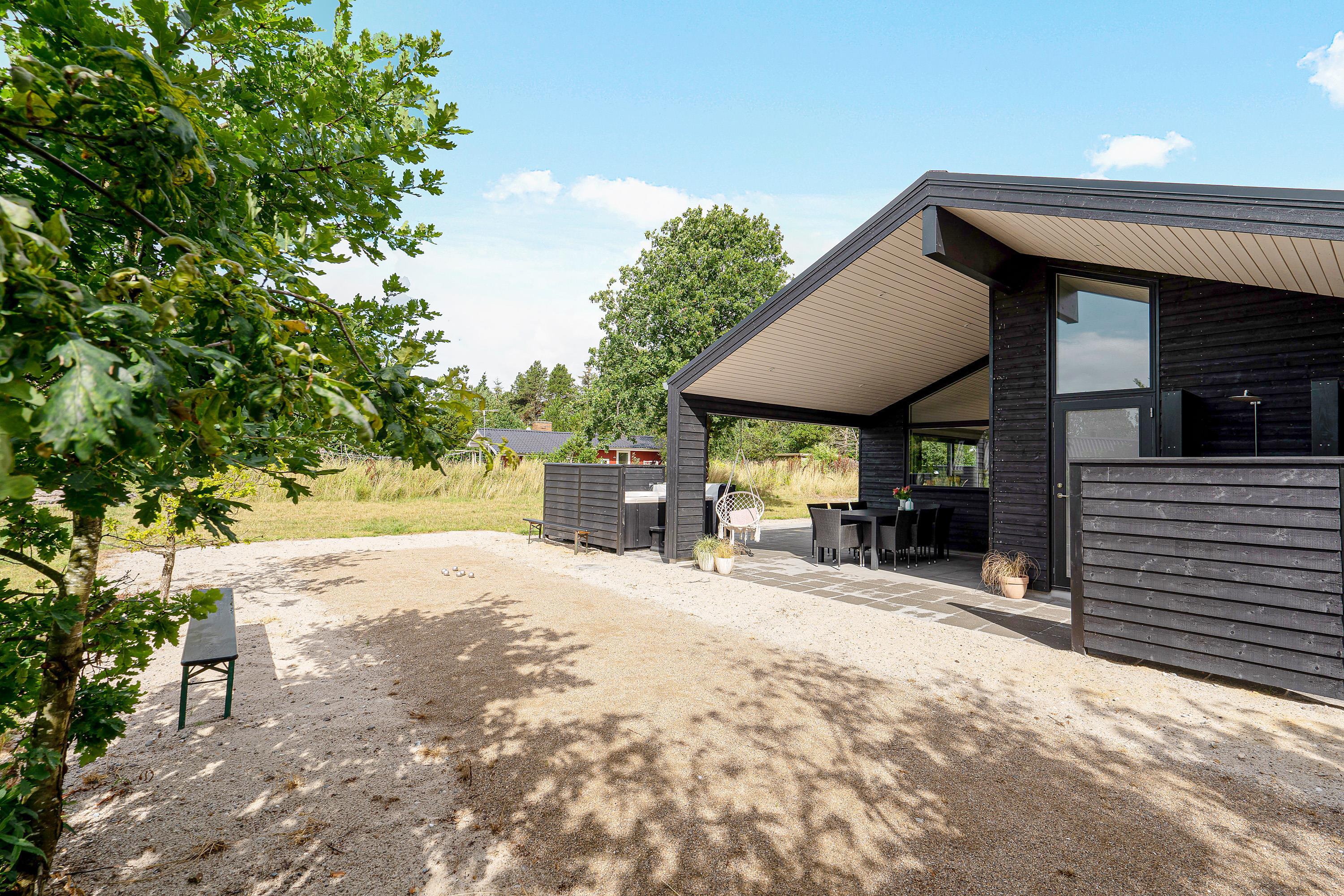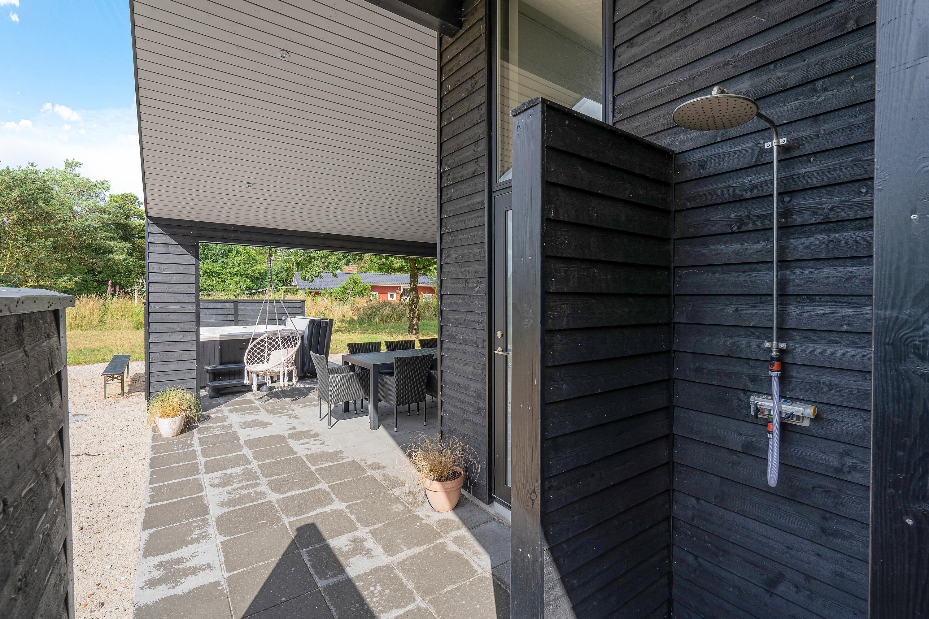 On the beautiful terrace, you can relax all day long, and after returning from the beach, rinse off the sand in the outdoor shower*. The outdoor area includes a bocce court where you can enjoy friendly competition and fun. A particular highlight is the outdoor hot tub, perfect for relaxation under the open sky regardless of the season.