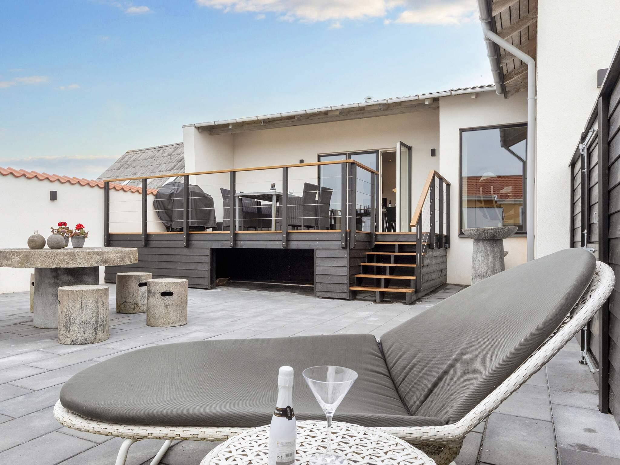 Alrummet, som er lækkert og hyggeligt møbleret, har udgang til stor veranda med havemøbler og nedgang til den hyggelige gårdhave. På verandaen er der gasgrill.