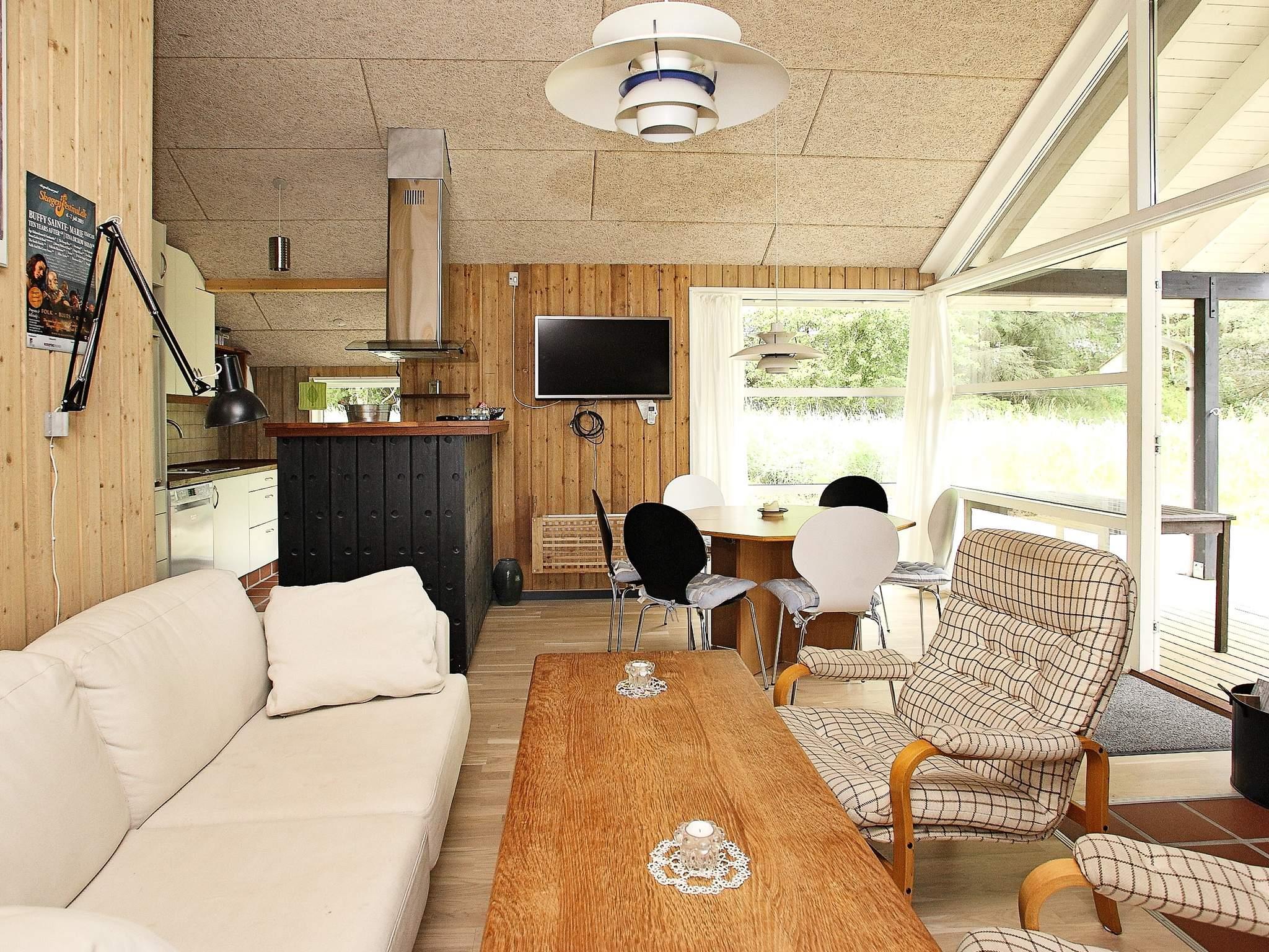 Sommerhus tæt på skøn badestrand, beliggende på blind vej omgivet af lidt skov og natur. Rummelig entre med glasparti, gang med soveværelse, køjerum og badeværelse med gulvvarme. Køkken/alrum med spiseplads, opholdsstue og udgang til terrasse samt alkove med plads til to personer. Der er varmepumpe, som gør, at huset hurtigt kan opvarmes. Stor, ugenert terrasse med mulighed for at nyde solen samt en overdækket terrasse til de lune sommeraftener.