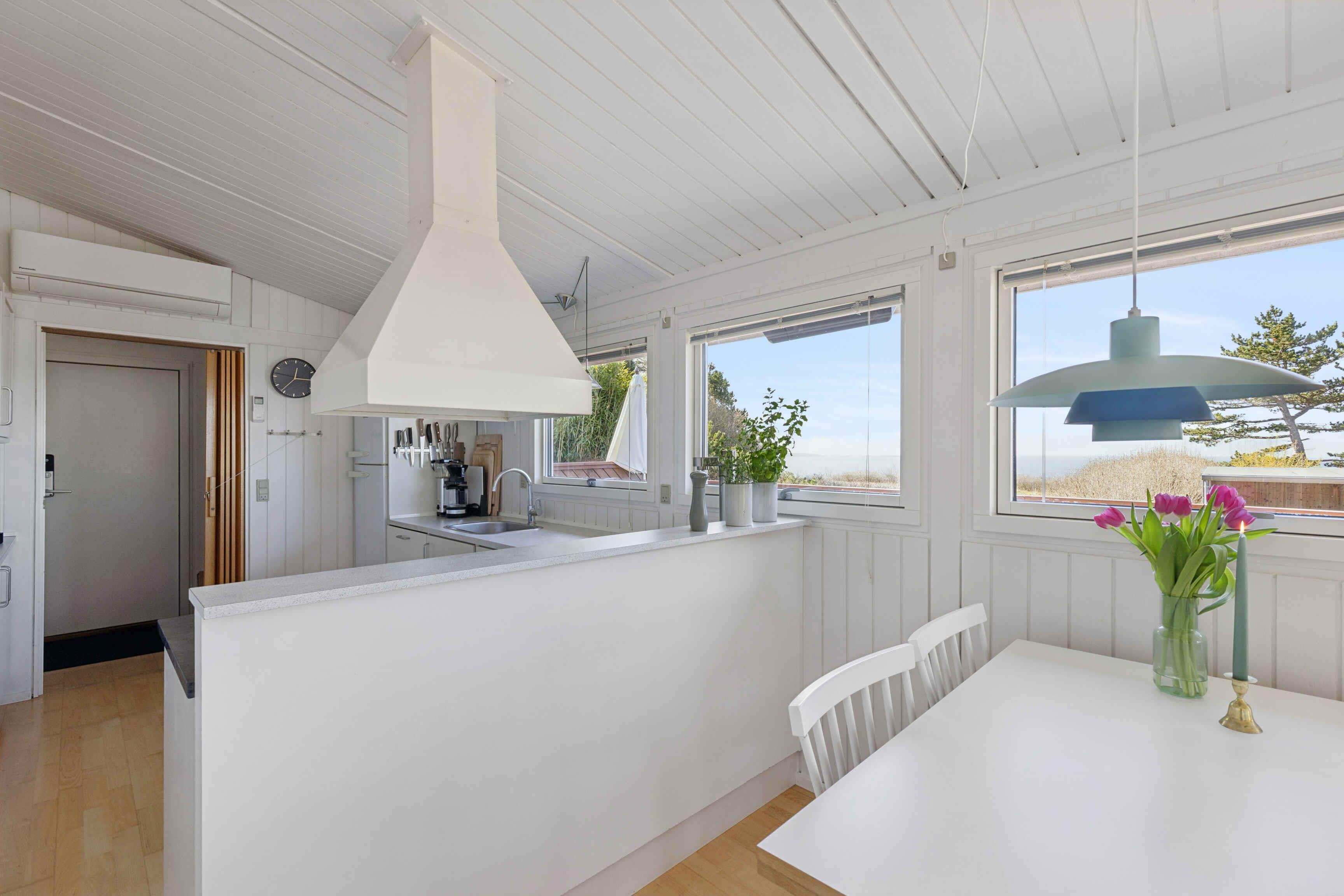 This lovely and carefully renovated holiday home on Røsnæs offers a truly unique location with breathtaking sea views. Here, you can enjoy peace, togetherness, and an authentic summer house atmosphere in beautiful surroundings. The kitchen is open to the cozy living room, allowing socializing and cooking to go hand in hand. It is well equipped with everything you need – including a dishwasher, of course – so you can fully relax and enjoy your holiday. Large windows in the living room let in plenty of natural light and offer views of both the property and the sparkling sea. The wood-burning stove creates extra coziness on cool evenings, and the house is also equipped with a heat pump and electric heating, ensuring year-round comfort. There is Chromecast and free internet, and a high chair is available for the youngest members of the family. The house features three comfortable bedrooms: two with double beds and a third with a double sofa bed – perfect for both family and friends. The bright bathroom includes a toilet, shower, and underfloor heating, providing a pleasant start to the day. The holiday home also has a washing machine, making it easy to take care of practical needs during your stay. Outside, a lovely fenced terrace awaits, complete with garden furniture and a barbecue – the perfect spot for long summer evenings dining under the open sky. Naturally, there is parking available at the house. For wine lovers, the location is ideal. The house is within walking distance of several of Røsnæs’ fantastic wineries and less than 4 km from Denmark’s largest winery – a wonderful opportunity to enjoy tastings in scenic surroundings. If you dream of nature experiences, the beautiful hiking route “Røsnæs Rundt” is almost right outside the door. This 25 km trail offers magnificent landscapes and can be reached on foot from the holiday home – just about 1 km away. Only about 7 km from the house, you will find the charming old market town of Kalundborg, along with atmospheric Højby, home to Denmark’s largest collection of medieval houses. Here you can also visit the impressive Church of Our Lady, which, according to tradition, was built by Esbern Snare in the early 13th century. The church is truly unique worldwide, with its ground plan shaped like a Greek cross and five distinctive towers rising majestically above the town. Here, you get the perfect combination of sea views, nature, culture, and true summer house idyll.