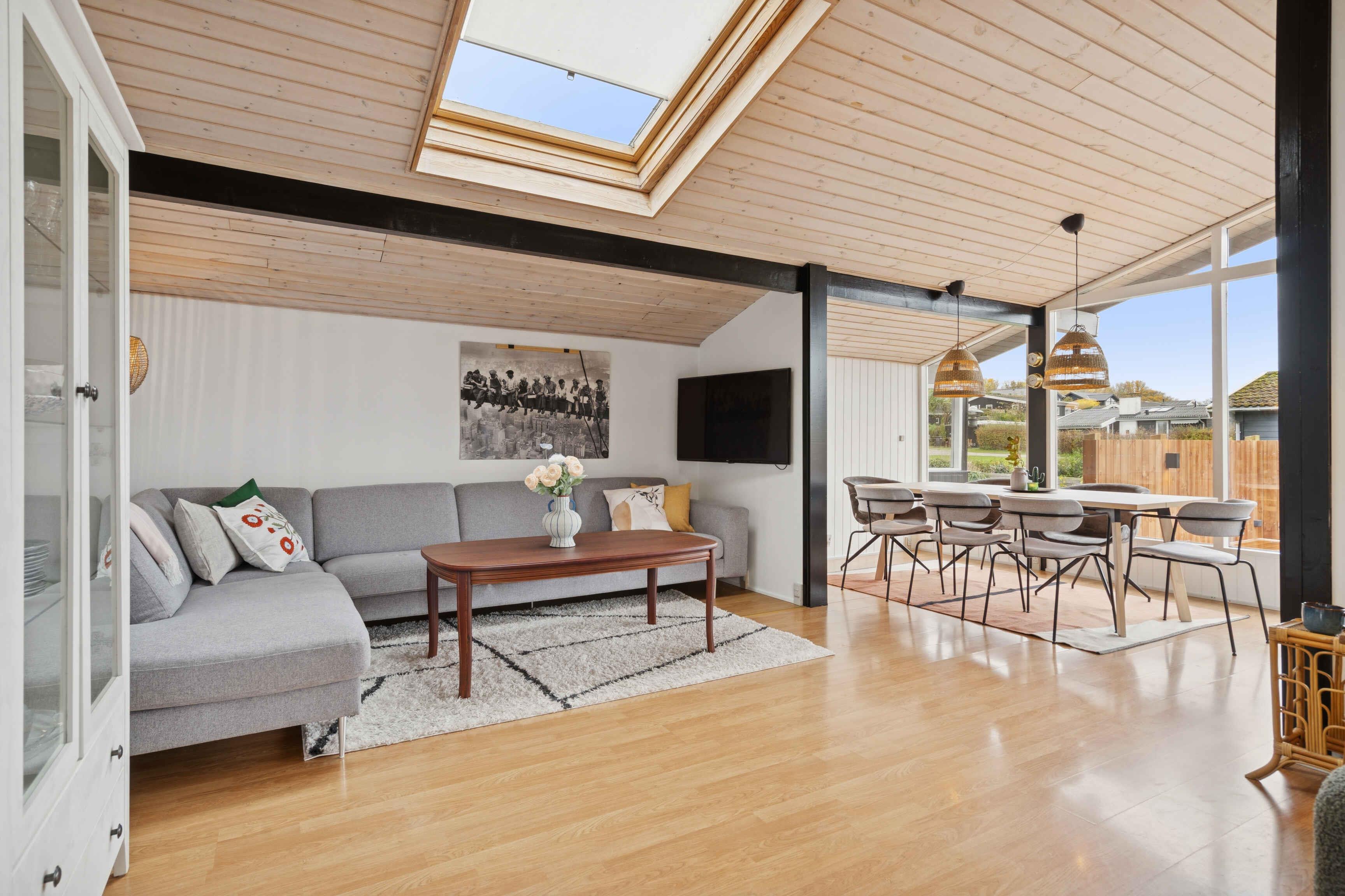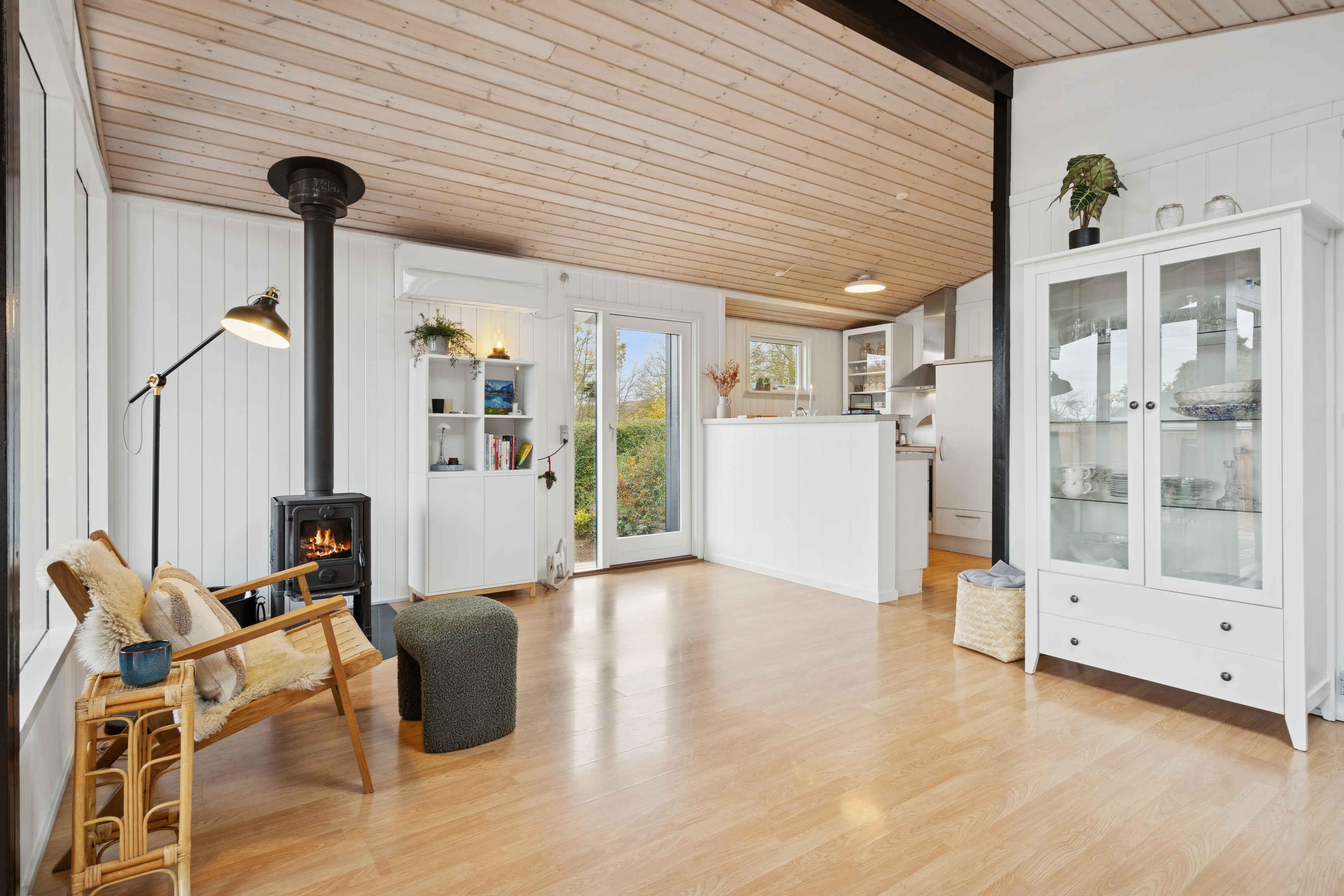 A bright and well-designed holiday home of 73 m² with space for five guests in two bedrooms. The house suits families and small groups seeking peaceful surroundings close to the beach and nature. The interior is functional with a heat pump, wood-burning stove and reliable internet, ensuring both comfort and convenience. The living area and kitchen are connected in an open layout, creating a natural gathering spot for meals and board games. Large windows offer great light and views of the quiet garden. The terrace invites barbecues and long summer evenings, while children can play safely in the garden. The area is peaceful and ideal for families. With only 700 metres to the water, it’s easy to pack a beach bag and head for the child-friendly coast. The area Karrebæksminde and Enø offer a relaxed coastal atmosphere with small cafés, ice-cream stands and a fishing environment. You'll find a family-friendly beach with shallow water, perfect for swimming and building sandcastles. The local harbour is a cosy place for an evening walk, buying fresh fish or enjoying the sun. Cycle paths and walking trails make it easy to explore at your own pace. The area also has scenic coastlines, small forests and good bird-watching spots. Children can enjoy playgrounds, and there are great places for picnics and calm outdoor activities. Næstved is a short drive away with shopping and cultural attractions. A holiday home for a stay filled with peace, togetherness and great coastal experiences — with nature, beach and local highlights close by.