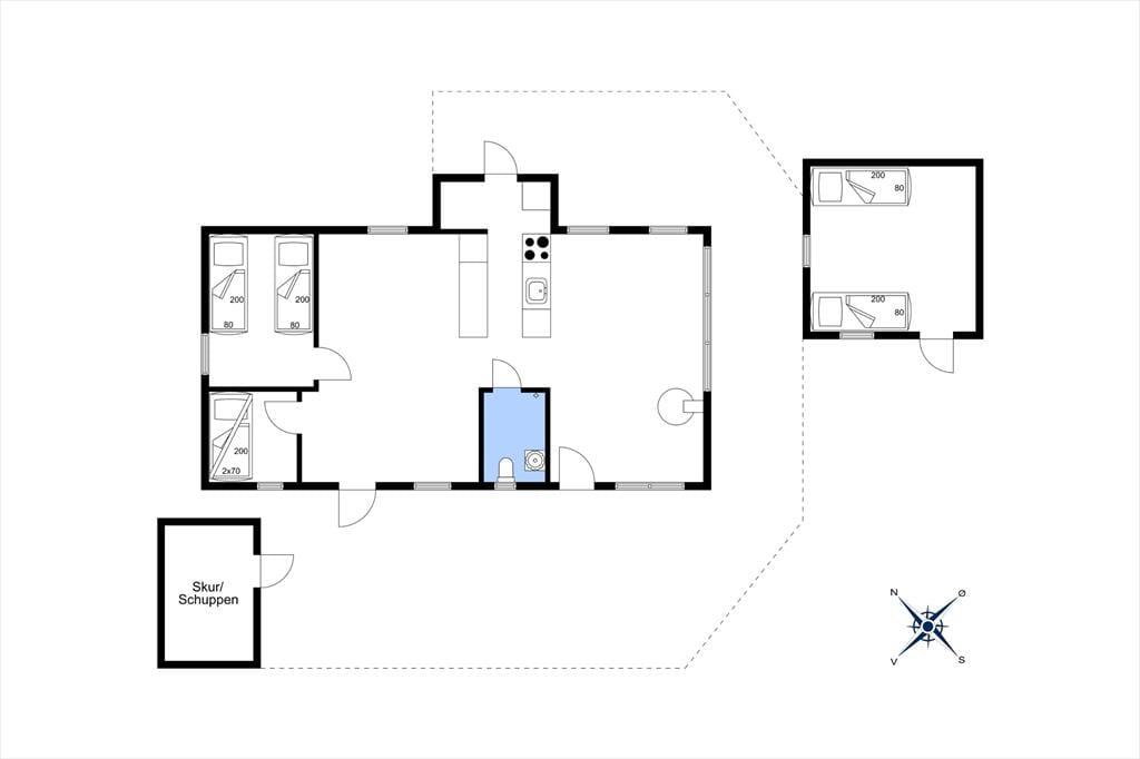 Auch wenn die nordjütische Natur mit ihrer Schönheit lockt, ist es verführerisch, in den gemütlichen Räumen des Hauses zu bleiben. Stellt euch vor, ihr habt alle Zeit der Welt zum Lesen, Puzzeln, Stricken oder Filme schauen – genau dazu laden das Wohnzimmer und der offene Küchen- und Essbereich ein. Hier gibt es einen Esstisch, einen Kaminofen und zwei Sofaecken, die dazu einladen, die Ferientage in angenehmem Tempo zu verbringen. In der Mitte befindet sich eine Küche, ausgestattet mit allem, was ihr für die Zubereitung leckerer Mahlzeiten braucht. Ein Badezimmer mit Dusche und zwei Schlafzimmer runden die Einrichtung ab, und im Annex gibt es weitere Schlafplätze für alle, die diesen bevorzugen.