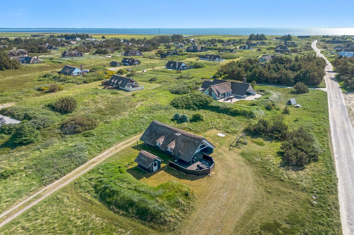 Ferieboligen er beliggende på en 2000 m² stor naturtomt. Avstand til hav er 800 m. Nærmeste butikk ligger i en avstand på 2000 m. Til ferieboligen hører 40 m² terrasseareal. Huske. Sandkasse. Det er grill til rådighet. P-plass ved huset.