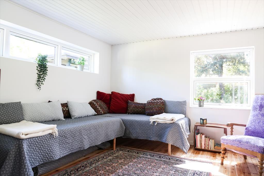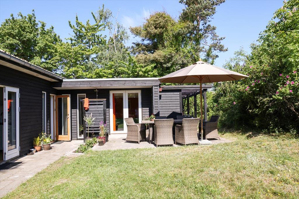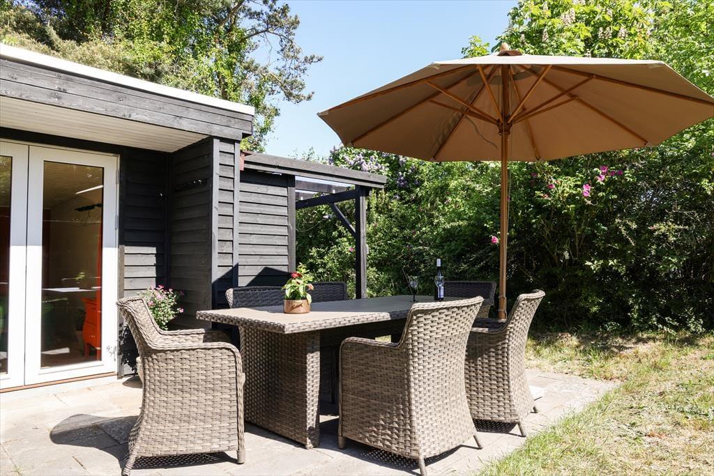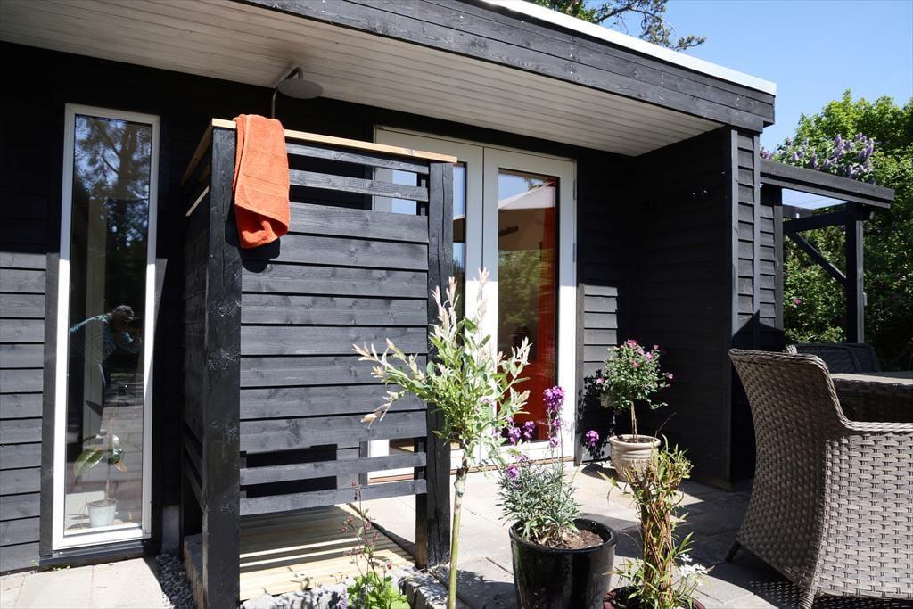 Dein Urlaubsdomizil befindet sich in einem ausgesprochen beliebten Ferienhausgebiet. Auf deinem Grundstück wirst du von morgens bis abends mit Sonne verwöhnt. Falls dir und deinen lieben der Sinn nach einer kleinen Abkühlung steht, könnt ihr jederzeit zu Fuß an den nur fünf Minuten entfernt liegenden Badestrand aufbrechen. Zurück am Haus spült euch die Außendusche den Sand und das Salz des Meeres von der Haut. Oder stelle dir vor, wie du den neuen Tag mit einem Duschbad unter freiem Himmel begrüßt - wunderschön untermalt vom fröhlichen Vogelgezwitscher. Abends, nachdem die Kinder längst ins Bett gegangen sind, kannst du den Abend sehr schön mit deinem Lieblingsgetränk auf der Terrasse ausklingen lassen und dabei den funkelnden Sternenhimmel bewundern.