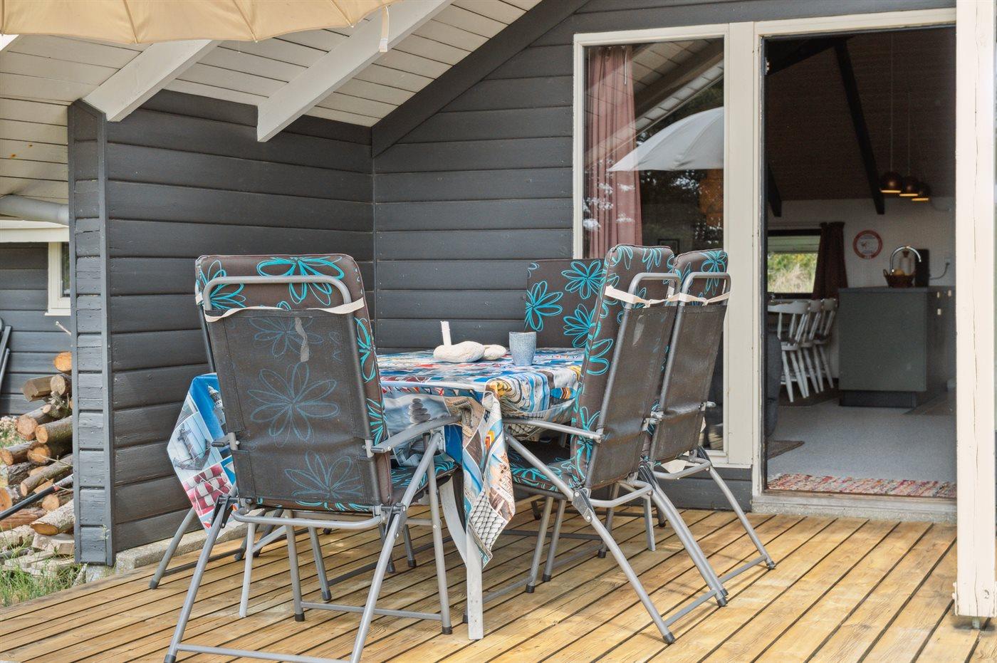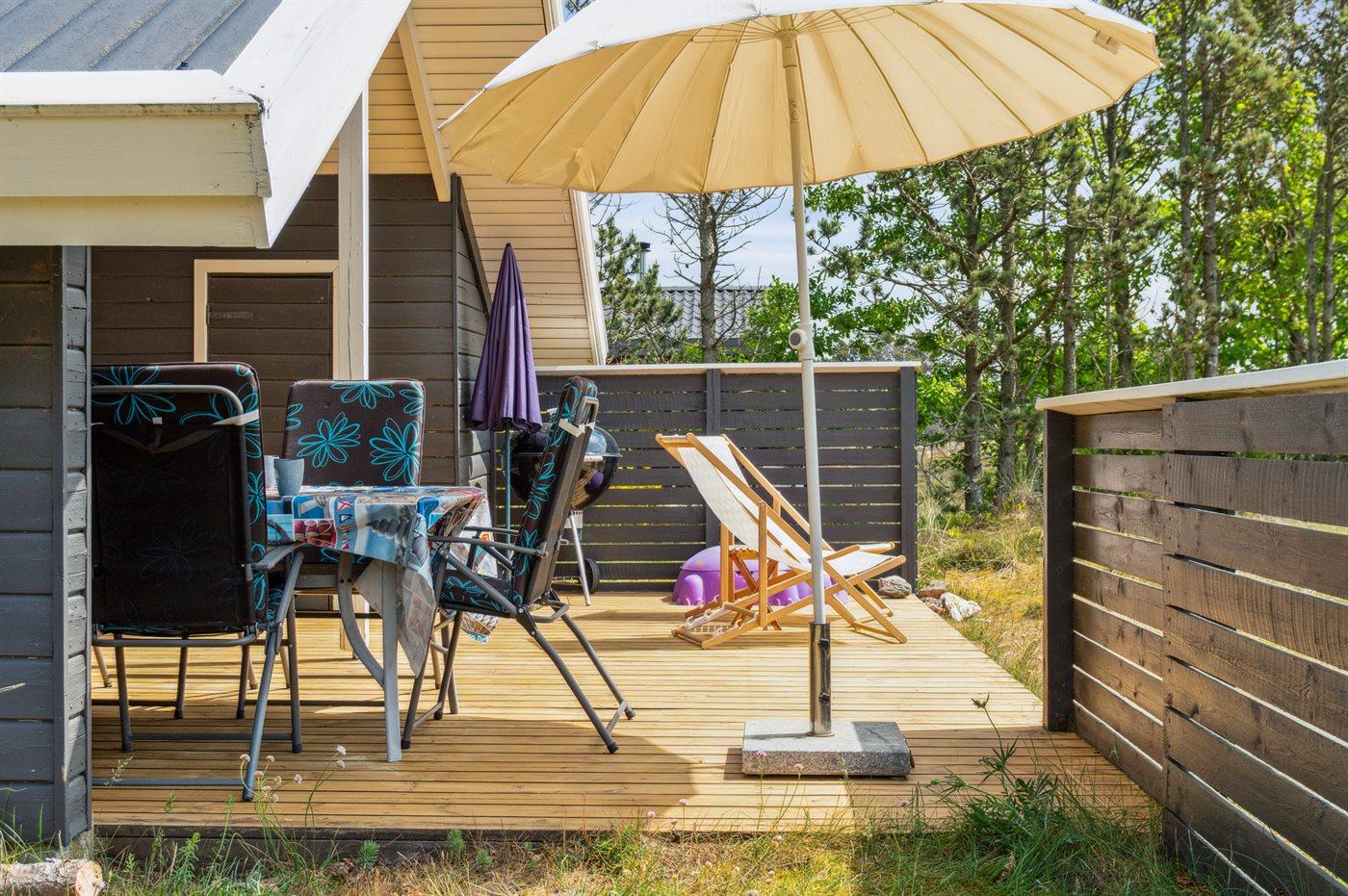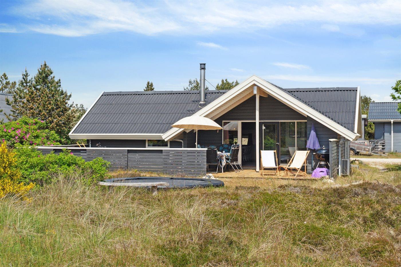 Ferieboligen er beliggende på en 400 m² stor naturtomt. Avstand til hav er 900 m. Nærmeste butikk ligger i en avstand på 900 m. Golfbane i en avstand på 5000 m. Til ferieboligen hører 20 m² terrasseareal. I tillegg er det 20 m² overdekket terrasse. Trampoline. Det er grill til rådighet. P-plass ved huset.