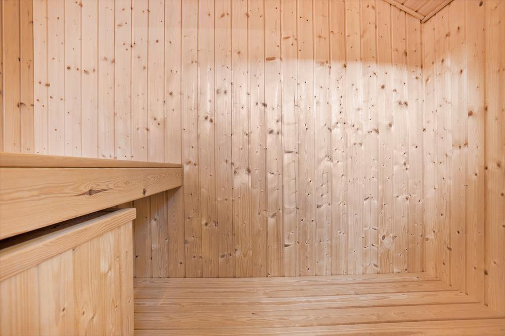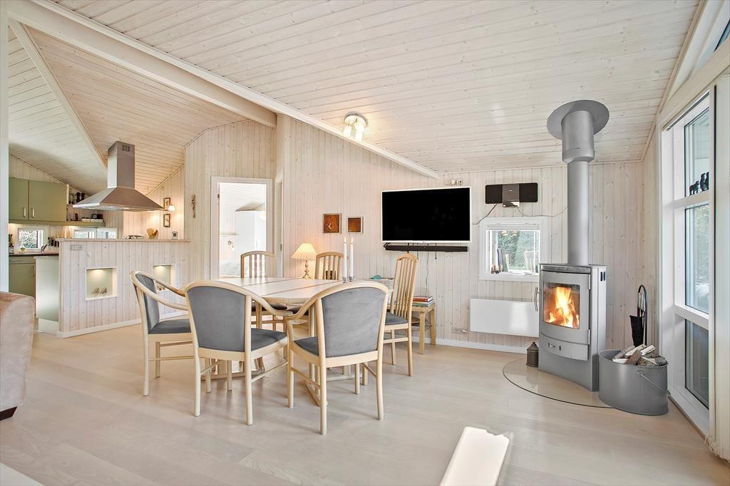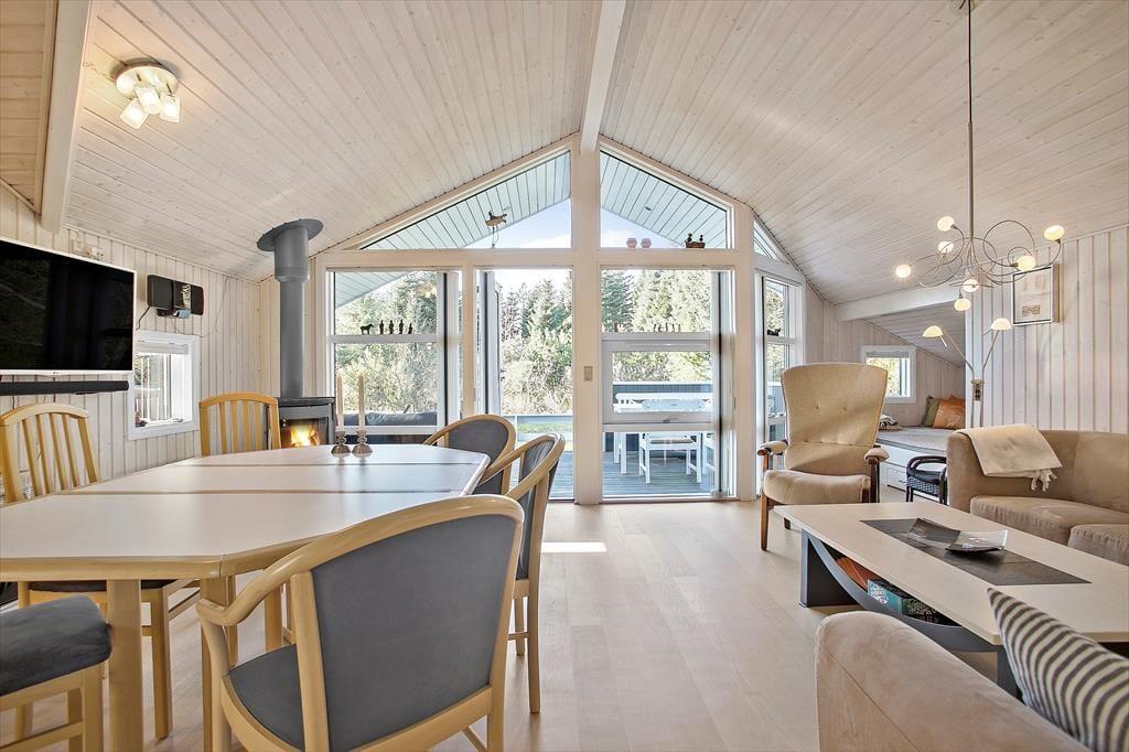 Eine schöne, sonnenverwöhnte Terrasse, ein romantisch knisternder Kaminofen im Wohnraum und eine Sauna im Badezimmer - dies ist nur eine kleine Auswahl der gemütlichen Details und Annehmlichkeiten, die Ihnen dieses schöne Ferienhaus, das am Ende eines geschlossenen Weges direkt am Waldgebiet Kollerup Plantage liegt, bieten kann.