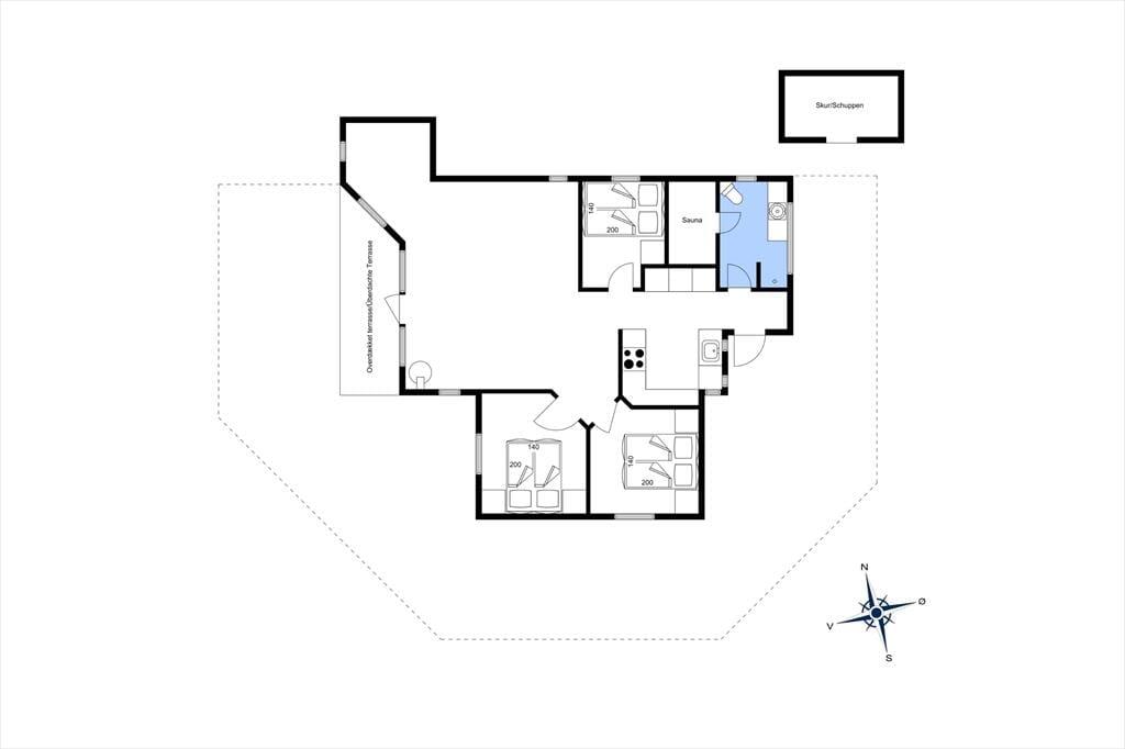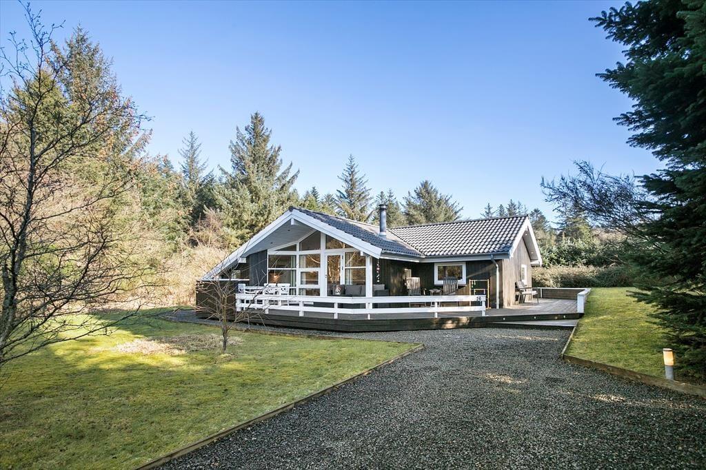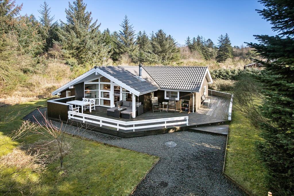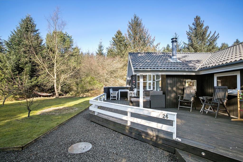 Die herrliche Holzterrasse des Urlaubsdomizils erstreckt sich gen Osten, Süden und Westen und bietet Ihnen somit den gesamten Tag hindurch beste Möglichkeiten ein sonniges Plätzchen zu finden. Falls Sie eher den kühlen Schatten bevorzugen, setzen Sie sich einfach unter die Terrassenüberdachung oder spannen den hauseigenen Sonnenschirm auf. Auf der Grasfläche können Ihre Kinder nach Herzenslust umhertollen und spielen. Für Garten- und Ballspiele mit der gesamten Familie ist die Grasfläche sehr gut geeignet. Ganz gleich, ob Sie sich in vollen Zügen entspannen oder auf dem Grundstück aktiv sein möchten, Sie werden zu jeder Zeit die ruhige und ungestörte Lage am Ende des geschlossenen Weges Poppelvej zu schätzen wissen.