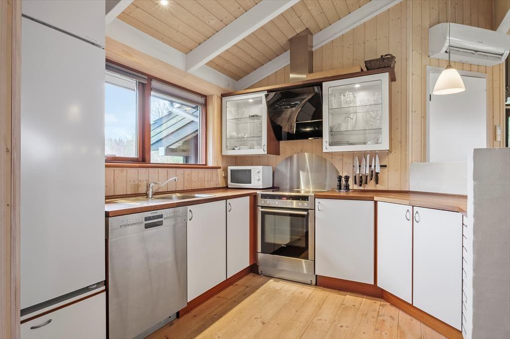 Im Inneren erwartet dich ein helles und einladendes Ferienhaus mit einer angenehmen Atmosphäre. Das Wohnzimmer ist der natürliche Treffpunkt des Hauses und bietet Platz für Entspannung und gemeinsames Beisammensein nach einem erlebnisreichen Urlaubstag. Die Küche ist funktional eingerichtet und gut ausgestattet, sodass ihr problemlos die täglichen Mahlzeiten zubereiten könnt.