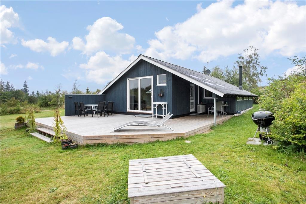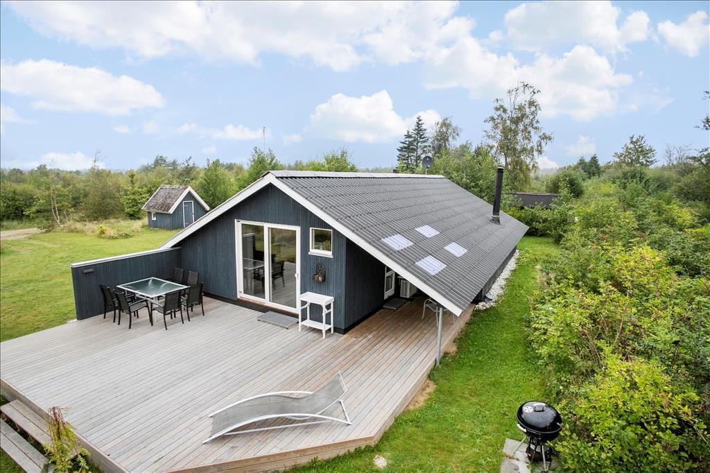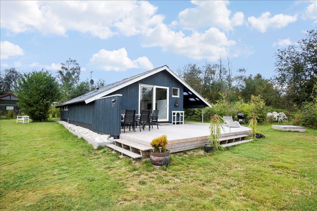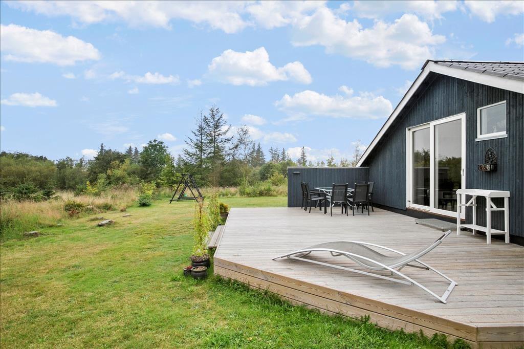 Das Ferienhausgrundstück liegt angenehm ungestört am Ende des Weges Hasselvej. Dank der grünen Randbepflanzung können Sie sich, ohne neugierige Blicke fürchten zu müssen, völlig frei auf der Terrasse entfalten und Ihre Urlaubstage in vollen Zügen genießen. Gartenmöbel sind selbstverständlich vorhanden. Die Terrasse, die sich in Richtung Süden erstreckt ist groß und sonnig. Gen Osten erwartet Sie darüber hinaus ein überdachter Terrassenbereich, der Sie mit angenehm kühlem Schatten verwöhnt. Auf der Grasfläche bieten sich Ihrer Familie schöne Bedingungen für verschiedenste Gartenspiele. Für Spaß und Abwechslung bei den Jüngsten ist Dank eines Spielhauses, einer Sandkiste und einer Schaukel bestens gesorgt.