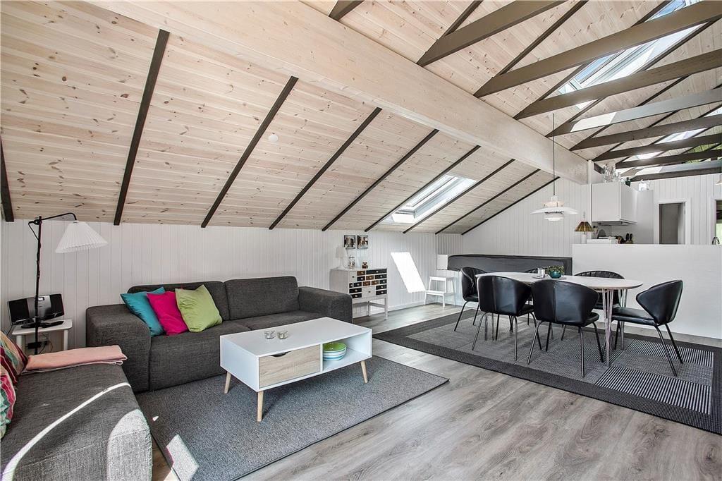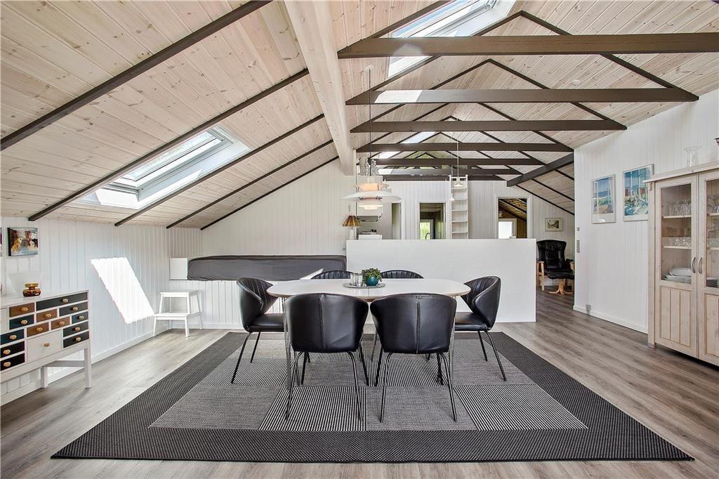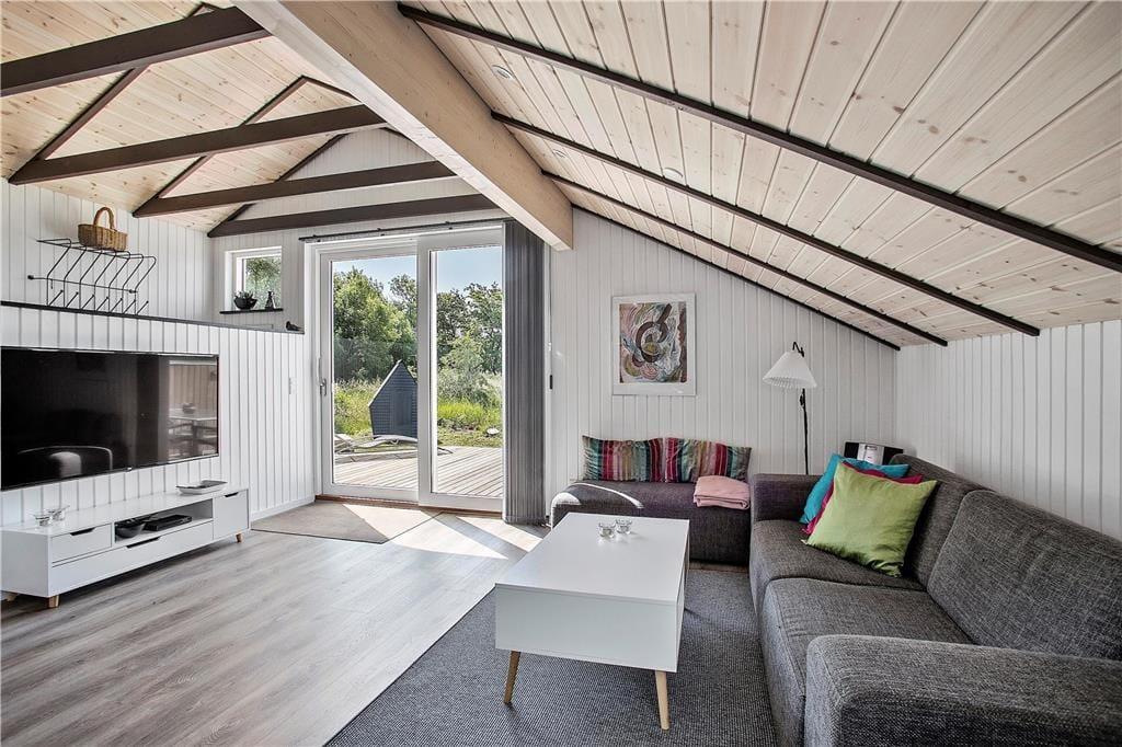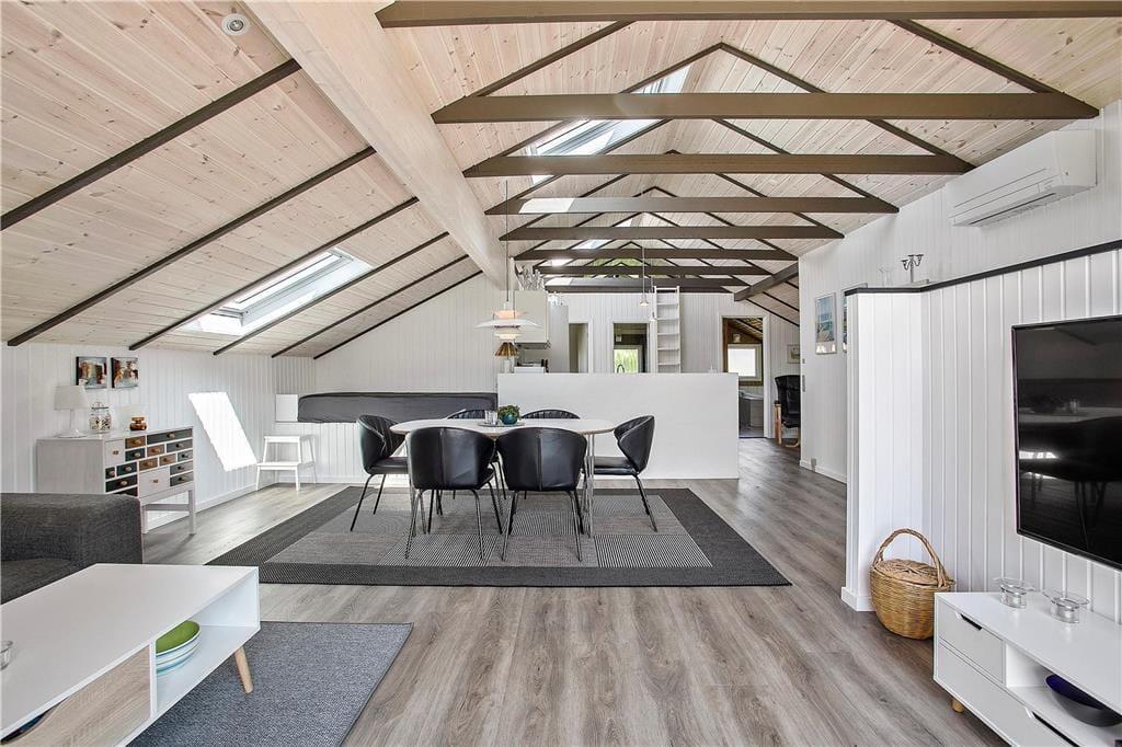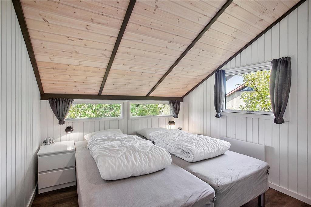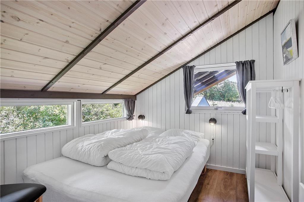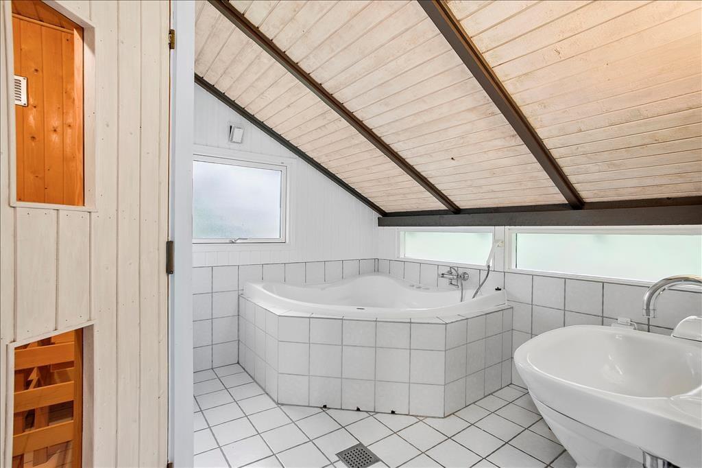 Das Holzferienhaus wurde in 2020 einer umfassenden Renovierung unterzogen. Infolge der überaus gelungenen Renovierung dürfen Sie sich nun auf 103 m² freuen, von denen jeder einzelne besonders einladend und freundlich wirkt. Das luftige, leichte Ambiente ist auf die hellen Farbtöne und die zahlreichen gut platzierten Fenster zurückzuführen, die dafür sorgen, dass Sie sich an einem herrlichen Lichteinfall erfreuen dürfen, wenn Sie es sich auf den Sofas gemütlich machen, am Esstisch sitzen oder in der schönen, offenen Küche die Mahlzeiten zubereiten. An kühleren Tagen versprüht der Kaminofen ein Maximum an echter dänischer Ferienhausgemütlichkeit. Wenn Sie sich nach einem langen Urlaubstag so richtig erholen und entspannen möchten, ziehen Sie sich einfach in den Whirlpool oder die Sauna im größeren der beiden vorhandenen Badezimmer zurück. Eine Waschmaschine und ein Wäschetrockner sind dort ebenfalls untergebracht. Es gibt insgesamt drei Schlafzimmer, von denen zwei mit je einem Doppelbett ausgestattet sind. Im dritten Schlafraum stehen zwei Einzelbetten für Sie bereit.