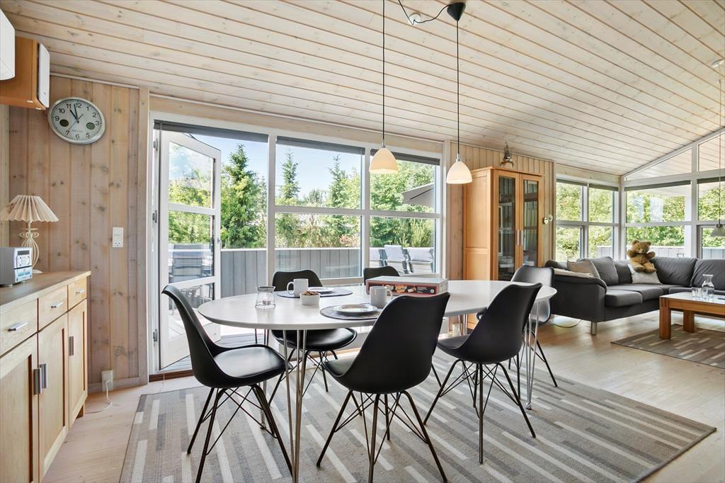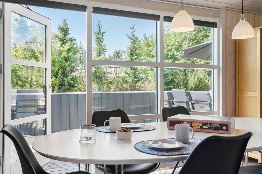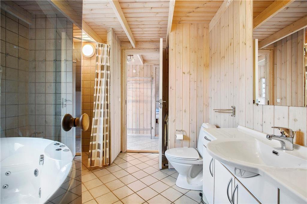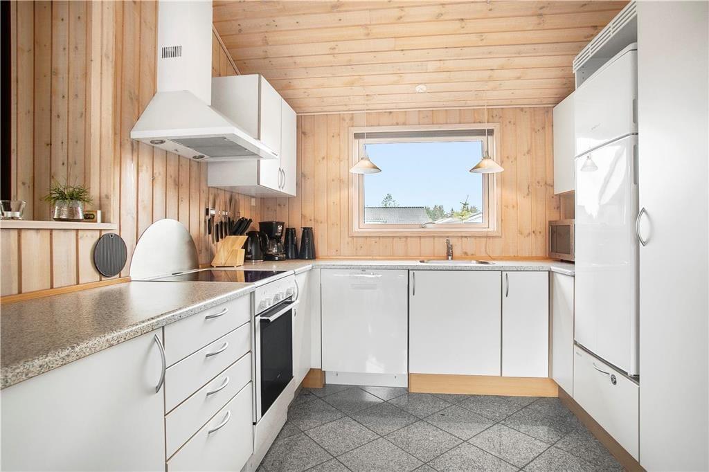 Hier sehen Sie ein klassisch dänisches, gepflegtes Ferienhaus. Durch die moderne Einrichtung, höchstem Komfort und beste Ausstattung werden Sie mit Sicherheit gute Urlaubstage haben. Überall gibt es gute Böden, hohe Decken und angenehmes Licht durch die vielen Fenster. Der zentrale Raum ist der kombinierte Wohn- und Küchenbereich mit Esstisch, Sofaecke mit Platz für die ganze Familie und einem Kamin für wohlige Wärme und Gemütlichkeit. In den drei Schlafräumen befinden sich bequeme Betten und Schränke und das einladende Badezimmer ist mit Dusche und Whirlpool ausgestattet. Hier werden Sie mit Garantie einige Momente von Wellness und Entspannung erleben. Das Ferienhaus eignet sich sowohl für Familie als auch Paare und ist nicht ohne Grund so beliebt!