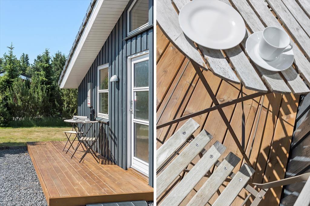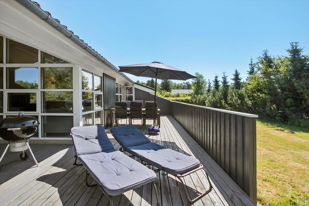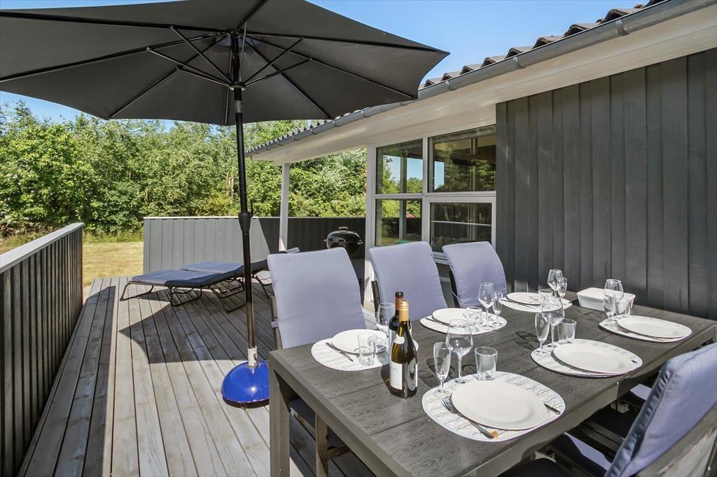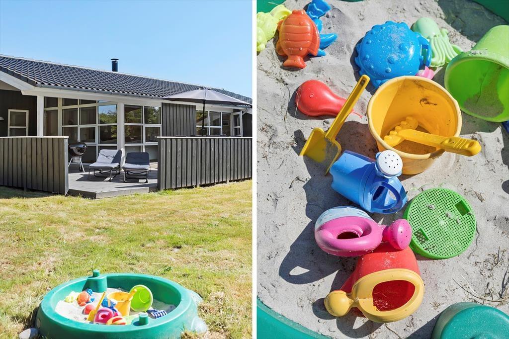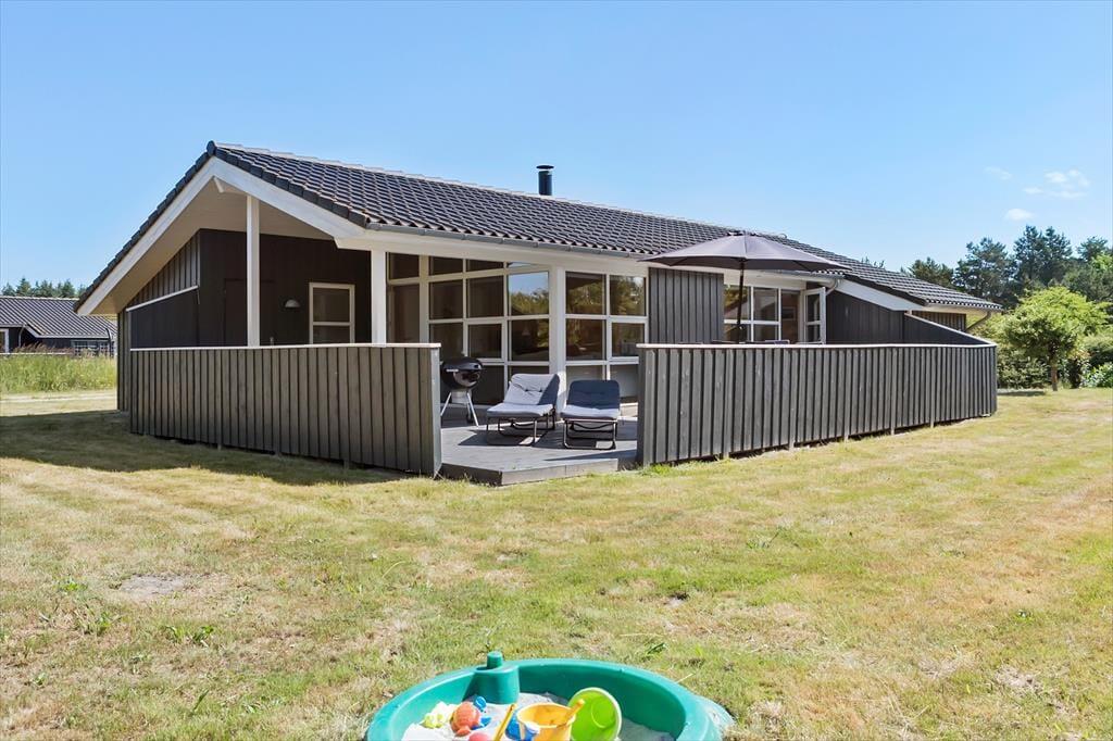 Das Ferienhaus steht auf einem gepflegten Wiesengrundstück in ruhiger, natürlicher Umgebung. Sandkasten sind vorhanden und es gibt ausreichend Platz zum Sonnen und Spielen auf der Wiese. Vom Wohnzimmer haben Sie Zugang zu der großen südwestlichen Terrasse, die besonders im Sommer einladend ist. Diese ist abgeschirmt und teilweise überdacht, falls Sie einmal keine Sonne oder sich zurückziehen möchten.