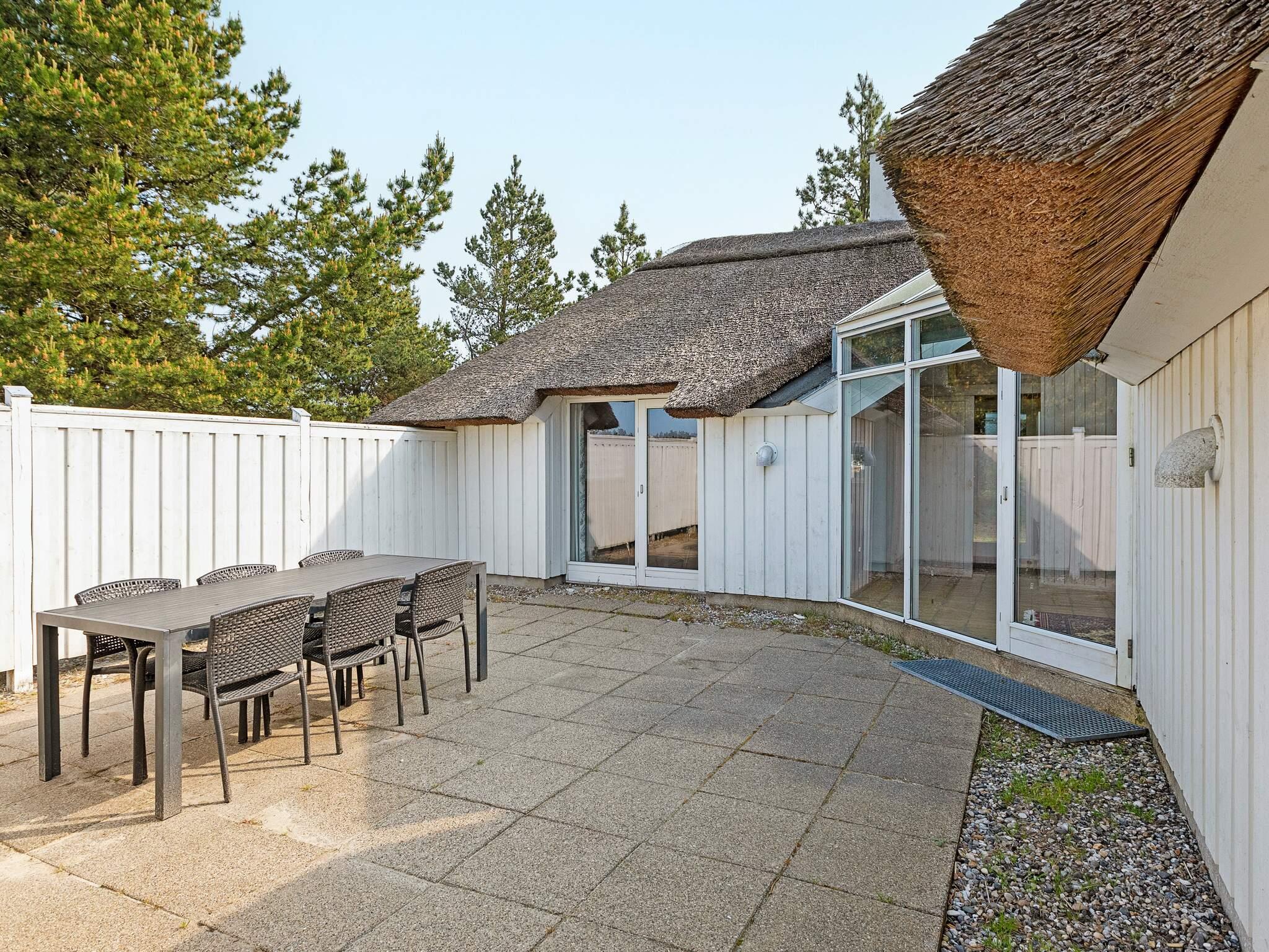 Ved Tranum Strand finder du dette charmerende stråtækte sommerhus i et unikt, ugeneret ferieområde med fælles pool. Huset byder på to soveværelser med dobbeltsenge og to ekstra soveværelser med hver to enkeltsenge, hvilket gør det ideelt for familier eller grupper. Badeværelset har bruser og vaskemaskine. Det veludstyrede køkken har moderne hårde hvidevarer, herunder en opvaskemaskine, og forbindes til en stue med en hyggelig brændeovn. Fra stuen/køkkenområdet har du adgang til en privat lukket terrasse, perfekt til udendørs afslapning og måltider.
