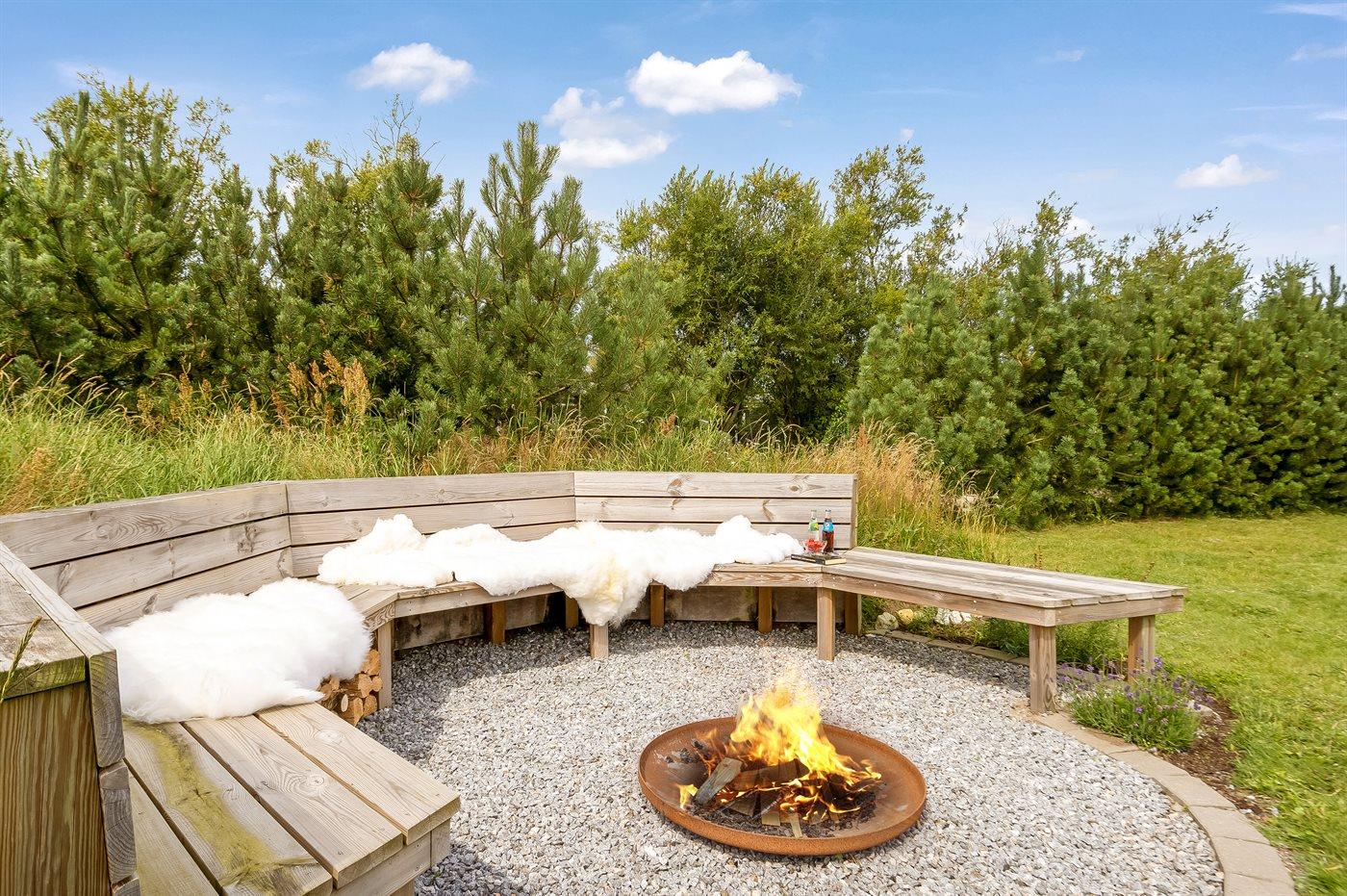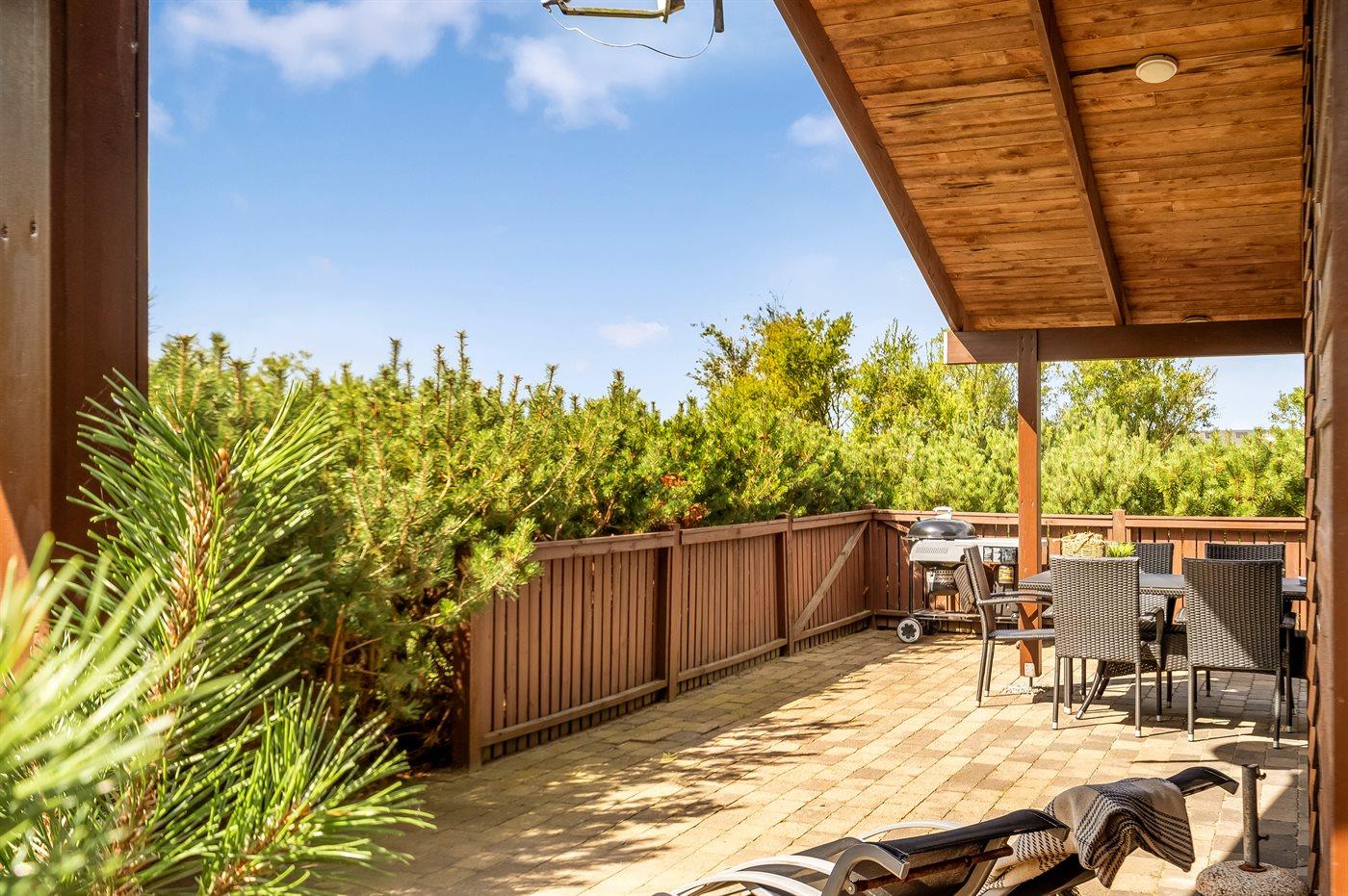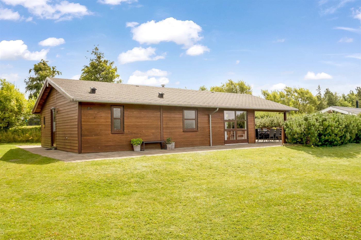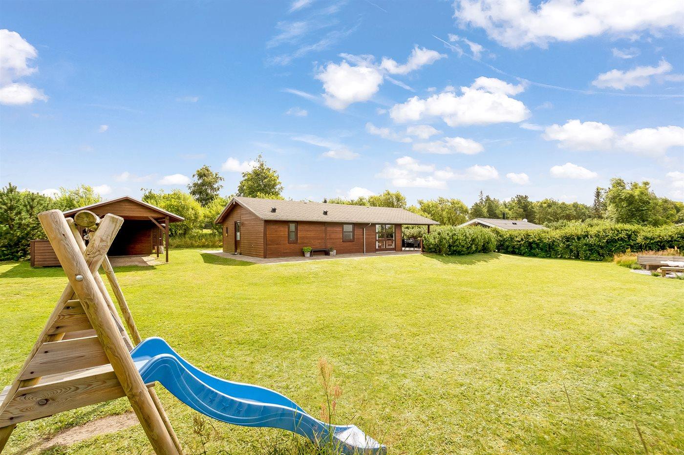 Ferieboligen er beliggende på en 1153 m² stor naturtomt. Avstand til hav er 3500 m. Nærmeste butikk ligger i en avstand på 1200 m. Golfbane i en avstand på 3000 m. Til ferieboligen hører åpent terrasseareal. I tillegg er det overdekket terrasse. Det er Redskapsrom. Huske. Rutsjebane. Bålplass. Det er grill til rådighet. Det er carport til rådighet. P-plass ved huset.