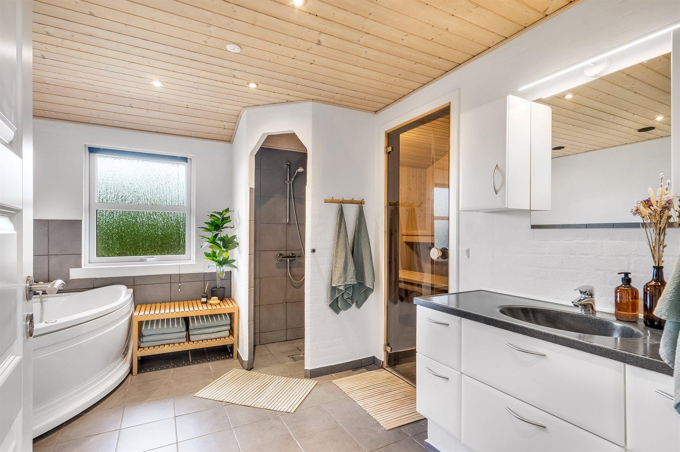Det er 2 baderom med dusj og 2 toaletter I badstuen er det mulighet for å slappe av.