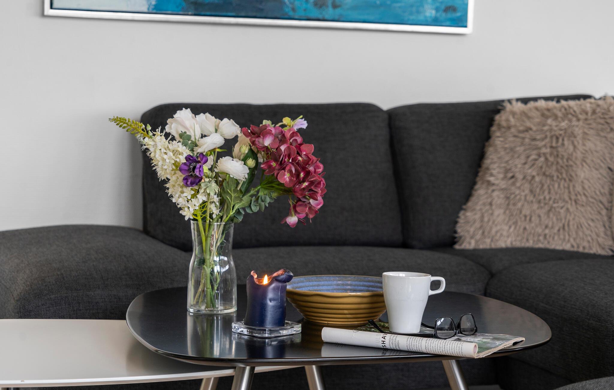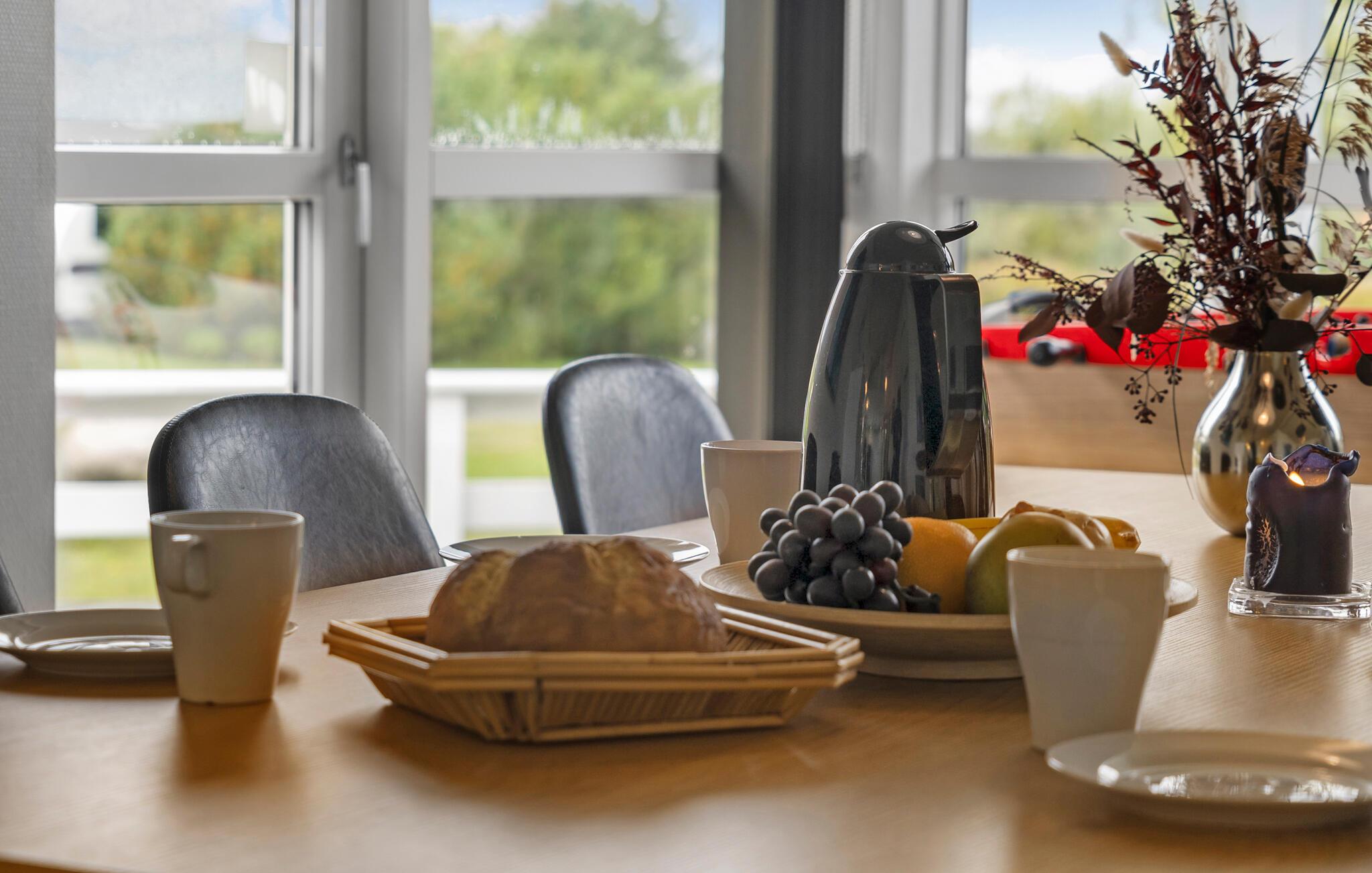 Velkommen til dette stilfulle og komfortabelt innredede feriehuset, hvor du kan komme deg bort fra alt sammen med dine nærmeste. Store vinduer åpner opp utsikten mot det grønne og gir det åpne oppholdsrommet rikelig med naturlig dagslys. Nyt måltidene sammen ved det innbydende spisebordet, og etter en lang dag i frisk luft kan du unne deg koselige stunder i badstuen eller boblebadet, mens andre spiller biljard eller bordtennis eller forbereder en koselig spillkveld i stuen.