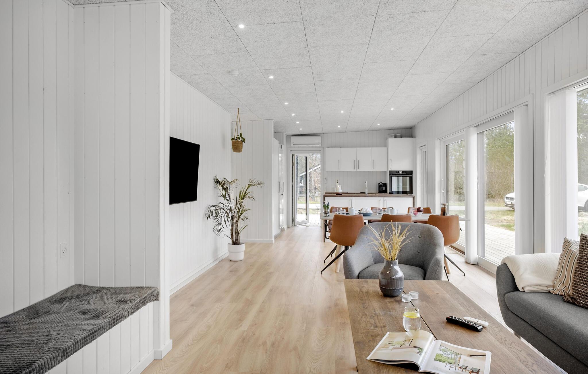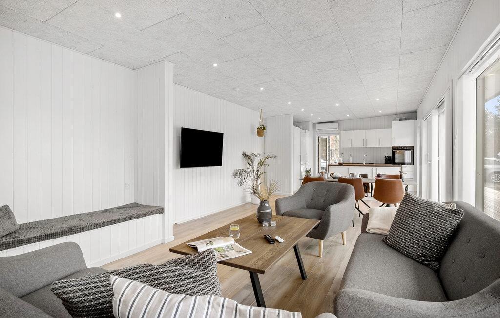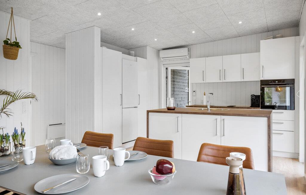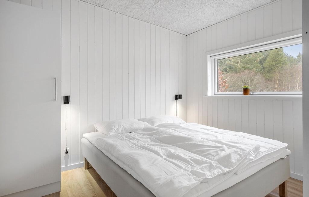 Dette feriehuset ligger i den vakre naturen på Kollerup Klit i nærheten av Fjerritslev, og er det ideelle stedet for avslapning og små eventyr i nærområdet. Det lyse og vennlige interiøret skaper en hyggelig og koselig atmosfære. Sett deg godt til rette i de koselige sofaene i stuen og nyt ferien til det fulle. Det åpne kjøkkenet inviterer deg til å tilberede deilige måltider, som du kan nyte enten ved spisebordet eller utendørs på den innbydende treterrassen.