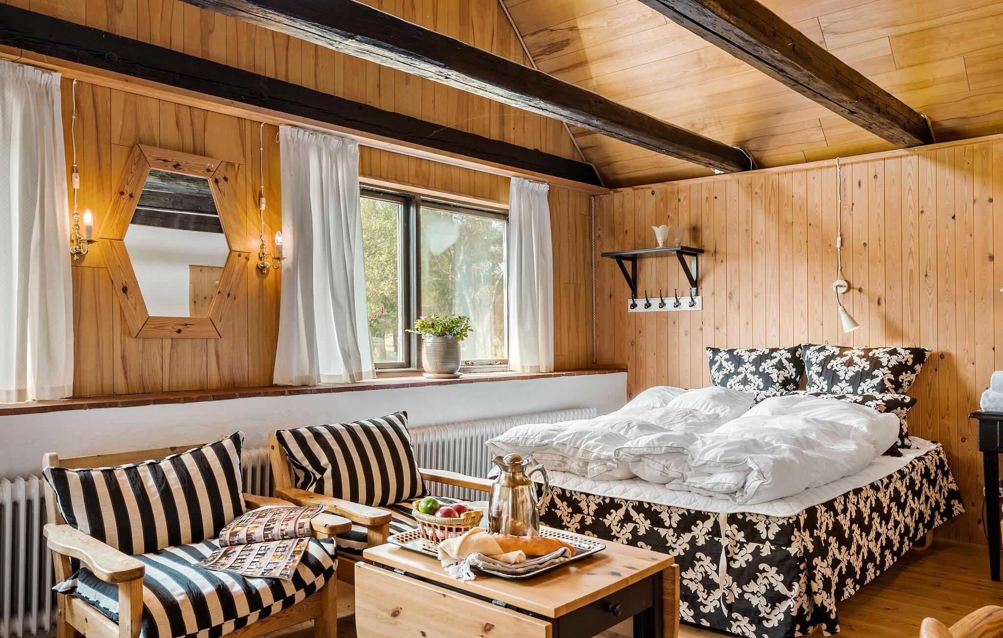 En koselig atmosfære og mange vakre strender venter på deg på denne feriehusferien.