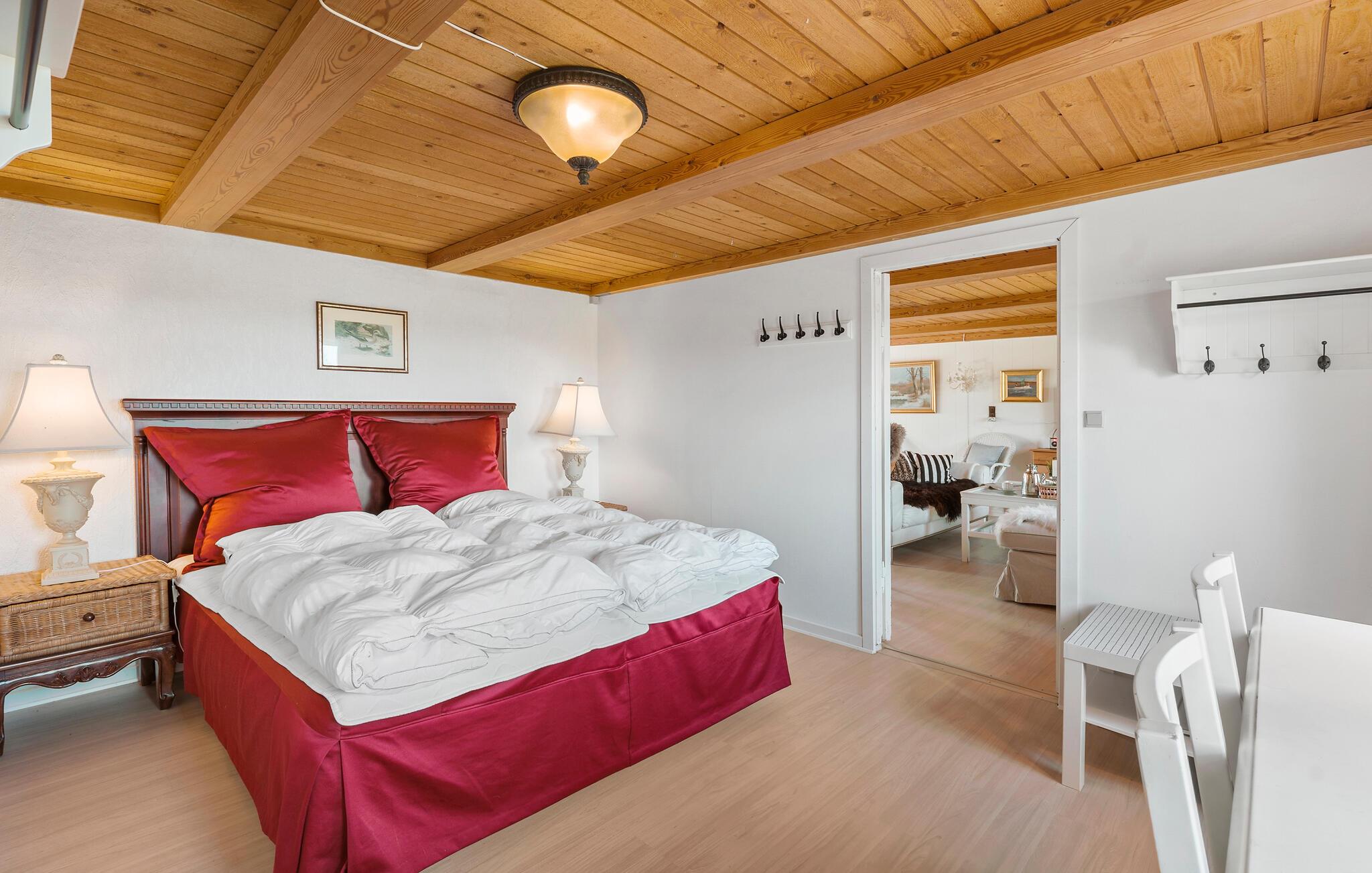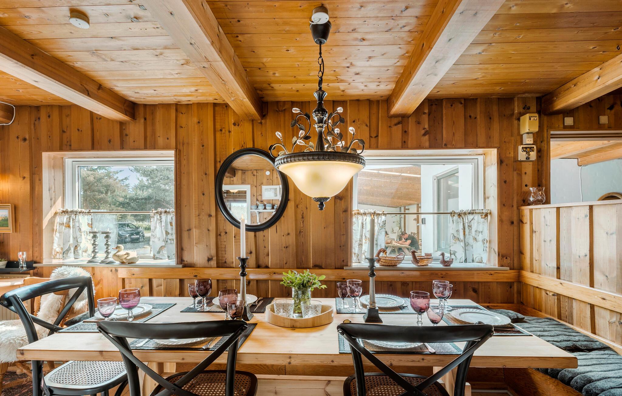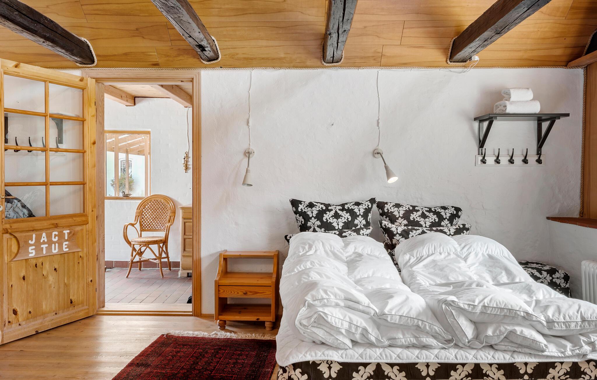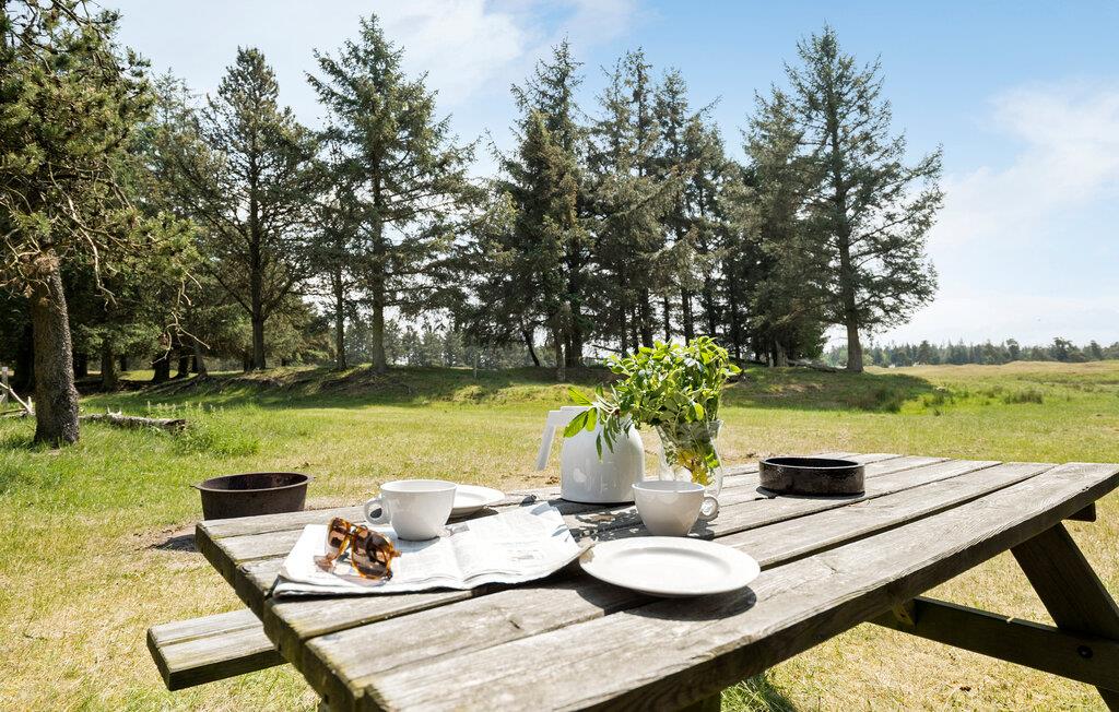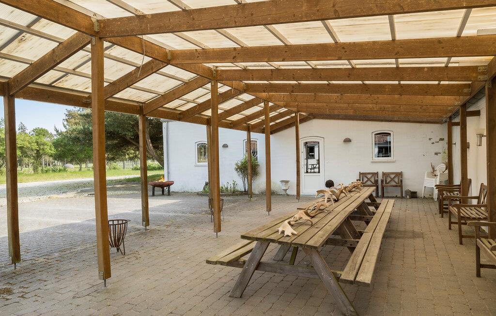 Ikke langt fra de vakre sandstrendene i den idylliske Jammerbugten på Nord-Jylland ligger denne tidligere bondegården, som byr på en koselig atmosfære. Her er det plass til en stor familie, og du er garantert en avslappende ferie i feriehus med mye komfort og natur. Nyt den varme og innbydende atmosfæren i stuen, som byr på en autentisk stemning med sine treelementer og stilfulle møbler. Sett deg godt til rette i de koselige sofaene og de mange andre sittegruppene og slapp helt av.