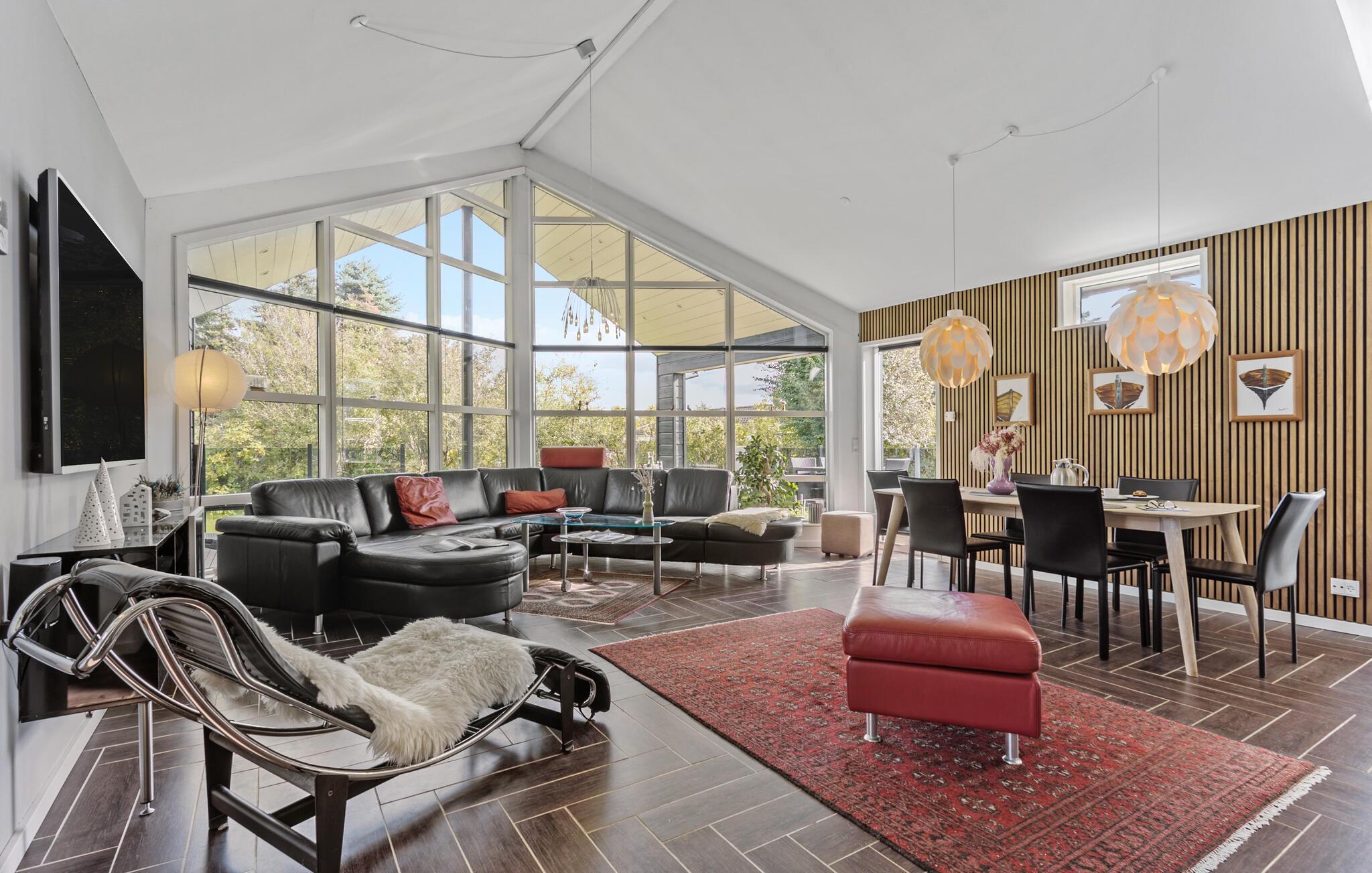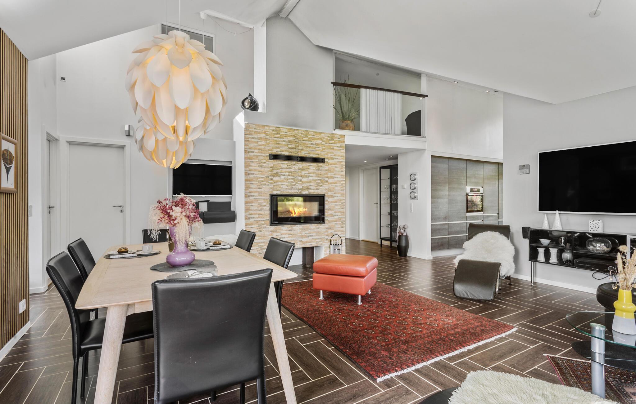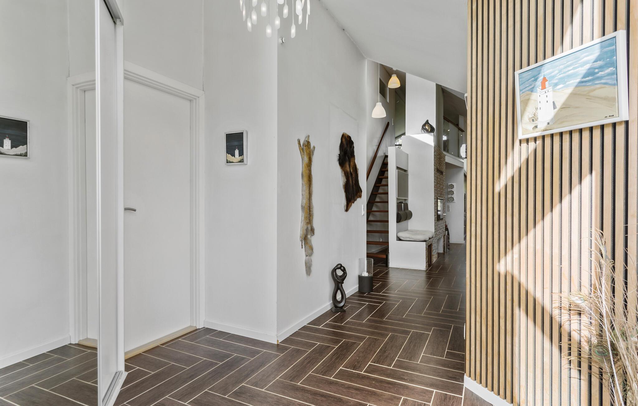Her bor du i et rolig nabolag i enden av gaten. Huset oser av kvalitet og vakre møbleringsløsninger som innbyr til avslapping. Sett deg godt til rette ved spisebordet i stuen og nyt lyset og utsikten over hagen. I første etasje er det en annen stue hvor du kan slappe av med en bok. Fra denne stuen har du utsikt over havet. Avslutt kveldene med en koselig peis eller ta et avslappende bad i boblebadet. Etter en god natts søvn kan du åpne en terrassedør direkte ut til hagen og lytte til fuglesangen om morgenen.