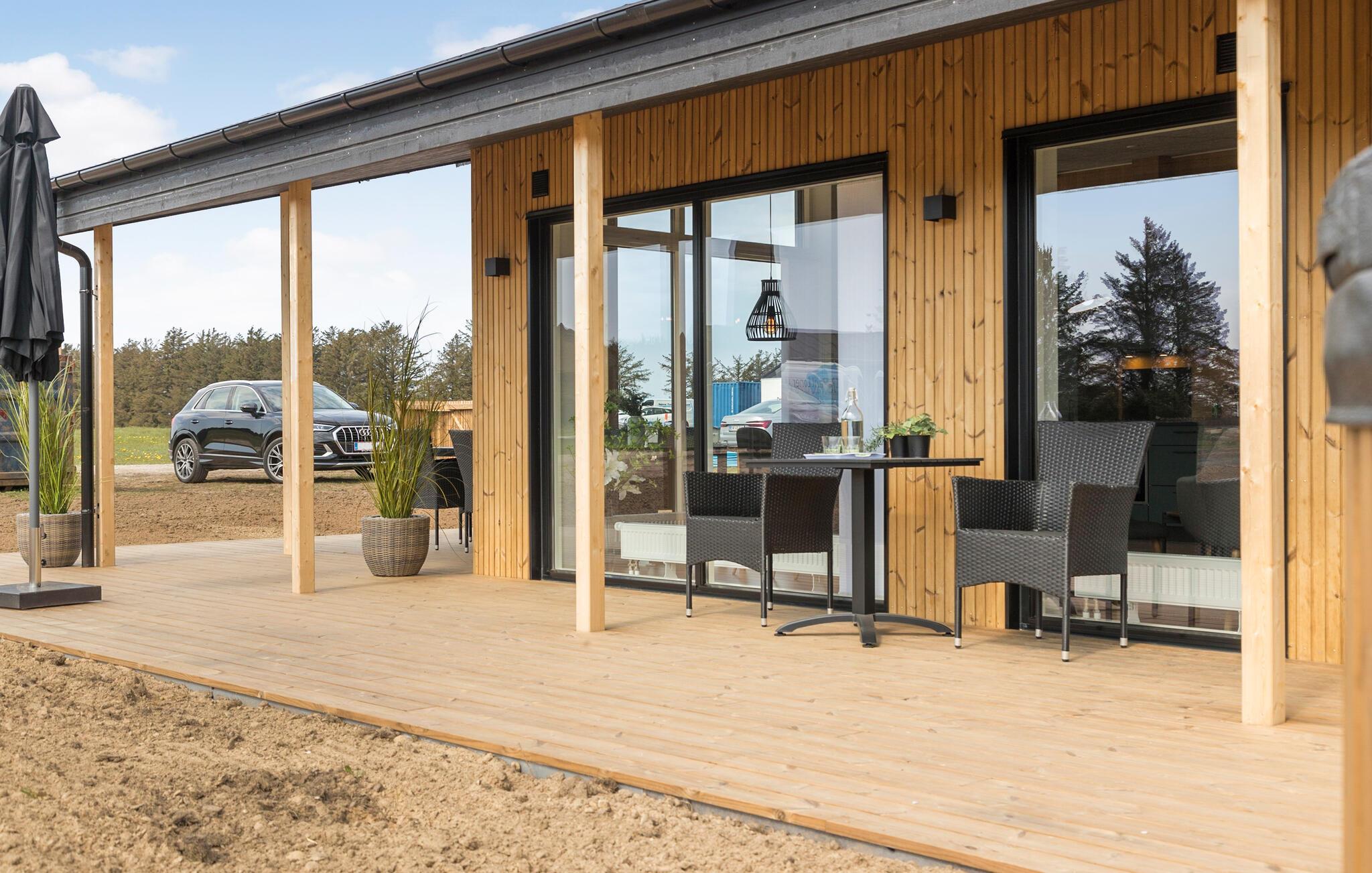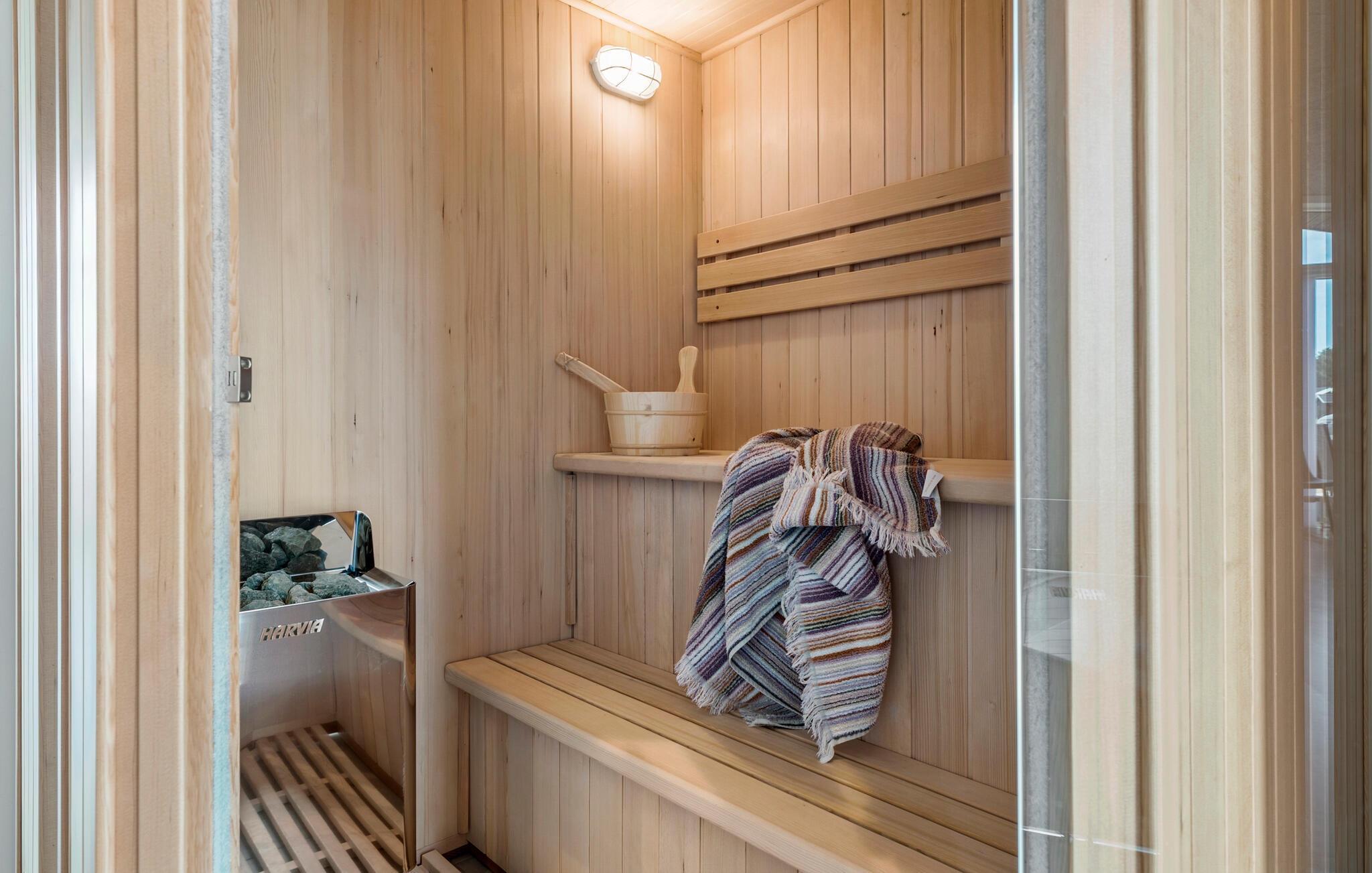 Dette moderne feriehuset er den perfekte rammen for en uforglemmelig ferie med familien. Det åpne kjøkkenet innbyr til å lage mat sammen. Nyt dagens første kopp kaffe ved kjøkkenbenken om morgenen, og tilbered deretter familiefrokosten. Nyt måltidene i spisestuen med de store vinduene, som skaper en lys og vennlig atmosfære. Et spesielt høydepunkt er den private badstuen, som gir avslapning etter en aktiv dag.