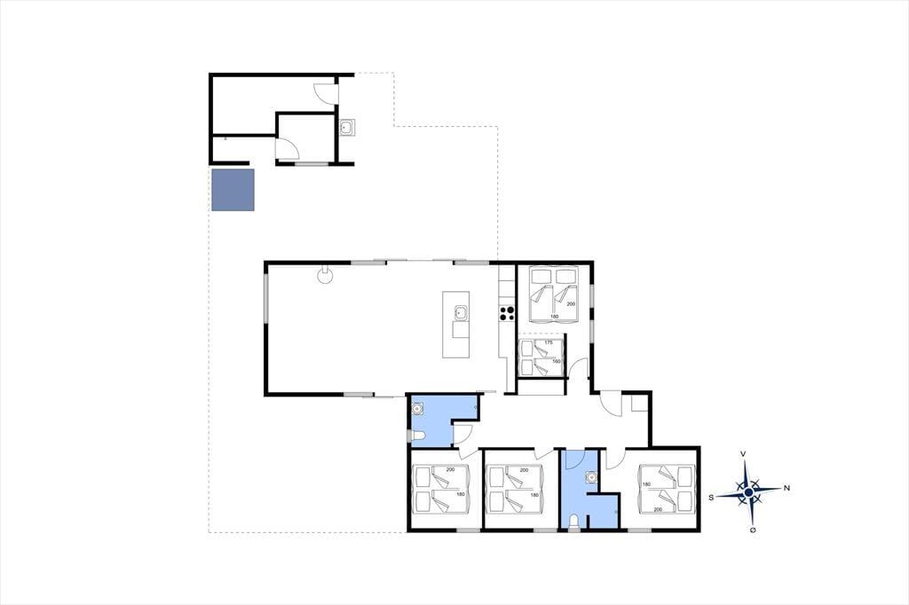 Das 135 m² große Ferienhaus strahlt eine schöne Atmosphäre aus, mit schönen, milden Farbtönen, großen Fenstern und Akustikdecken – und dann liegt es ganz bei dir und deinen Lieben, ob ihr euch in der ruhigen Umgebung vollkommen entspannt oder die Räume mit Lachen und Spielen ausfüllt. Die gut ausgestattete Küche ist in den Wohnbereich integriert, der sowohl über einen Brennofen als auch über einen Flachbildfernseher in der Nähe der Sofaecke verfügt. Es gibt zwei Badezimmer und wenn es Zeit zum Schlafen ist, stehen dir vier Schlafzimmer zur Auswahl. Darüber hinaus ist eines der Zimmer mit einer zusätzlichen Bettnische ausgestattet, sodass insgesamt Schlafplätze für 10 Personen vorhanden sind.