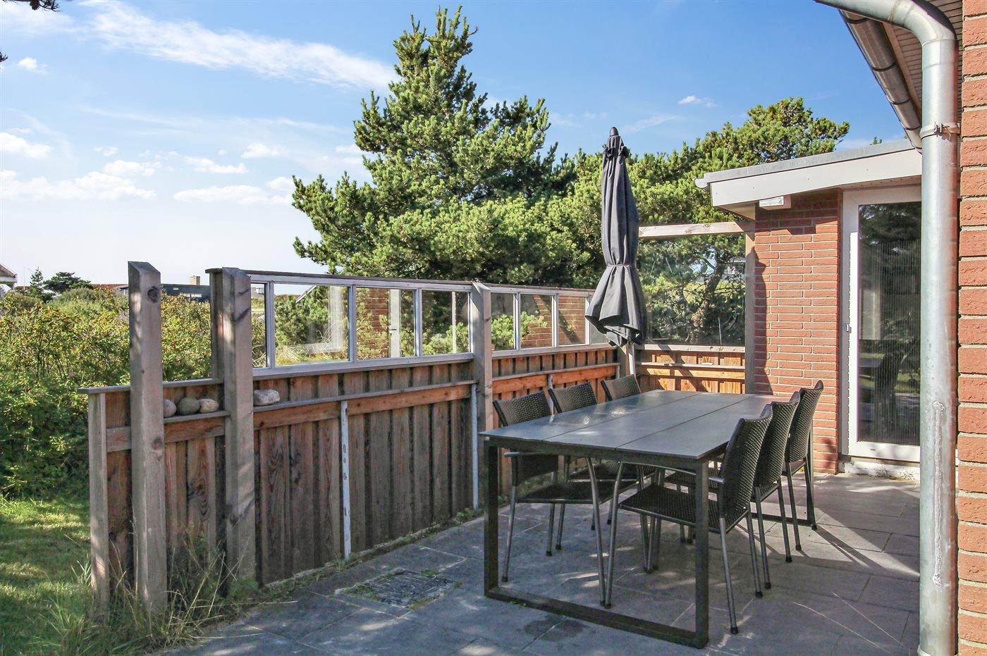 Ferieboligen er beliggende på en 1200 m² stor naturtomt. Avstand til hav er 500 m. Nærmeste butikk ligger i en avstand på 300 m. Golfbane i en avstand på 8000 m. Til ferieboligen hører åpent terrasseareal. I tillegg er det overdekket terrasse. Det er grill til rådighet. P-plass ved huset.
