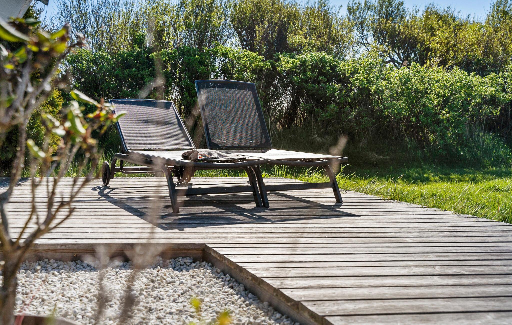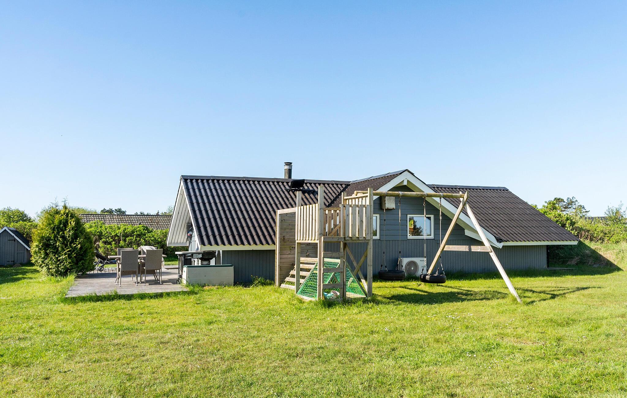 Hagen er fin og rolig, og med sin gode størrelse og flate overflate gir den deg en virkelig god mulighet for herlige utendørsaktiviteter. Det er god plass til å leke både foran og bak huset. Eiendommen er omgitt av en lav jordvoll, og huset ligger i enden av en blindvei, slik at du er uforstyrret på ferien.