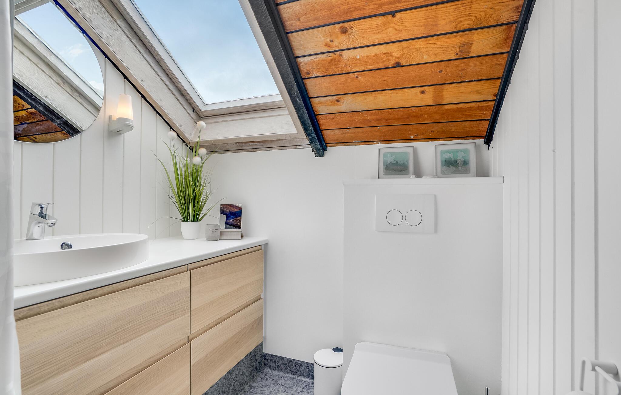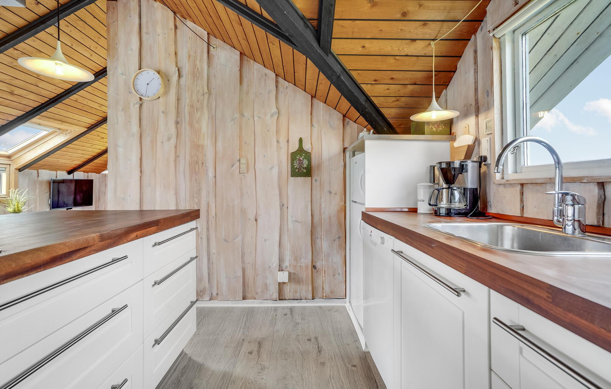 Huset har en stor terrasse mot øst og sør med god plass til lek, avslapning og hygge. Det er også en liten terrasse med sittegruppe på vestsiden av huset. Innvendig vil du oppleve en særdeles fredelig og autentisk feriehusstemning, med vedovn og tretak som skaper en herlig atmosfære. Kjøkkenet er nyere og velutstyrt med alt du trenger i form av mikrobølgeovn, oppvaskmaskin, vannkoker, brødrister og mye mer.
