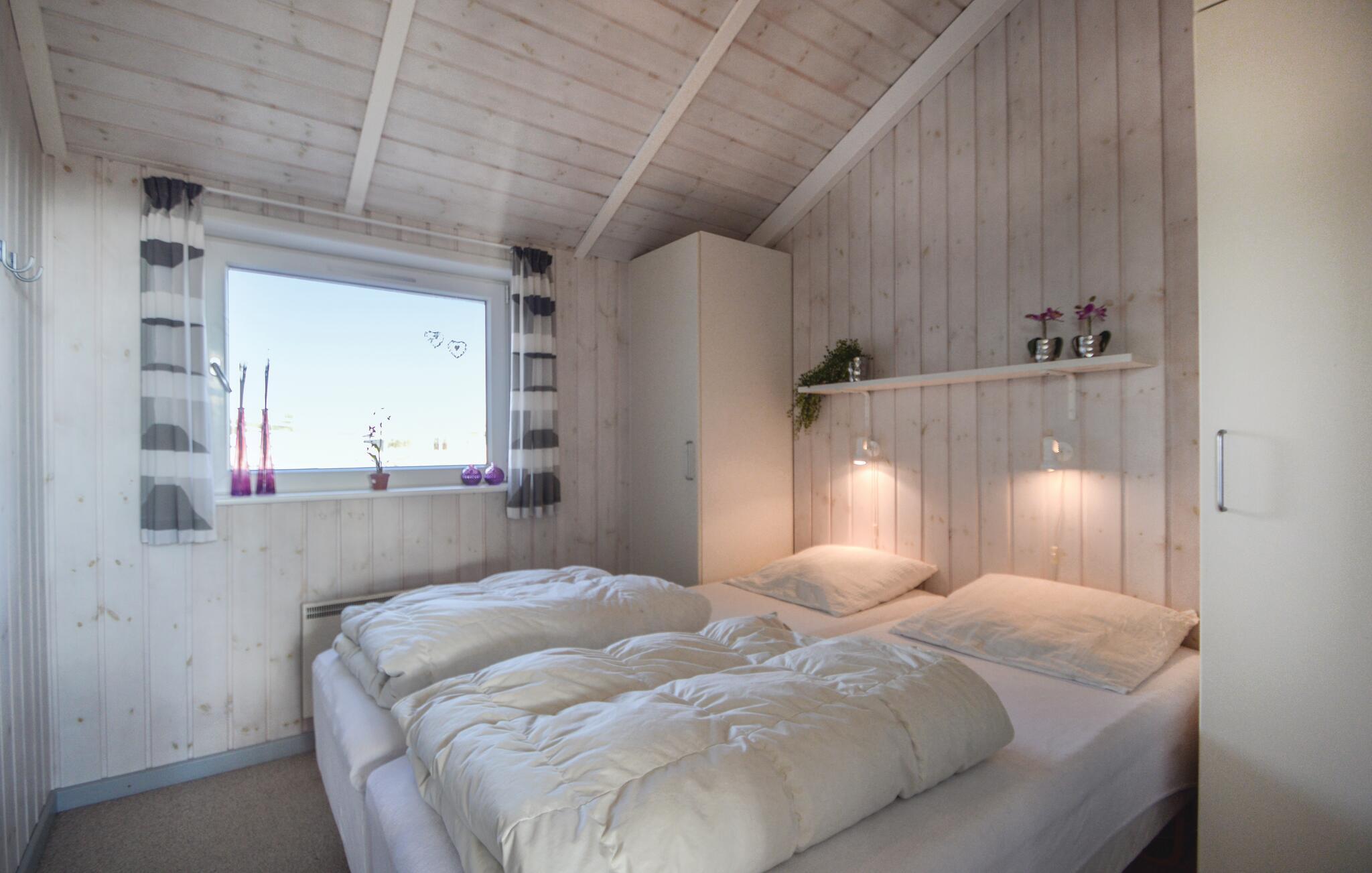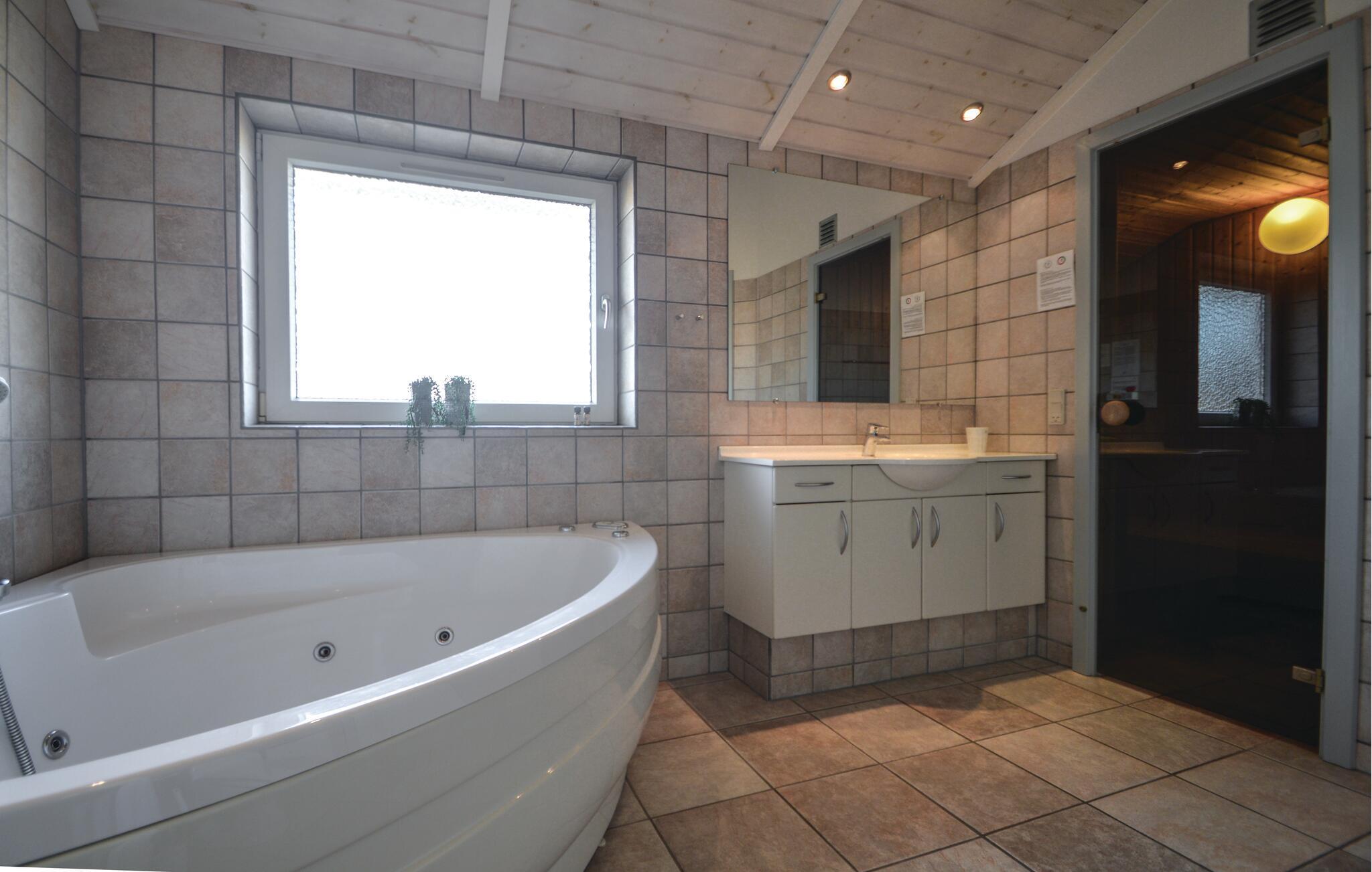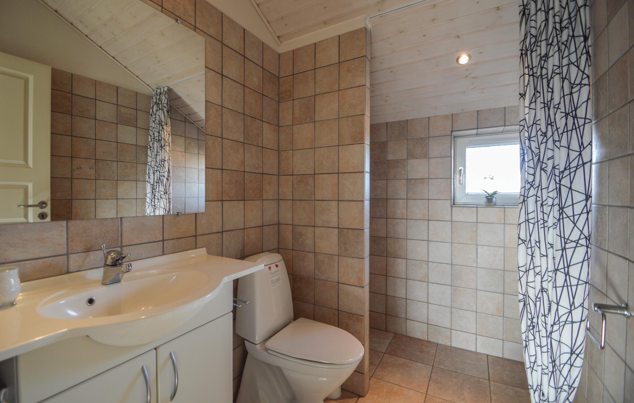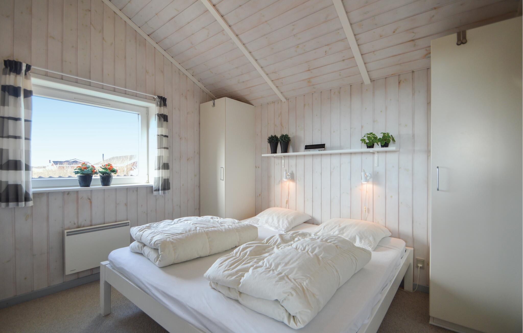 Dette stilfulle luksushuset ligger på en naturtomt i nærheten av Lakolk-stranden og kjøpesenteret, og ble bygget som et energisparende hus med bare de beste materialene. Det er ideelt for to familier og tilbyr all tenkelig komfort, inkludert en ekstra TV på soveloftet og to luksuriøse bad - ett med boblebad og badstue. Det er ingen trapper eller dørstokker. En stor, vakker og delvis inngjerdet terrasse omgir huset på tre sider. Det er god plass til å leke på den store eiendommen til tross for at terrassen ligger mellom sanddynene. Besøk dette vakre området i Danmark og nyt fred og avslapning!