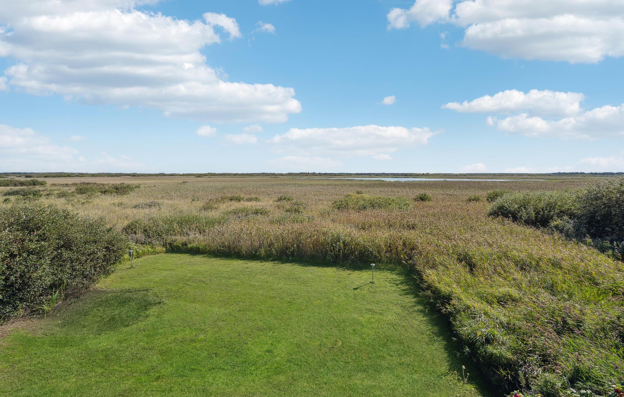 Huset ligger ved siden av sivområdet, men med utsikt over den lille dammen.