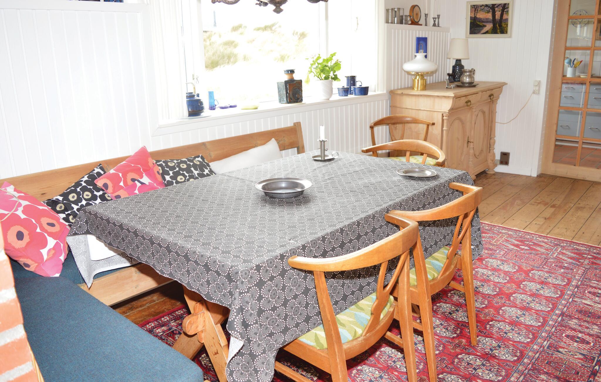 Dette vakre feriehuset i Lakolk ligger i en blindvei midt i klippene og med gangsti direkte til stranden. Nydelig bad med gulvvarme og stort dusjkabinett. Rømø, omgitt av det brusende Vesterhavet og det grunne Vadehavet, byr på Danmarks kanskje mest fascinerende naturområder. I århundrer har Rømø fengslet mennesker. Først var det fiskerne og deretter de velstående hvalfangstkapteinene, hvis vakre og nennsomt restaurerte stråhus fortsatt beundres av besøkende på øya i dag. Takket være den unike naturen og de store viddene på denne øya med de bredeste og fineste sandstrendene i Europa, kan du fortsatt finne en rolig plass helt for deg selv.