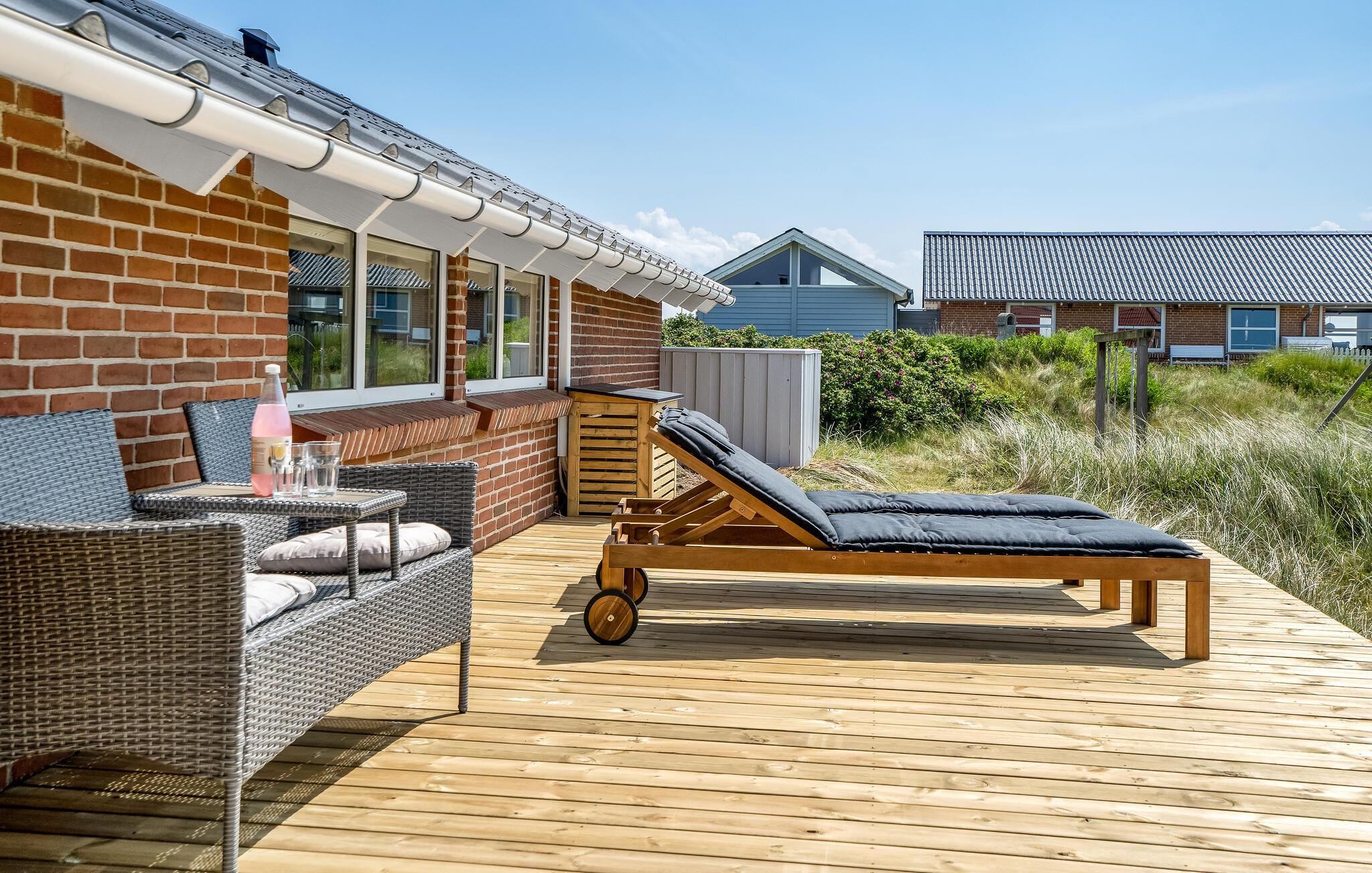 Huset har totalt tre solterrasser som vender mot øst, sør og vest. Det betyr at du kan nyte solen utendørs hele dagen og slappe av omgitt av sanddynelandskapet.