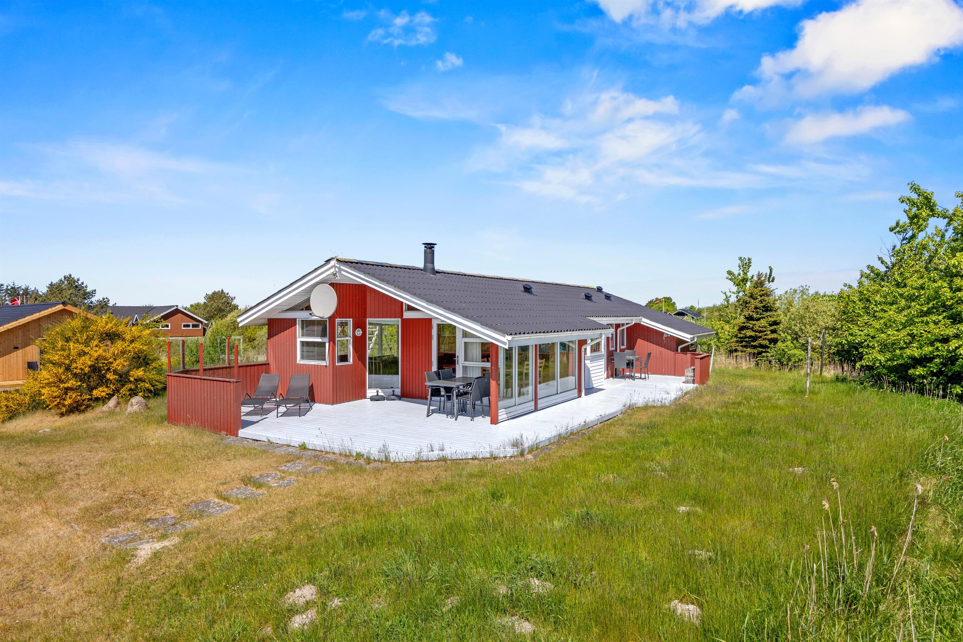 Planning your holiday on the island of Rømø in the Danish Wadden Sea? Welcome to this perfect retreat on this beautiful North Sea island! Located at Lakolk 107, this holiday home on Rømø offers comfortable accommodation for up to 8 people and 1 dog. Experience Danish cosiness with a wood-burning stove in a classically furnished 94-square-metre living space. This Danish summer house combines all the amenities you need for a relaxing holiday in a fantastic natural setting in the northern part of Lakolk. Highlights include the excellent location at the end of a cul-de-sac, stunning panoramic views, and a wood-burning stove, whirlpool and sauna for peaceful moments!