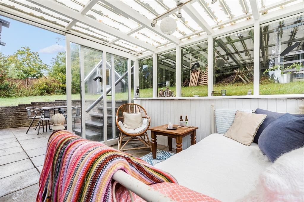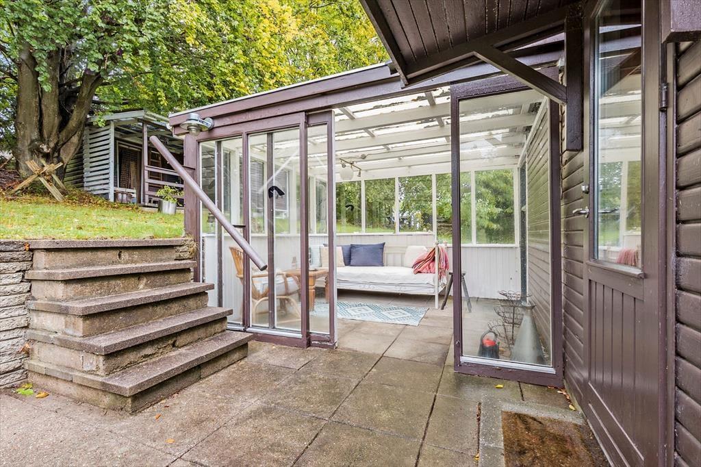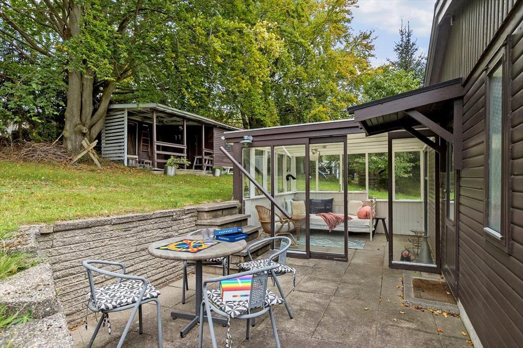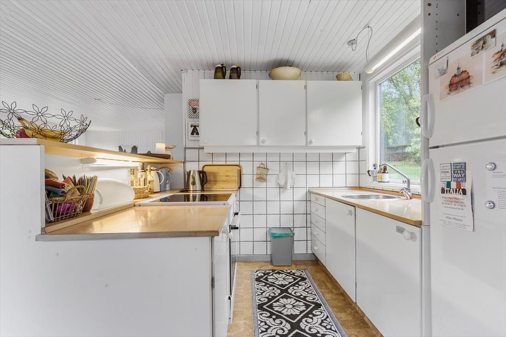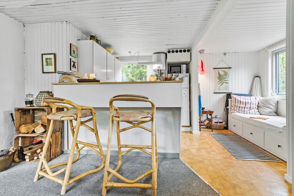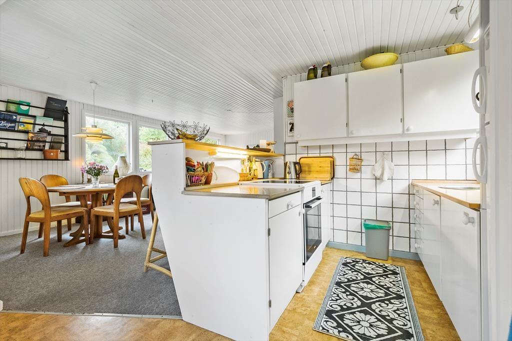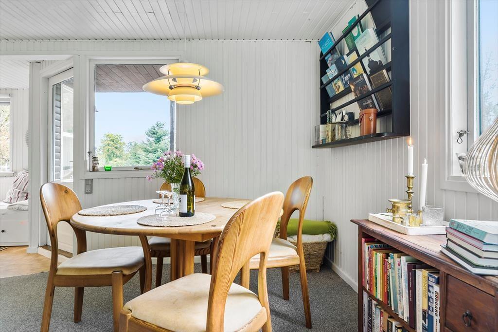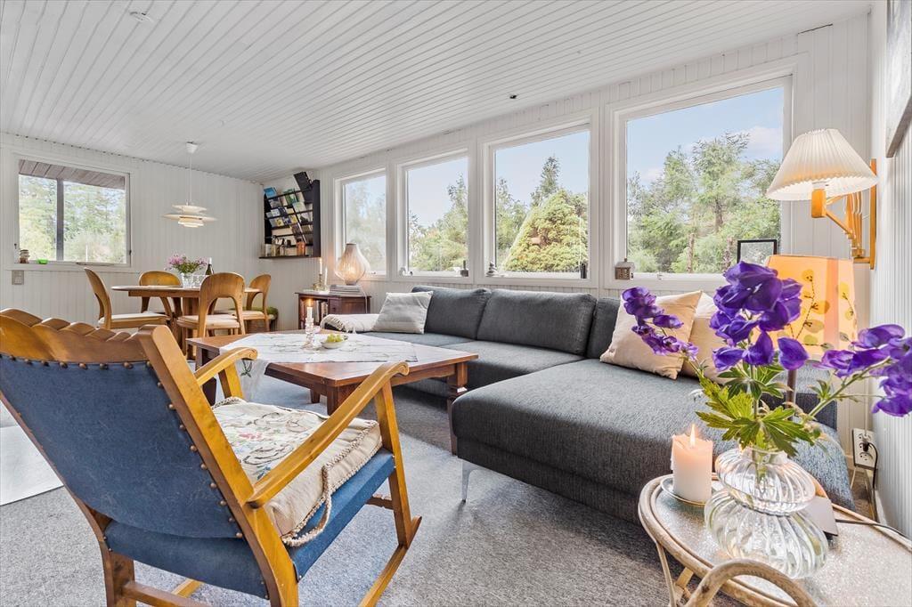 Nicht weit von der Stadt Ebeltoft entfernt, begrüßt dich dieses reizende Ferienhaus, bei dem die Gemütlichkeit im Mittelpunkt steht. Der helle, gut eingerichtete Wohnraum verwöhnt mit einem Kaminofen, der an kühlen Abenden für behagliche Wärme und ein Maximum an klassischer Ferienhausatmosphäre sorgt. Vom Wohnraum aus trittst du auf eine schöne, teilweise überdachte Terrasse, auf der du mit deinen Lieben die Mahlzeiten genießen kannst. Der Wohnraum ist offen mit der Küche verbunden. Dadurch genießt du selbst während der Zubereitung der Mahlzeiten die Nähe und Gesellschaft deiner Lieben. Im Badezimmer sorgt eine Fußbodenheizung für zusätzlichen Komfort. Die Schlafplätze verteilen sich auf zwei helle Schlafräume und auf ein gemütliches Nebengebäude, in dem ein Einzelbett zur Verfügung steht. Ein Fernseher, WiFi und ein Geschirrspüler sind nicht vorhanden, dafür jedoch eine gute Auswahl an Gesellschaftsspielen und eine stabile 4G-Abdeckung. Dadurch eröffnet sich für deine Familie die seltene Möglichkeit, dem schnelllebigen Alltag zu entfliehen und viel gemeinsame Zeit miteinander zu verbringen - ganz so, wie es früher einmal war.