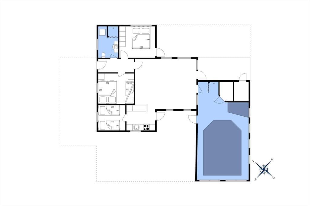In diesem Haus dreht sich alles um Spaß und Aktivität. Der Pool, Whirlpool und die Sauna sind die Hauptattraktionen und begeistern Kinder und Erwachsene gleichermaßen. Ihr könnt im Wohnzimmer sitzen und trotzdem ein Auge auf eure Kinder im Pool haben. Die Küche ist zum Wohnzimmer hin offen, so dass alle gleichzeitig spielen und kochen können. Zur Schlafenszeit können sich auch eure Kinder sicher fühlen, denn sie können im selben Zimmer wie "Mama und Papa" schlafen, wenn es nötig sein sollte.