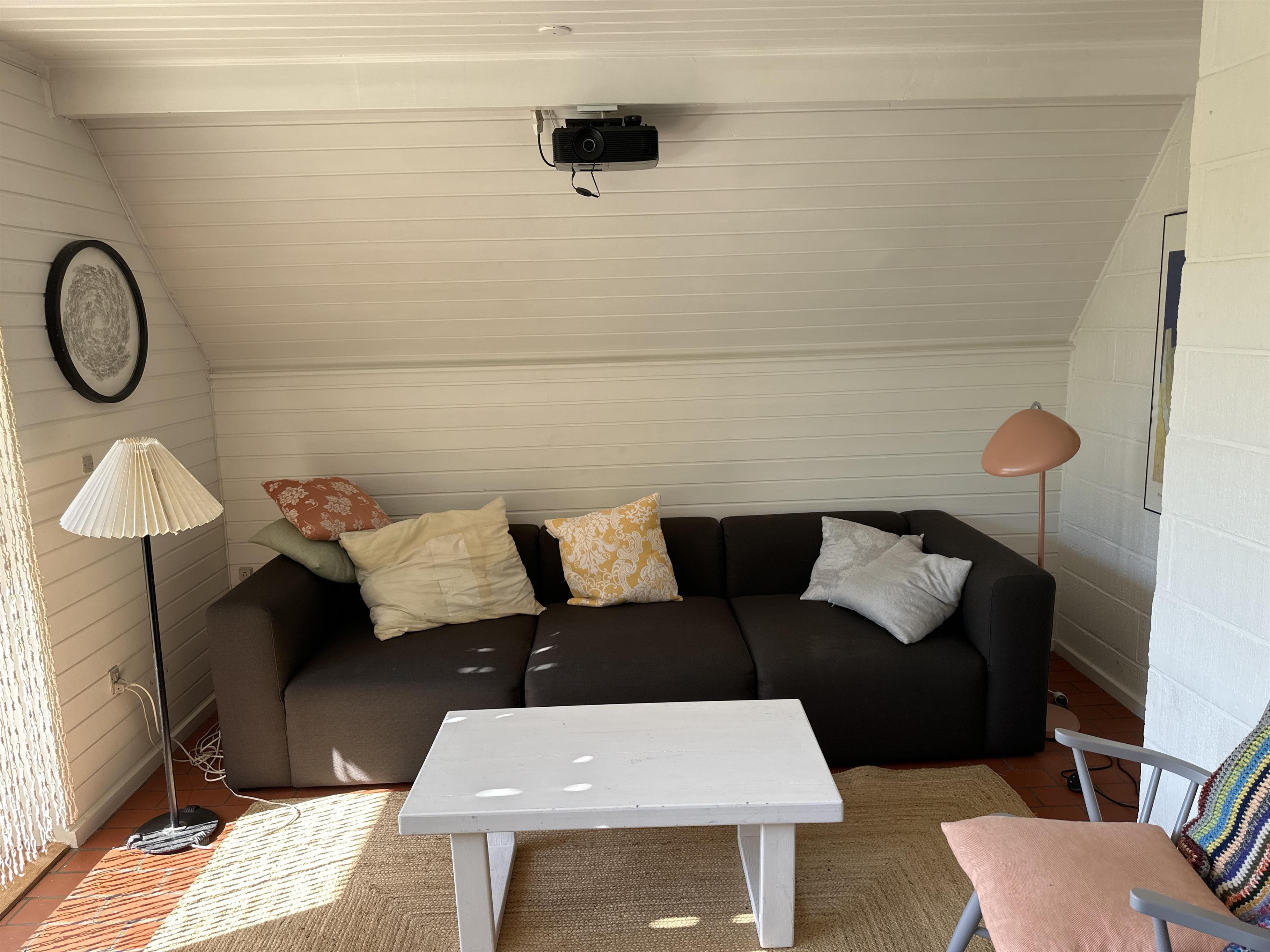 The holiday home offers an open and bright kitchen-living room with dining area and cosy sofa corner – a perfect place for shared meals and cosy evenings. The house is equipped with a heat pump, so you can maintain a comfortable temperature all year round. Although there is no television, you can gather the family for movie night on the large movie screen with projector, where you can stream your favourite films and series – a sure winner on rainy days.