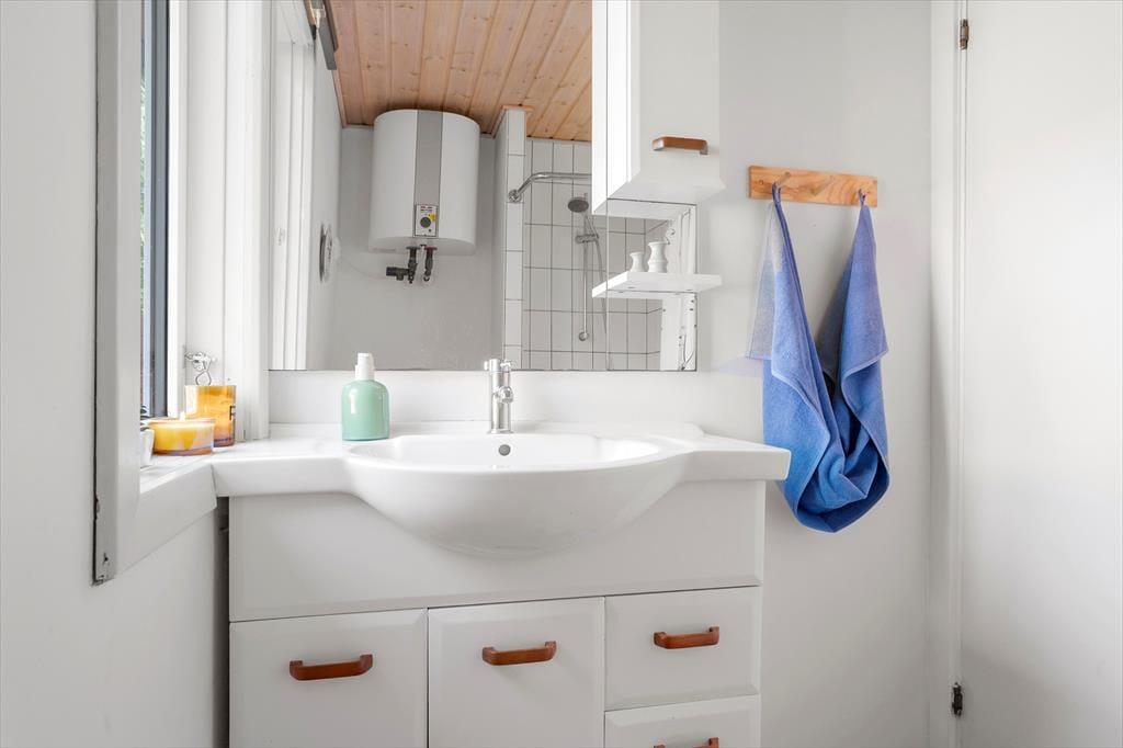 Das Sommerhaus verfügt über zwei gute Schlafzimmer. Im einen Schlafzimmer können die Erwachsenen eine erholsame Nachtruhe genießen, während das andere Zimmer perfekt für zwei Kinder im Etagenbett geeignet ist. Selbstverständlich gibt es auch ein Badezimmer, das einige originale Details aus der ursprünglichen Bauzeit des Hauses bewahrt hat, jedoch hell und gepflegt ist und ausreichend Platz bietet.